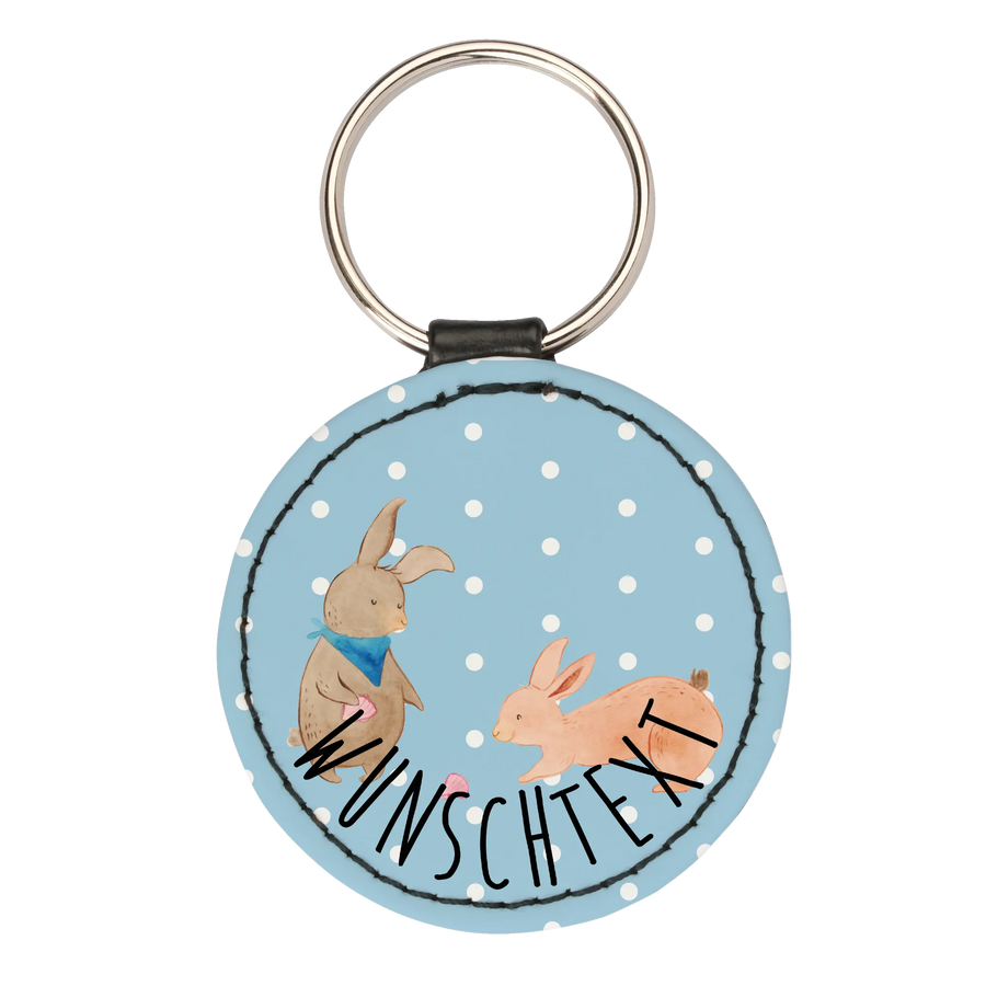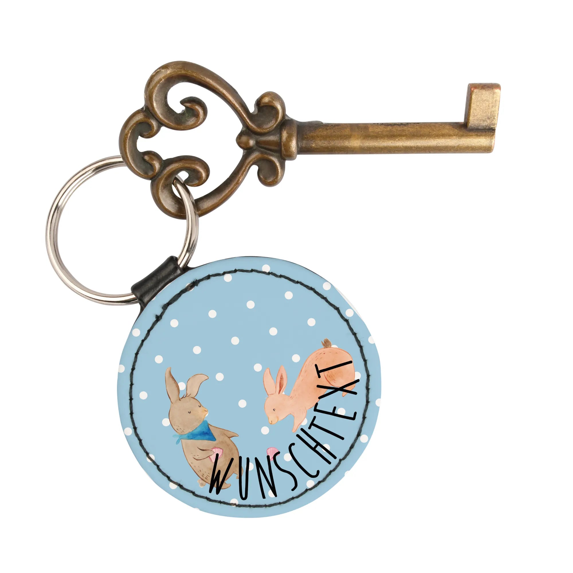 Personalisierter Schlüsselanhänger Hasen Muschel - Blau Pastell