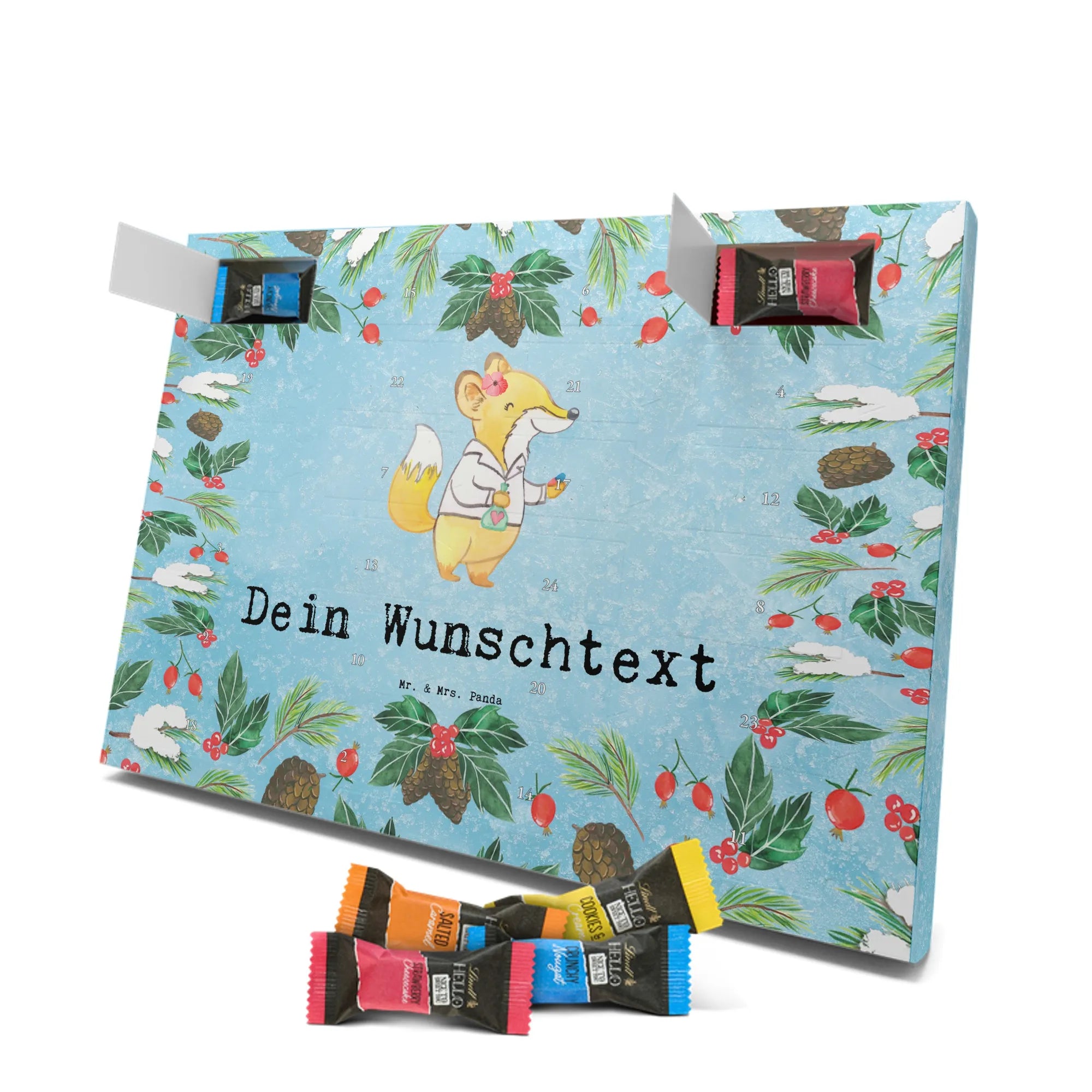 🐼 Adventskalender mit Namen, Mr. & Mrs. Panda Druck, gefüllt mit Lindt Hello.