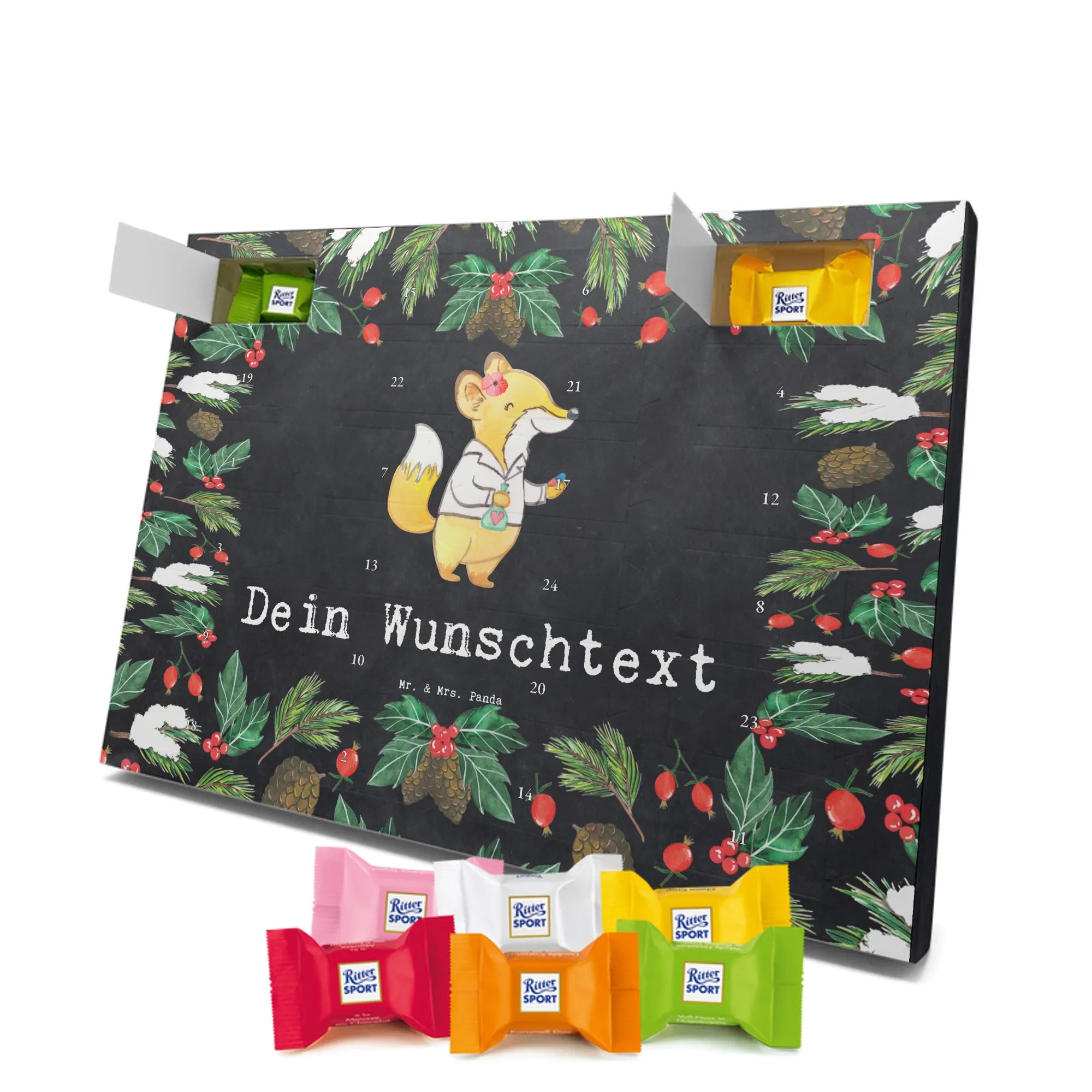 🐼 Personalisierter Schoko Adventskalender, seidenmatt und mit Ritter Sport Schokowürfeln.