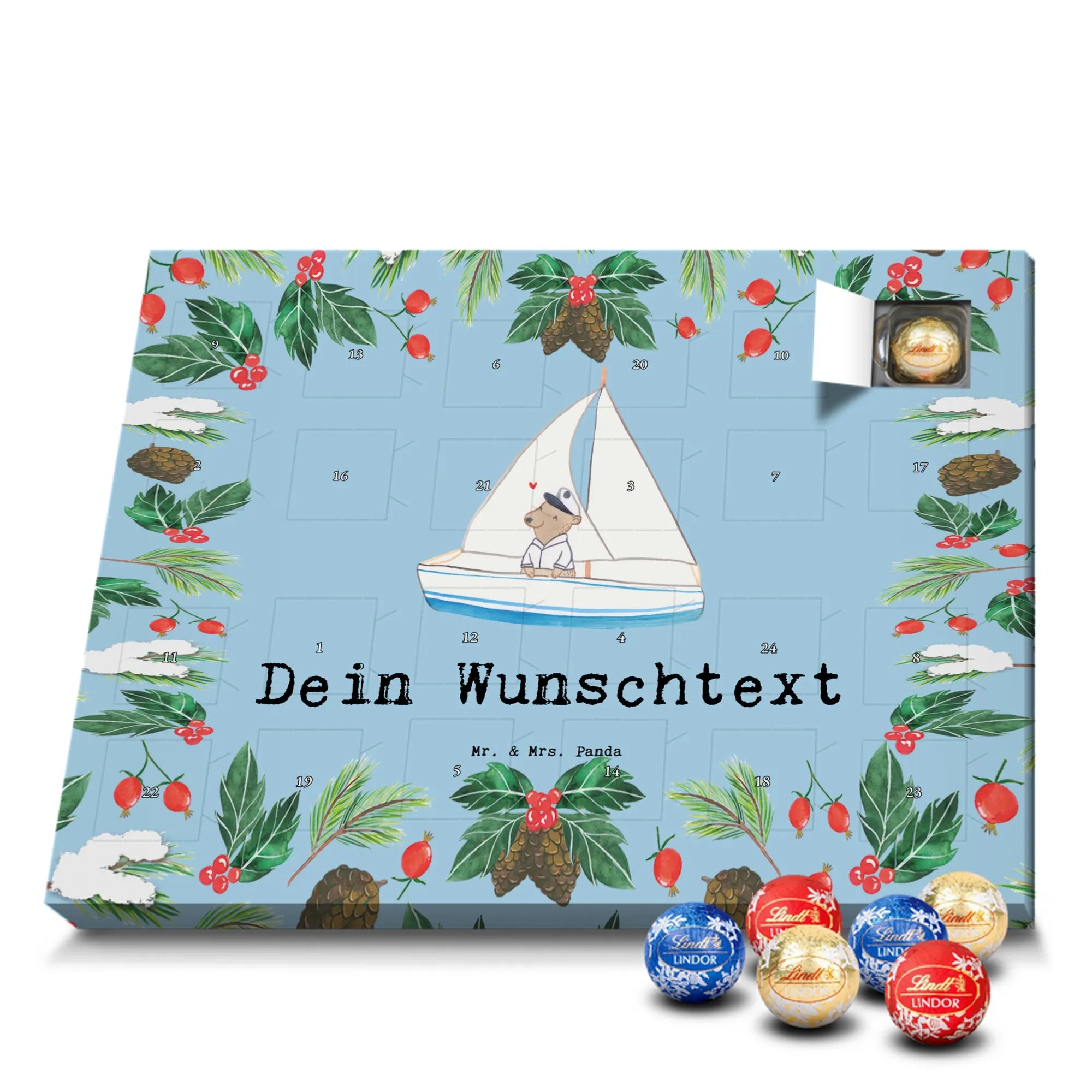 Personalisierter Schoko Adventskalender Bär Segeln - Lindt LINDOR - Eisblau