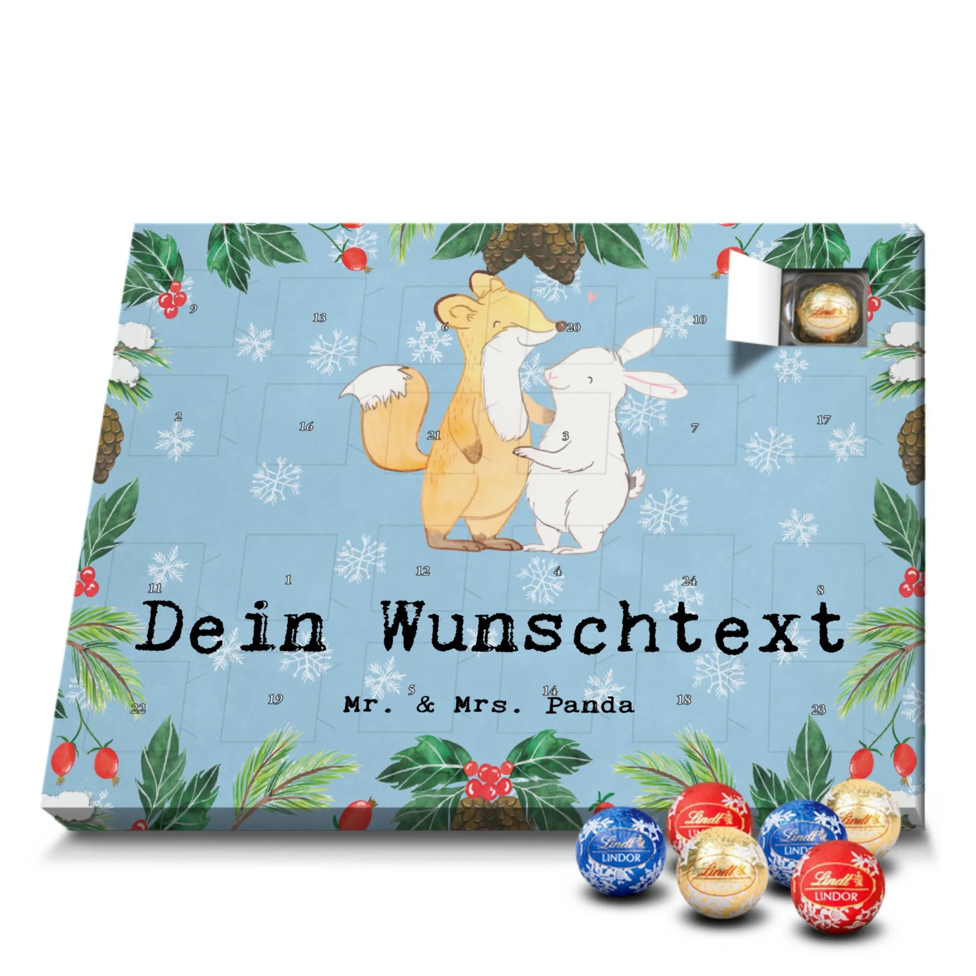 🐼 Personalisierter Schokoladen Adventskalender mit Mr. & Mrs. Panda Motiven, gefüllt mit Lindt Hello.