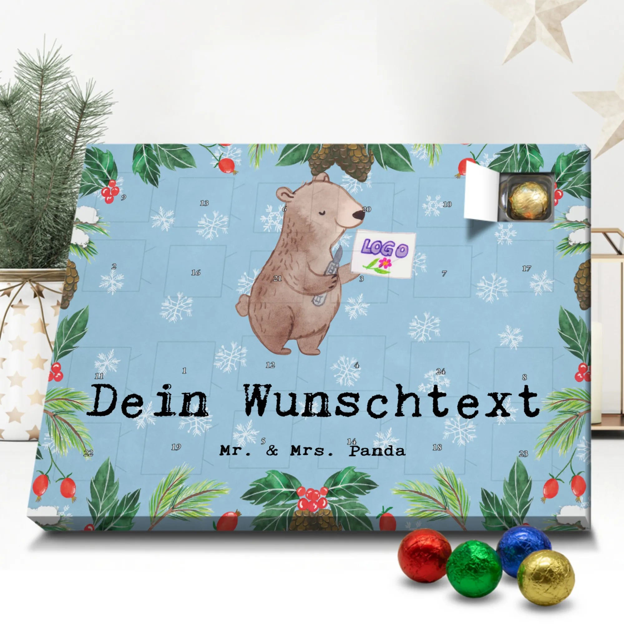 Gestalte Freude: Personalisiere deinen Schoko-Kalender und überrasche mit einem individuellen Adventsgruß von Mr. & Mrs. Panda!