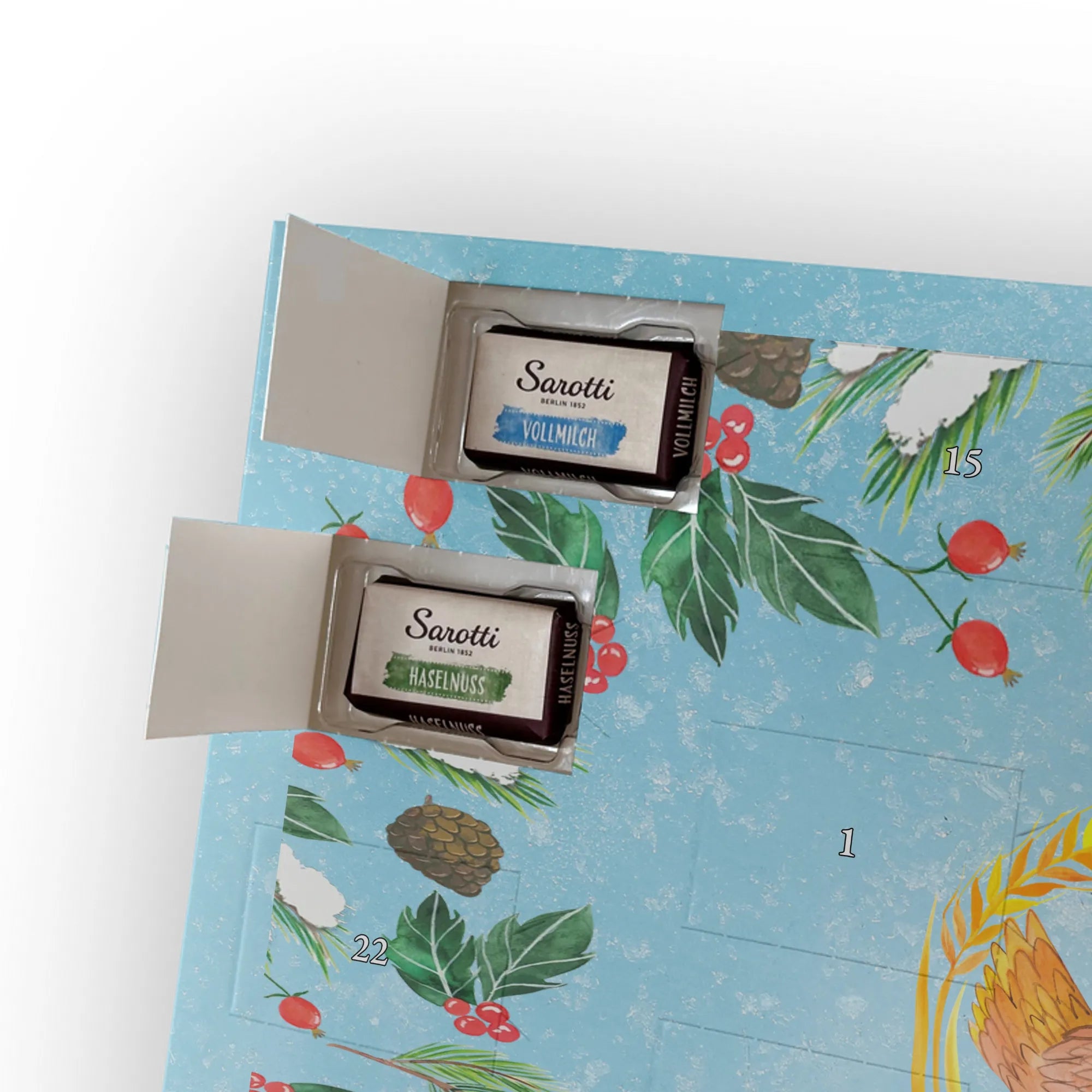 Personalisierter Schoko Adventskalender von Mr. & Mrs. Panda – der perfekte Adventskalender mit Namen für alle, die Geschenke mit Persönlichkeit lieben. Unsere Designs sind mit süßen Illustrationen und liebevollen Sprüchen bedruckt und lassen sich ganz easy mit deinem Namen oder kurzem Wunschtext versehen. Die hochwertige, seidenmatte Oberflächenveredelung verleiht dem Kalender ein edles Finish, und auch die Seitenflächen sind vollständig bedruckt – kleine Details mit großer Wirkung. Maße: 355 mm x 245 mm x 11 mm. Du kannst den Kalender sowohl aufhängen als auch aufstellen, je nachdem, wie du ihn präsentieren möchtest. Gefüllt ist er mit 24 einzeln verpackten Schokoladentäfelchen in vier köstlichen Geschmacksrichtungen. Insgesamt enthält er 107 g Markenschokolade von Sarotti® und Confiserie Heidel®: Vollmilch, Nougat, Zartbitter und Haselnuss. Wichtig: Es handelt sich um einen Kalender gefüllt mit Sarotti® und Confiserie Heidel® Markenschokolade. Ob als Geschenk für die Liebsten oder als besonderer Adventsüberraschung für dich selbst – dieser Adventskalender zaubert jeden Tag ein Lächeln!