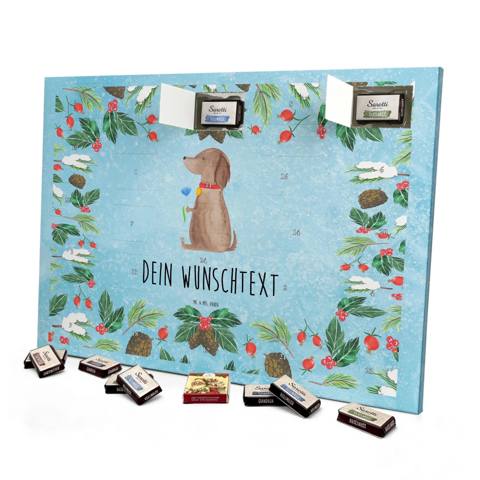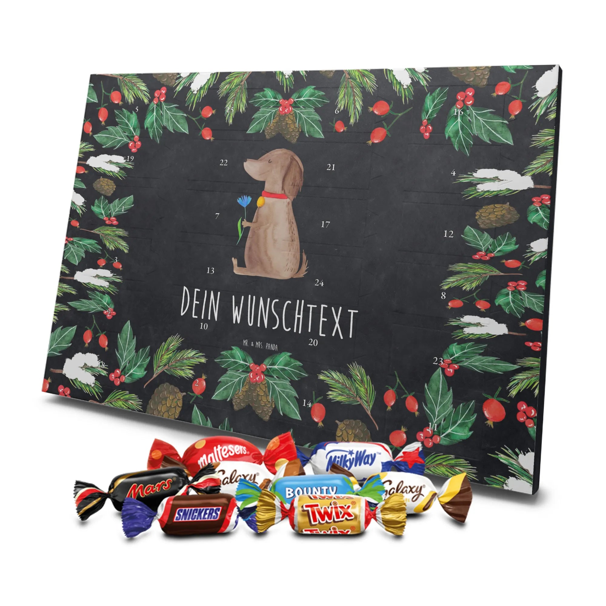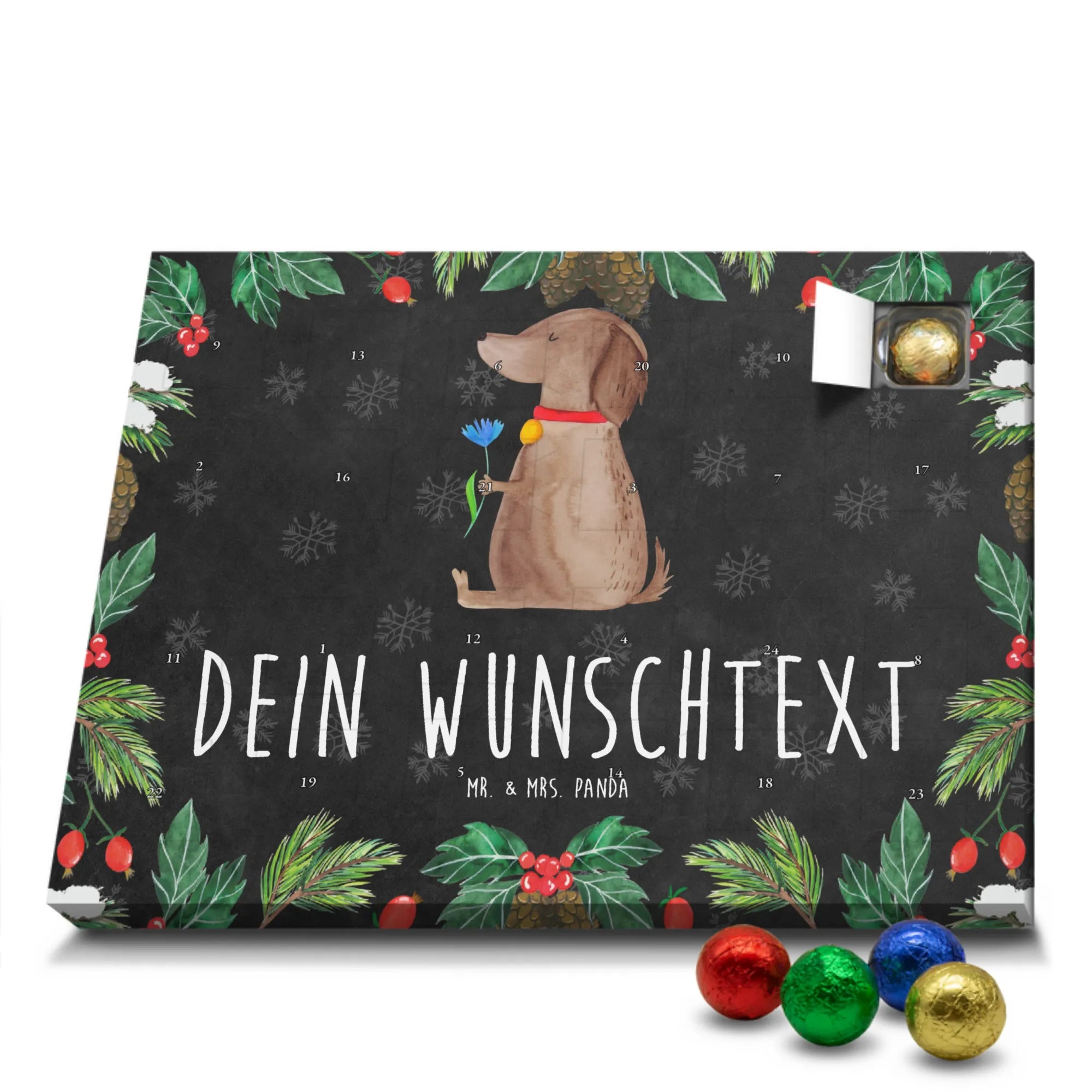 Ideal als Weihnachtsgeschenk, Adventsüberraschung für das Frauchen, Geschenk für Hundebesitzer oder originelle Idee für Hundeliebhaber. Verschenke Freude, Stil und tägliche Genussmomente – mit dem personalisierten Adventskalender „Hund Blume“ von Mr. & Mrs. Panda. 🎁🐾