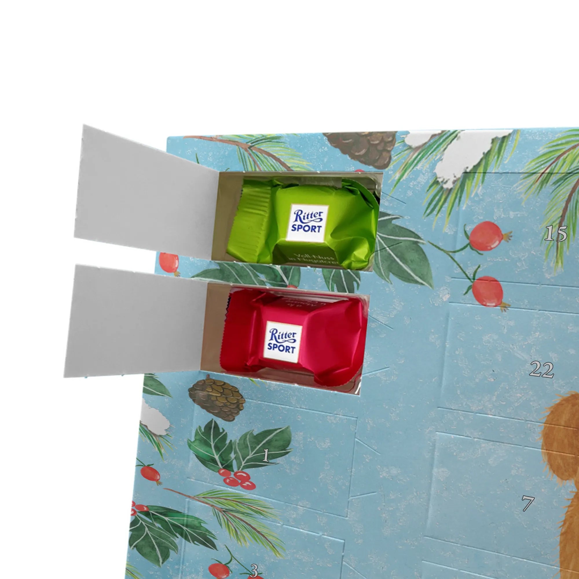 🐼 24 Türchen mit Ritter Sport Schokowürfeln in beliebten Sorten.