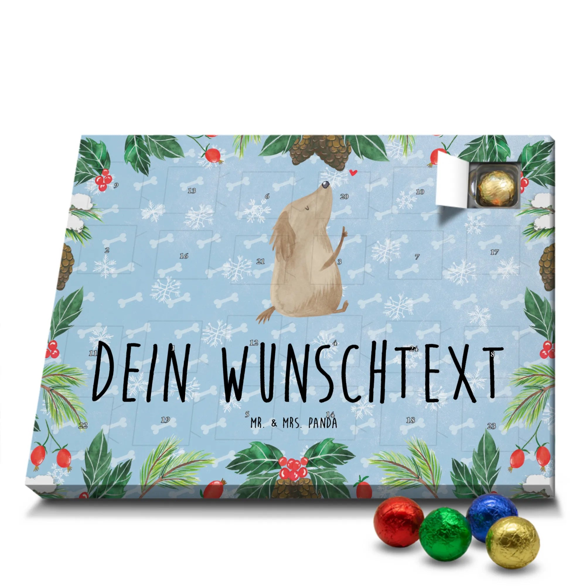 Gestalte Freude: Personalisiere deinen Schoko-Kalender und überrasche mit einem individuellen Adventsgruß von Mr. & Mrs. Panda!