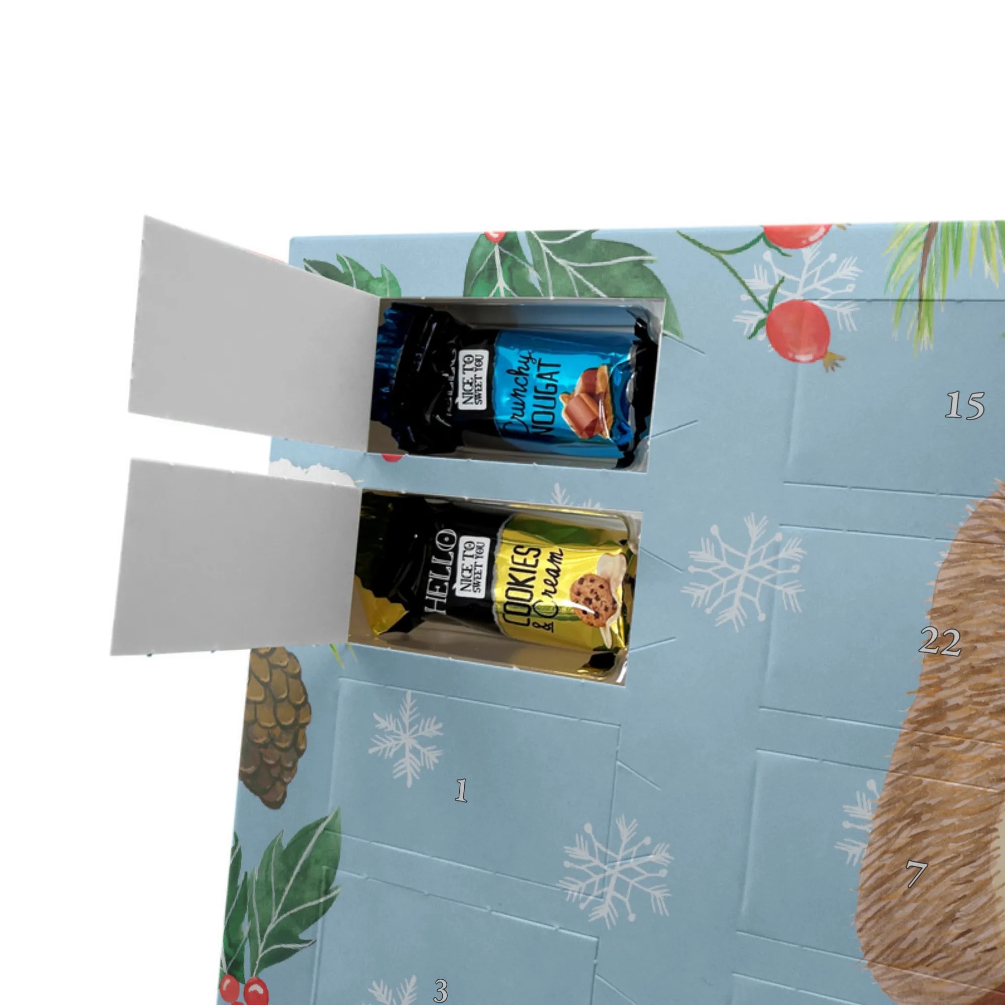 Personalisierter Schoko Adventskalender Igel Grillen - Classic - Eisblau