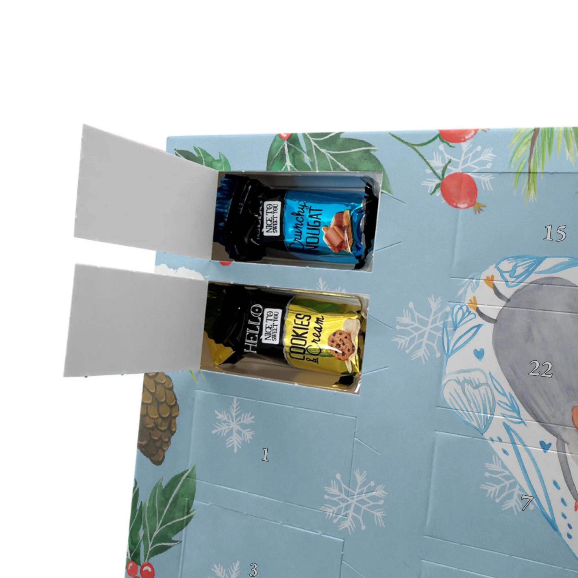 Verschenke Freude mit unserem Personalisierter Schokoladen Adventskalender von Mr. & Mrs. Panda. Der Kalender ist liebevoll gestaltet, bedruckt mit niedlichen Motiven und kurzen Sprüchen, und lässt sich ganz leicht mit deinem Wunschnamen oder einer kleinen Botschaft personalisieren. Die Druckqualität ist brillant und erhält durch eine seidenmatte Oberflächenveredelung eine hochwertige Haptik. Auch die Seitenflächen sind bedruckt, sodass du rundum ein stimmiges Design bekommst. Maße: 233 mm x 178 mm x 24 mm. Praktisch: Der Kalender kann entweder aufgehängt oder aufgestellt werden – ideal für jeden Ort in deiner Wohnung. Gefüllt mit MARKENNAMEN Schokolade und feinen Schokoladenkugeln bringt er jeden Tag eine leckere Überraschung. Bitte beachten: (Kann Spuren von Haselnüssen, Mandeln, Gluten und Soja enthalten!), kühl und trocken lagern! Ob als persönliches Geschenk für die Liebsten oder als besondere Adventsüberraschung für dich selbst – dieser personalisierte Kalender verbindet Charme, Qualität und süßen Genuss auf besondere Weise.