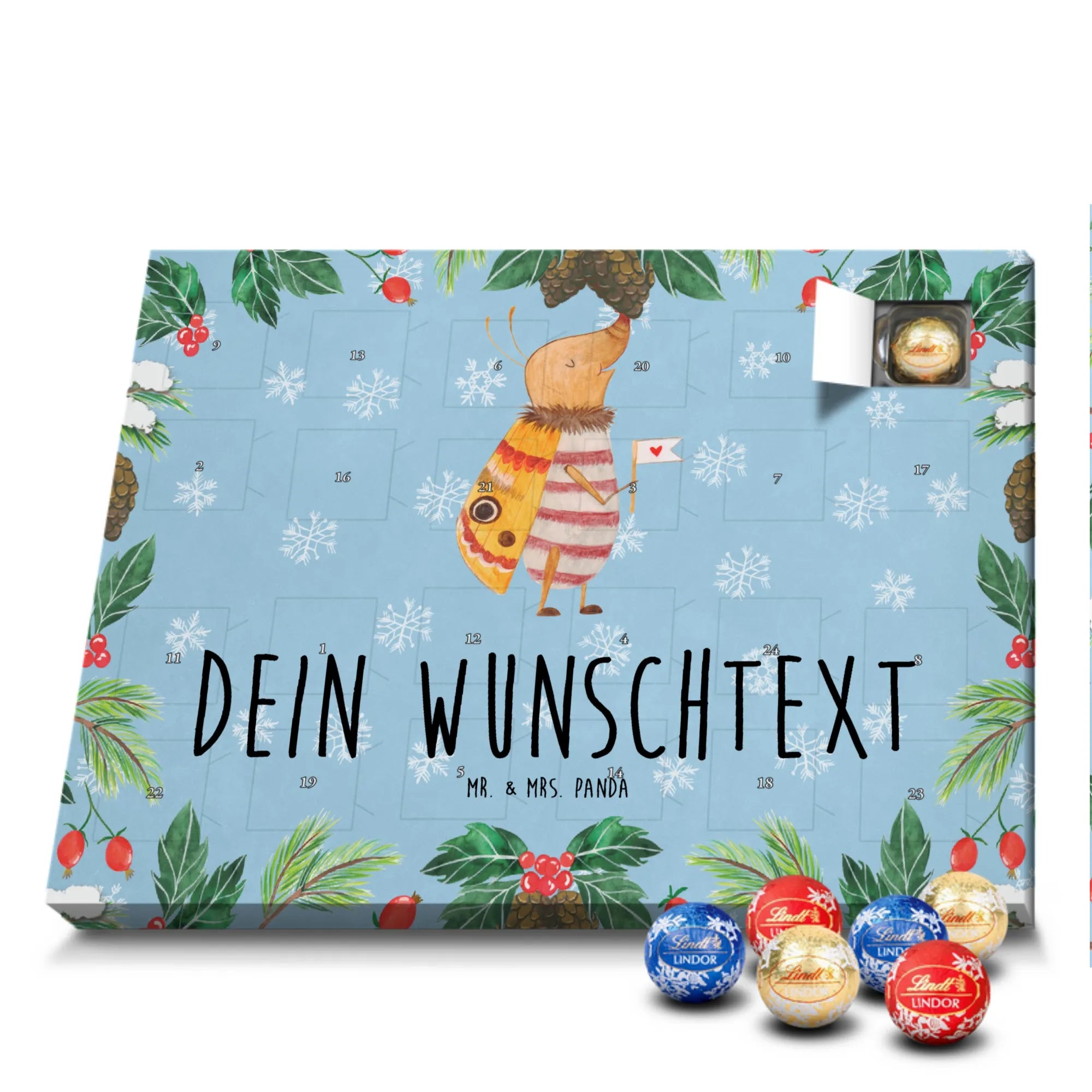 🐼 Schoko Adventskalender personalisiert mit Wunschtext, seidenmatt, gefüllt mit Lindt Hello.