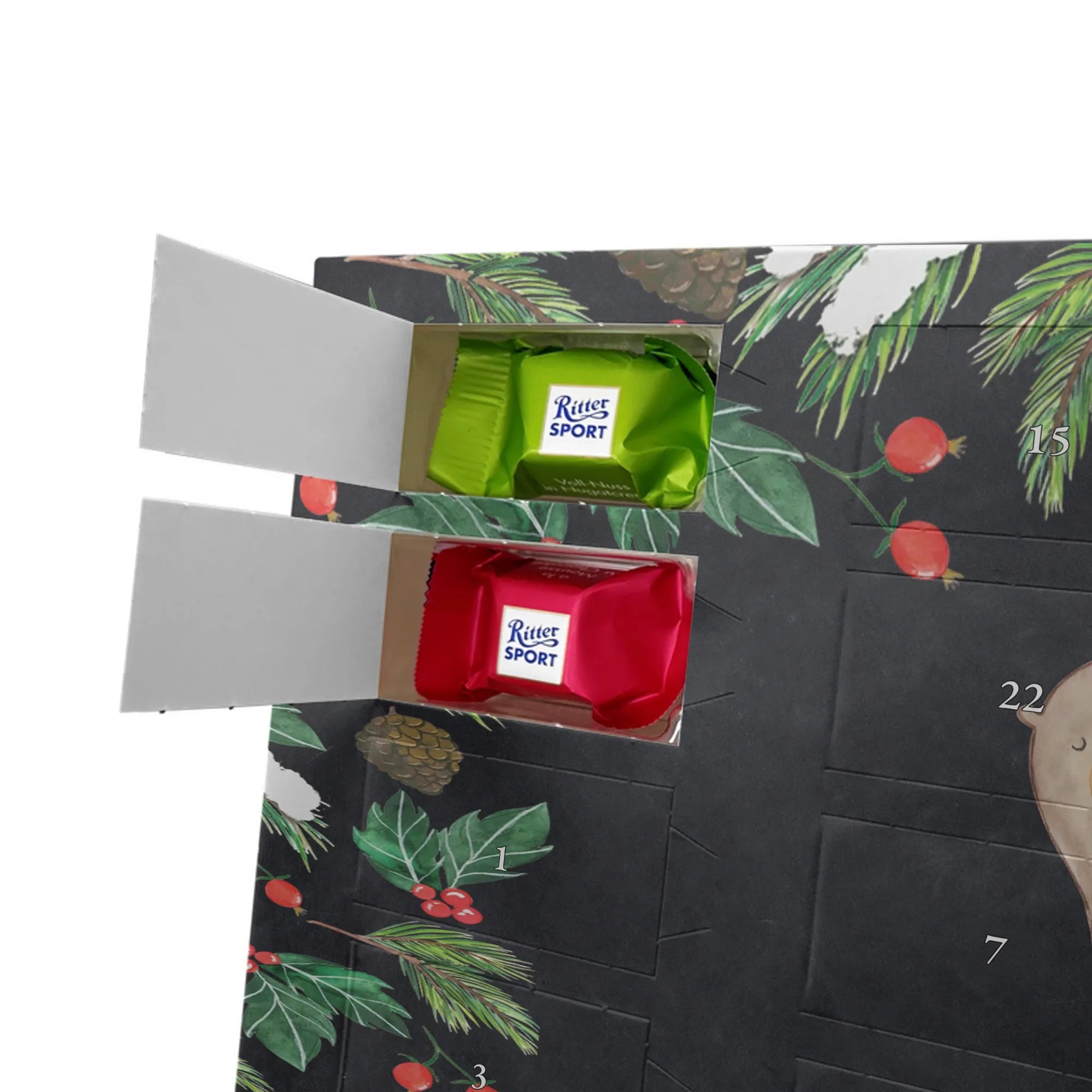 Suchst du einen besonderen Adventskalender, der persönlich und hochwertig ist? Unser Adventskalender mit Namen von Mr. & Mrs. Panda ist genau das – individualisierbar mit dem Namen deiner Liebsten oder einem kurzen Spruch und bedruckt mit unseren beliebten, charmanten Motiven. Die Druckqualität ist brillant, die seidenmatte Oberflächenveredelung verleiht dem Kalender eine elegante Haptik. Auch die Seitenflächen sind liebevoll bedruckt, sodass das Design rundum überzeugt. Du kannst den Kalender aufstellen oder an einer Stelle aufhängen, die du magst – die besondere Form macht beides möglich. Gefüllt ist der Kalender mit Ritter Sport Schokowürfeln in sechs beliebten Sorten: Mousse au Chocolat, Schoko Crisp, Voll-Nuss in Nougatcreme, Karamell Duo, Joghurt und Erdbeer-Joghurt. So gibt es hinter jedem Türchen eine kleine, leckere Überraschung. Maße: 325 mm x 225 mm x 27 mm – kompakt genug, um überall Platz zu finden, groß genug für 24 sorgfältig verpackte Schokowürfel.