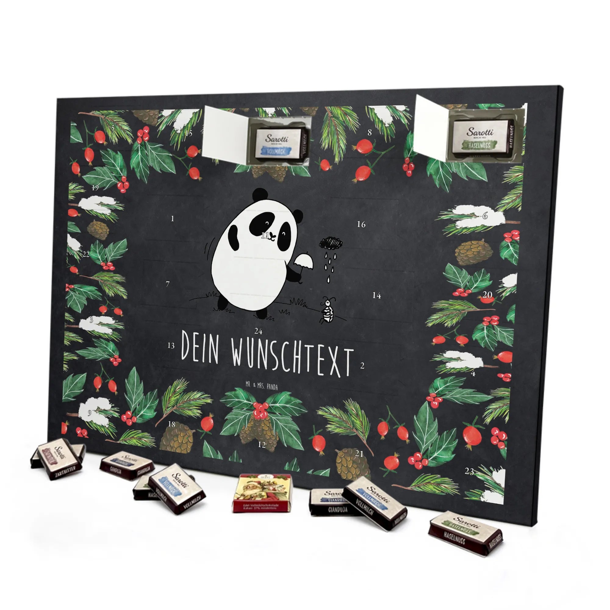 🐼 PERSONALISIERTER SCHOKO-ADVENTSKALENDER: Mit Wunschtext, bedruckt mit Mr. & Mrs. Panda Motiven, gefüllt mit MARKENNAMEN Schokolade.