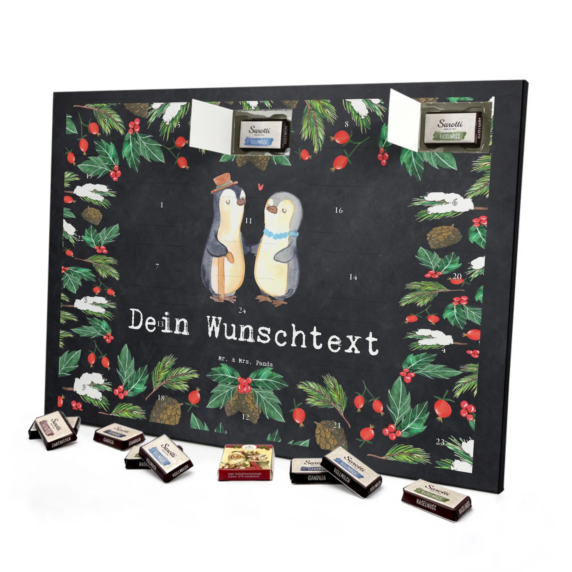 🐼 PERSONALISIERTER SCHOKO-ADVENTSKALENDER: Mit Wunschtext, bedruckt mit Mr. & Mrs. Panda Motiven, gefüllt mit MARKENNAMEN Schokolade.