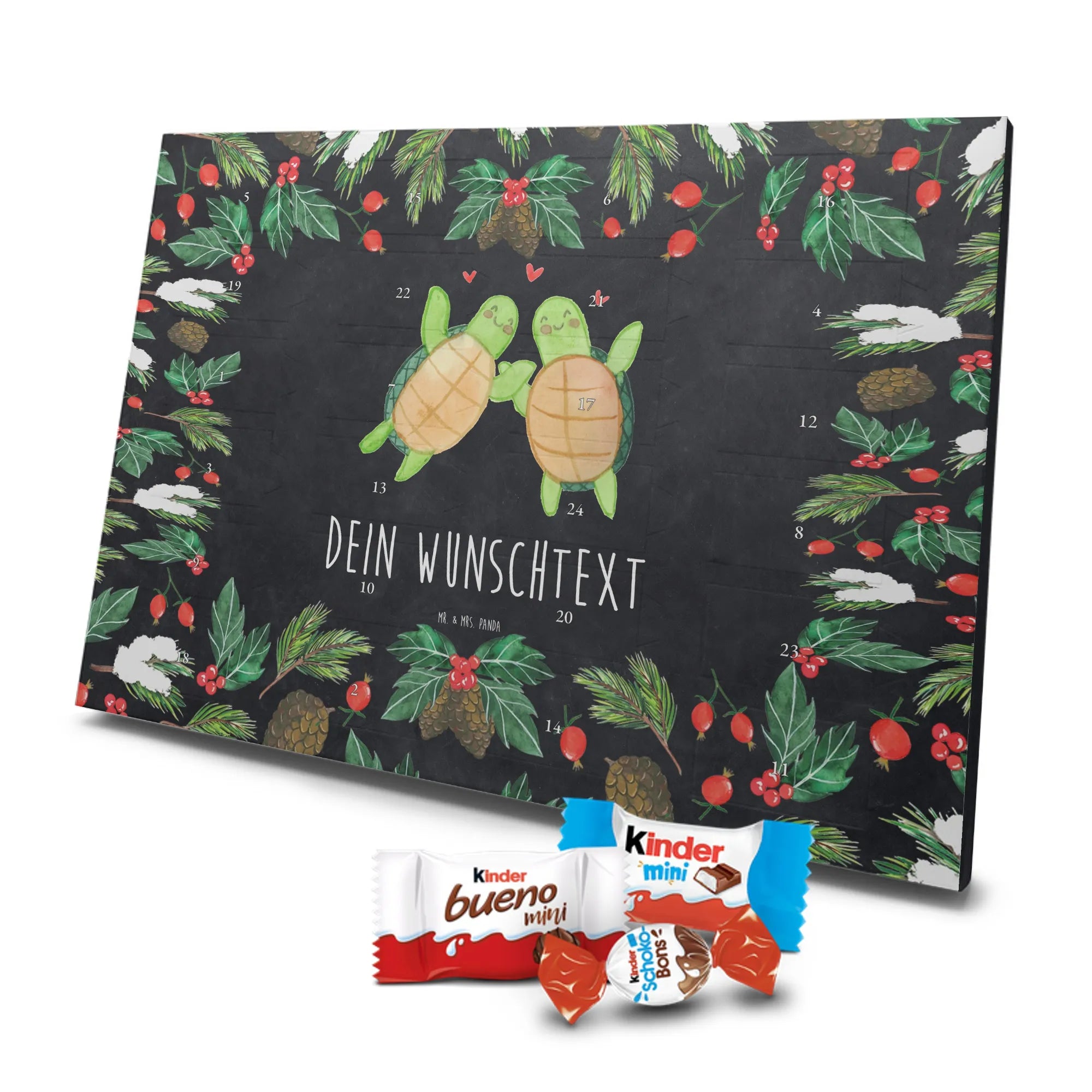 Personalisierter Schoko Adventskalender „Schildkröten Paar“ – die perfekte Liebesüberraschung für deinen Schatz! 💕 Dieser Adventskalender aus der Liebe-Kollektion von Mr. & Mrs. Panda verbindet liebevolle Aquarell-Illustration mit zarter, seidenmatter Veredelung und bringt 24 süße Überraschungen in den Advent.