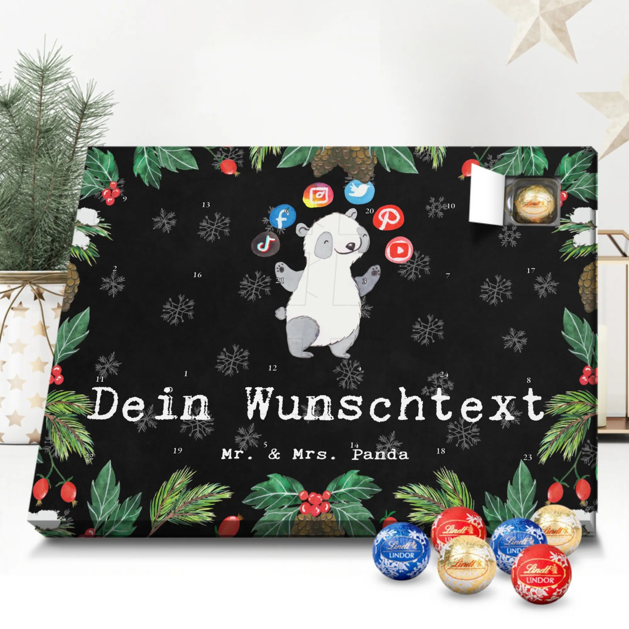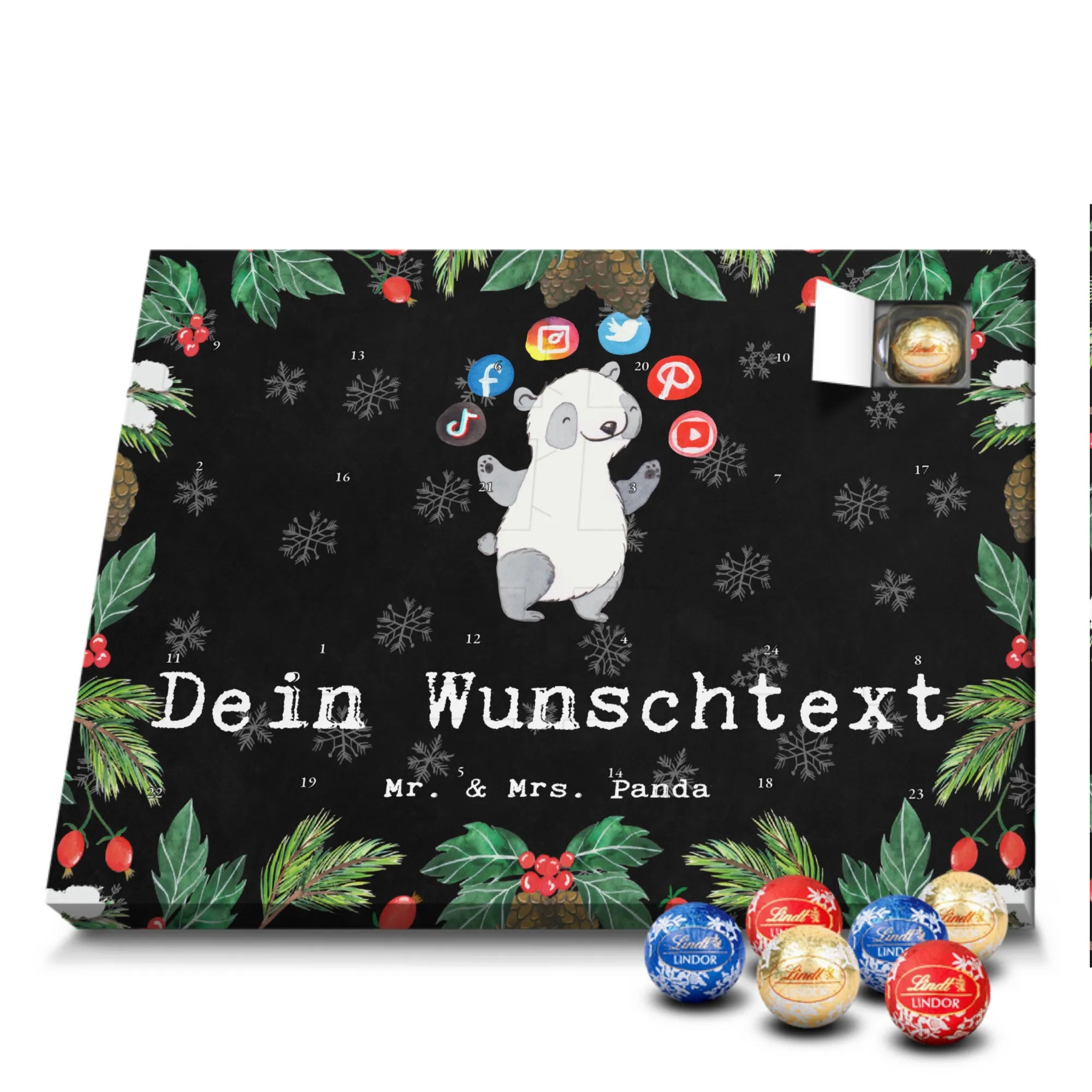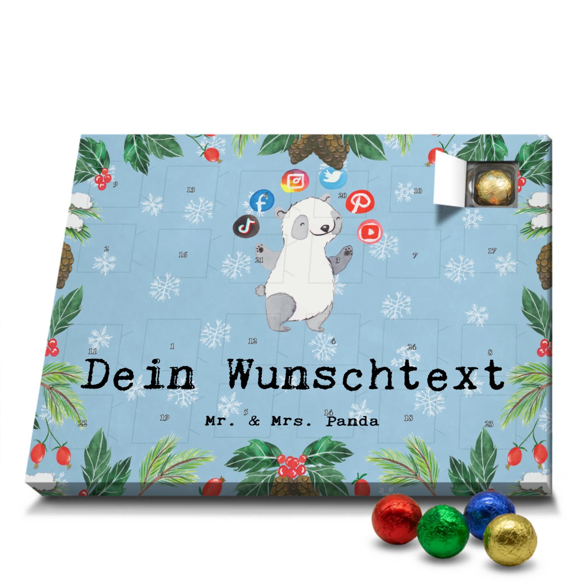 Gestalte Freude: Personalisiere deinen Schoko-Kalender und überrasche mit einem individuellen Adventsgruß von Mr. & Mrs. Panda!