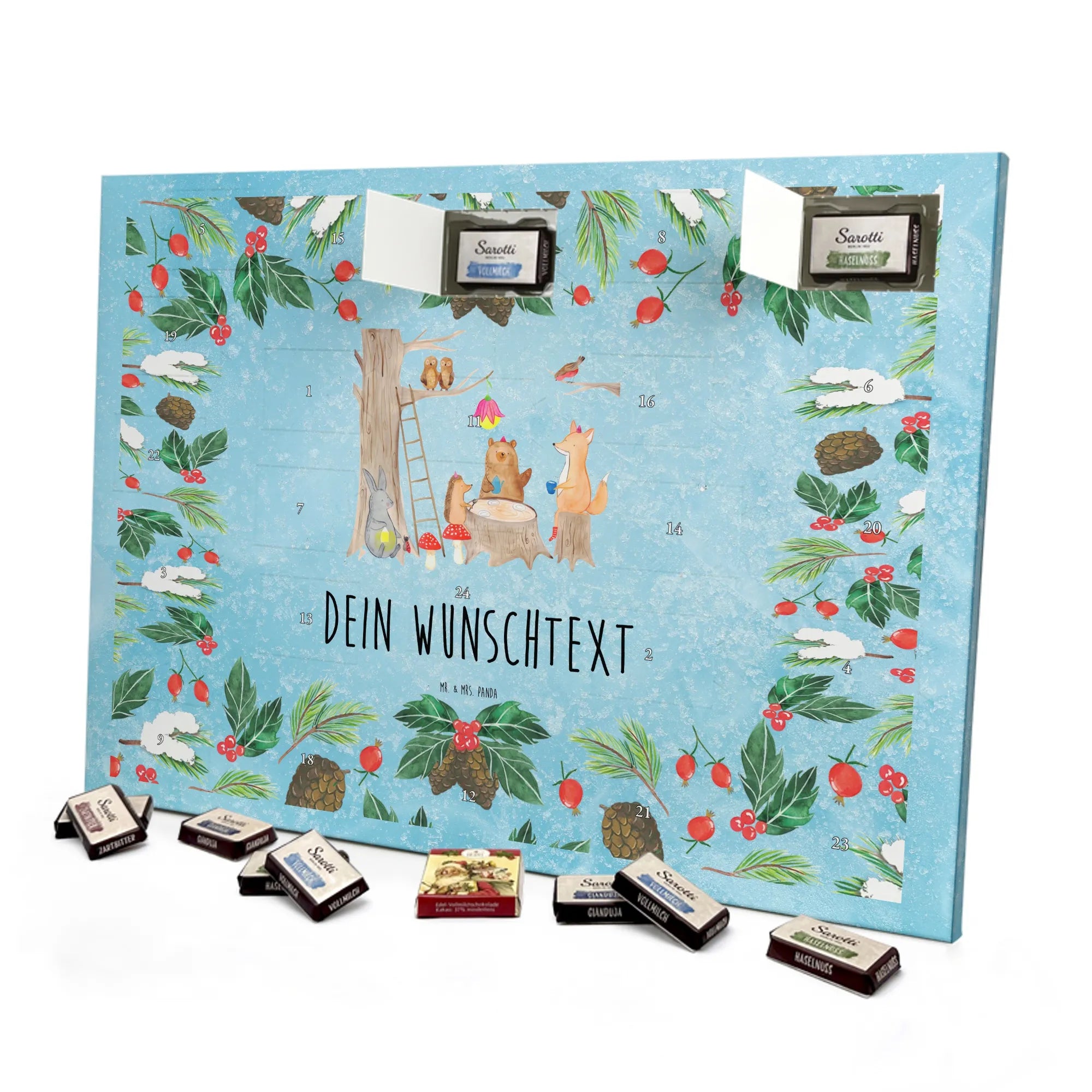 JETZT PERSONALISIEREN & VERSCHENKEN: Kreiere deinen individuellen Schokoladen Adventskalender von Mr. & Mrs. Panda – liebevoll bedruckt und gefüllt mit MARKENNAMEN Schokolade!