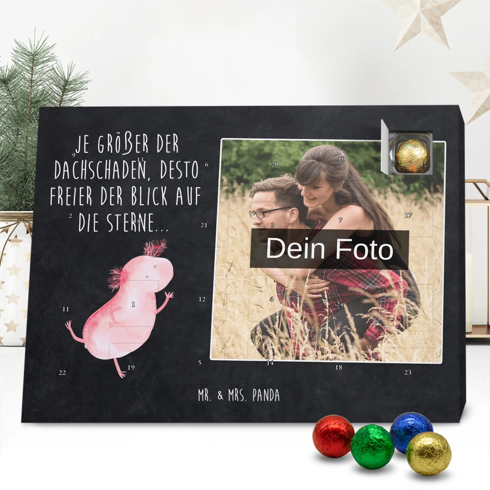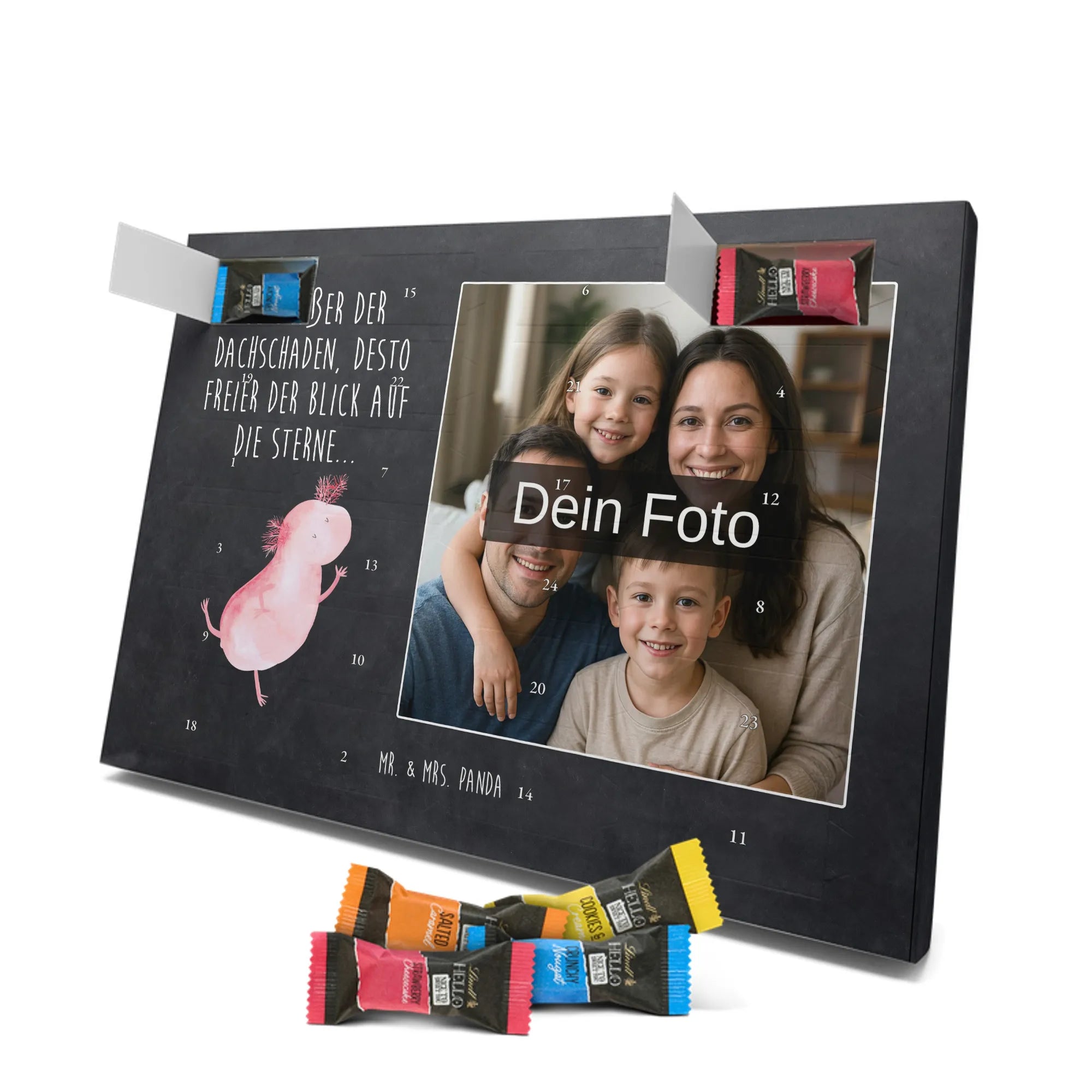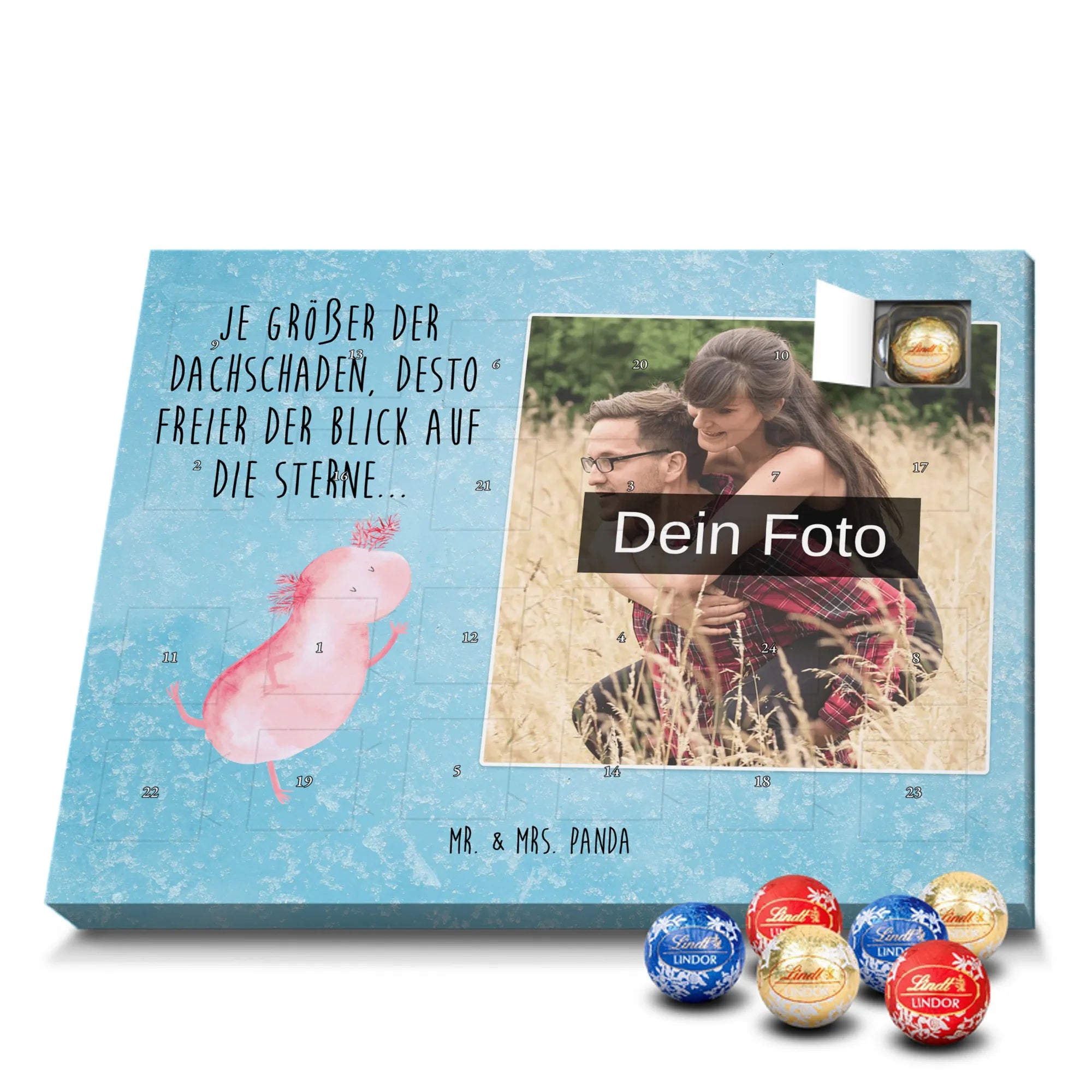 Mach die Adventszeit persönlich mit unserem Personalisiertes Schoko Foto-Adventskalender von Mr. & Mrs. Panda. Dieser Kalender kombiniert dein Lieblingsfoto mit unseren fröhlichen Illustrationen und liebevollen Sprüchen – perfekt als Geschenk für Partner, Familie oder Freunde. Für ein optimales Druckergebnis bitte ein hochauflösendes Bild verwenden und den Bildausschnitt so wählen, dass wichtige Details nicht verloren gehen. Beachte, dass wir Fotos nicht nachbearbeiten oder zuschneiden; lade nur Bilder hoch, für die du die Rechte besitzt. Die hochwertige Verarbeitung beinhaltet eine seidenmatte Oberflächenveredelung und bedruckte Seitenflächen, außerdem ist der Kalender robust und kann aufgehängt oder aufgestellt werden. Maße: 233 mm x 178 mm x 24 mm. Gefüllt mit Lindt Lindor Markenschokolade: 24 einzeln verpackte Kugeln in den Sorten Vollmilch, Feinherb und Weiße Schokolade. Inhaltsstoffe und Allergene sind angegeben; es kann Haselnüsse und Mandeln enthalten. Hinweis: Personalisierte Foto-Artikel sind vom Umtausch ausgeschlossen. Ein süßer, persönlicher Adventsgruß von Mr. & Mrs. Panda.