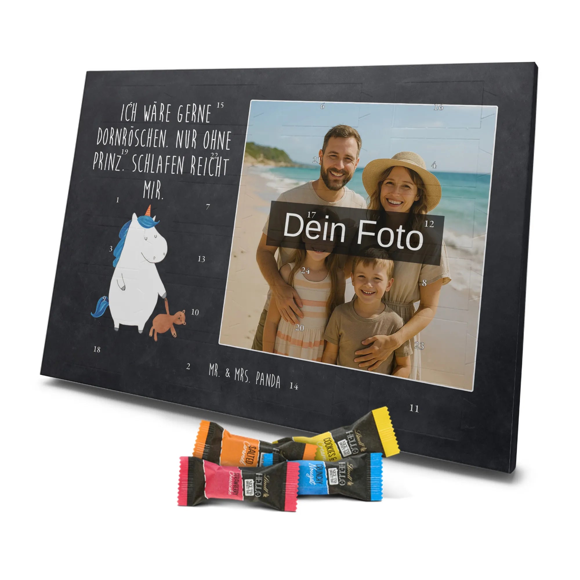 🐼 PERSONALISIERTES ADVENTS-SCHOKOKALENDER: Foto, Mr. & Mrs. Panda Motive & Lindt Hello Minis vereint.