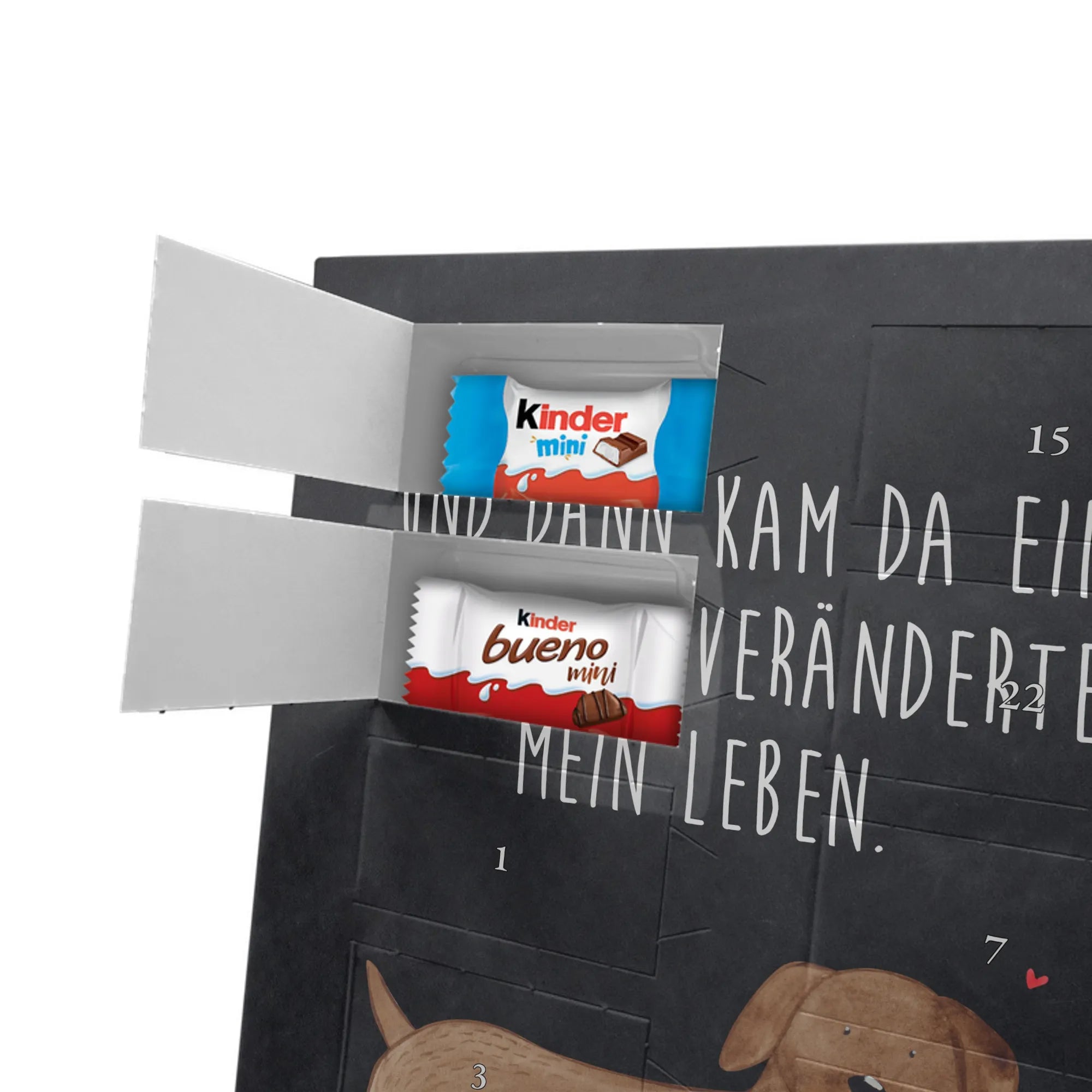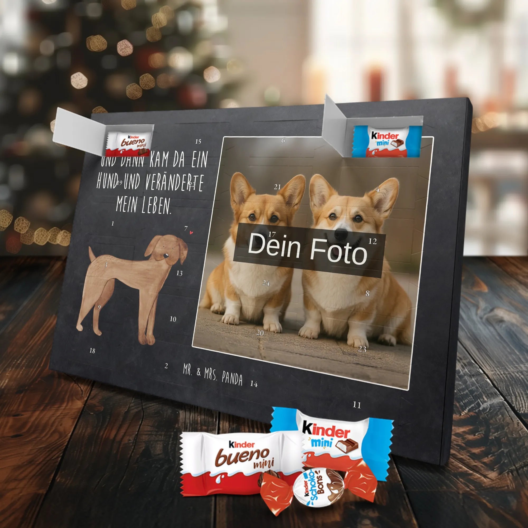 Personalisierter Schoko Foto Adventskalender von Mr. & Mrs. Panda – ein liebevoll gestaltetes Geschenk, das Vorfreude und Genuss vereint. In diesem personalisierten Schoko Foto Adventskalender kannst du dein Lieblingsfoto einsetzen und so jeden Tag im Dezember mit einem kleinen Lächeln öffnen. Der Kalender ist bedruckt mit unseren typischen Mr. & Mrs. Panda Motiven und süßen Sprüchen, die perfekt zu deinem Foto passen. Achte bitte bei der Bildauswahl auf hohe Auflösung, damit der Druck klar und brillant wird. Wähle einen passenden Bildausschnitt, damit keine wichtigen Details abgeschnitten werden. Lade nur Bilder hoch, bei denen du die Bildrechte besitzt oder die Zustimmung der abgebildeten Personen vorliegt. Die Fotos werden weder nachbearbeitet noch zugeschnitten; Rücknahme bei personalisierten Foto-Artikeln ist ausgeschlossen. Die Druckqualität ist brillant mit einer seidenmatten Oberflächenveredelung und bedruckten Seitenflächen für ein rundum schönes Erscheinungsbild. Maße: 355 mm x 245 mm x 11 mm. Praktisch: Du kannst den Adventskalender entweder aufstellen oder an die Wand hängen. Gefüllt ist der Kalender mit kinder® Schokolade – genauer: kinder® Schoko-Bons, kinder® Bueno mini und kinder® Schokolade mini. Bitte beachte: Um das beste Druckergebnis zu erzielen, lade ein hochwertiges Foto hoch und kontrolliere vor dem Bestellen den Bildausschnitt. Dieser Adventskalender ist das perfekte, persönliche Geschenk für Familie, Freunde oder für dich selbst – voller Liebe, süßer Überraschungen und dem unverwechselbaren Mr. & Mrs. Panda Charme.