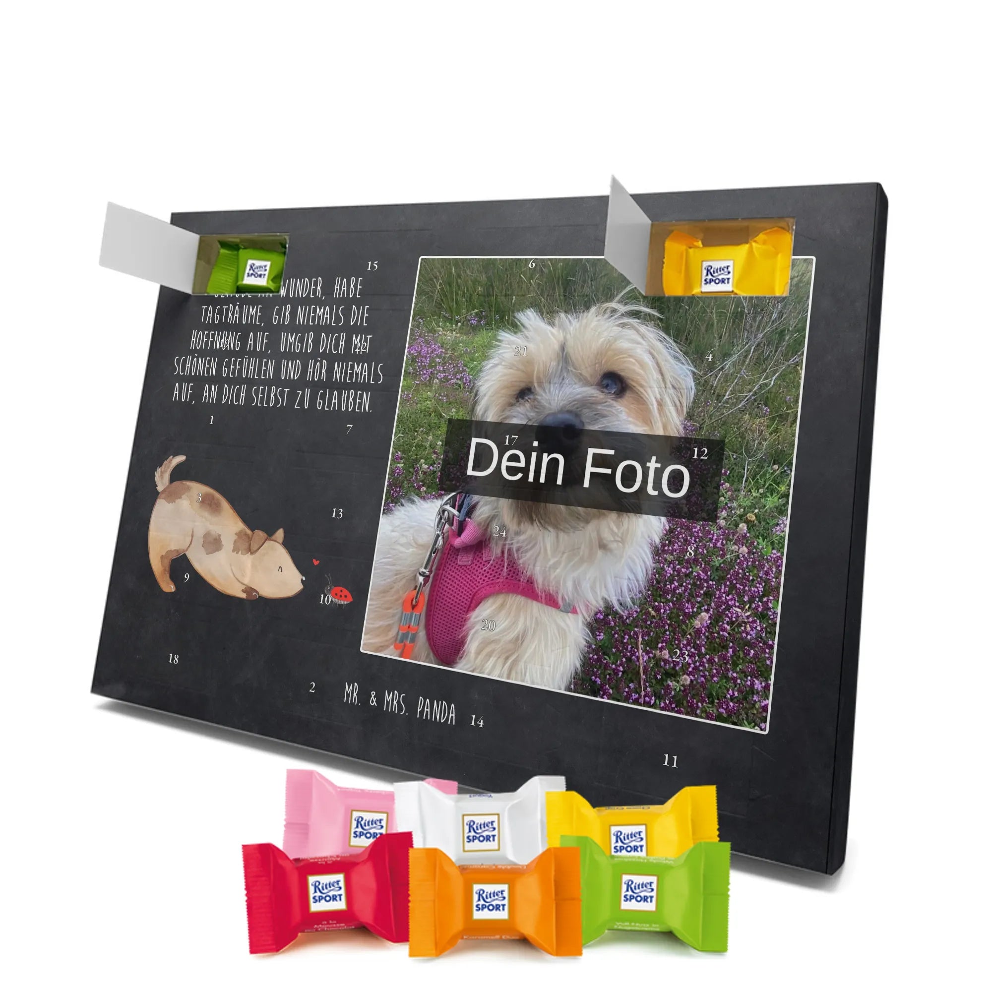 Verschenke Vorfreude: Gestalte jetzt deinen personalisierten Schoko Foto Adventskalender und überrasche mit süßen, persönlichen Momenten von Mr. & Mrs. Panda.