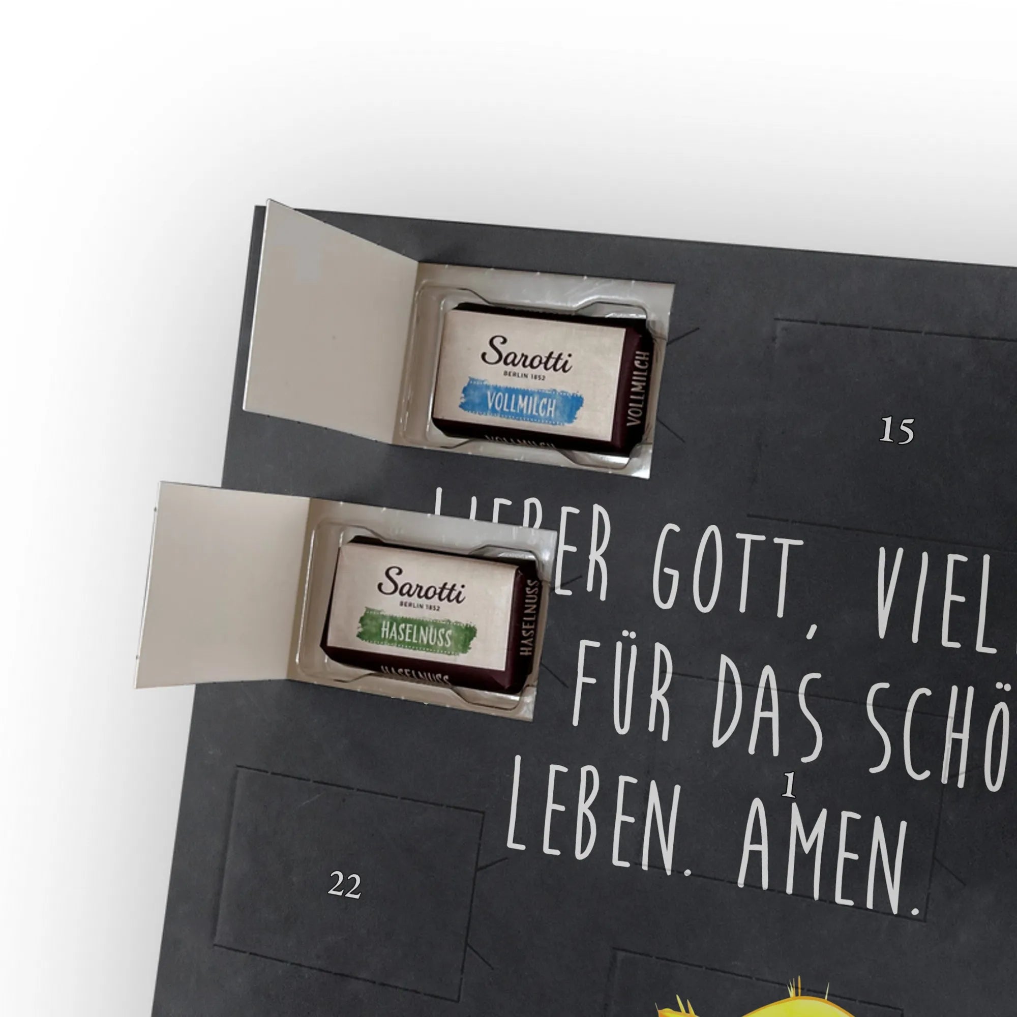 Personalisierter Schoko Foto Adventskalender Igel Beten - Sarotti - Kreidetafel