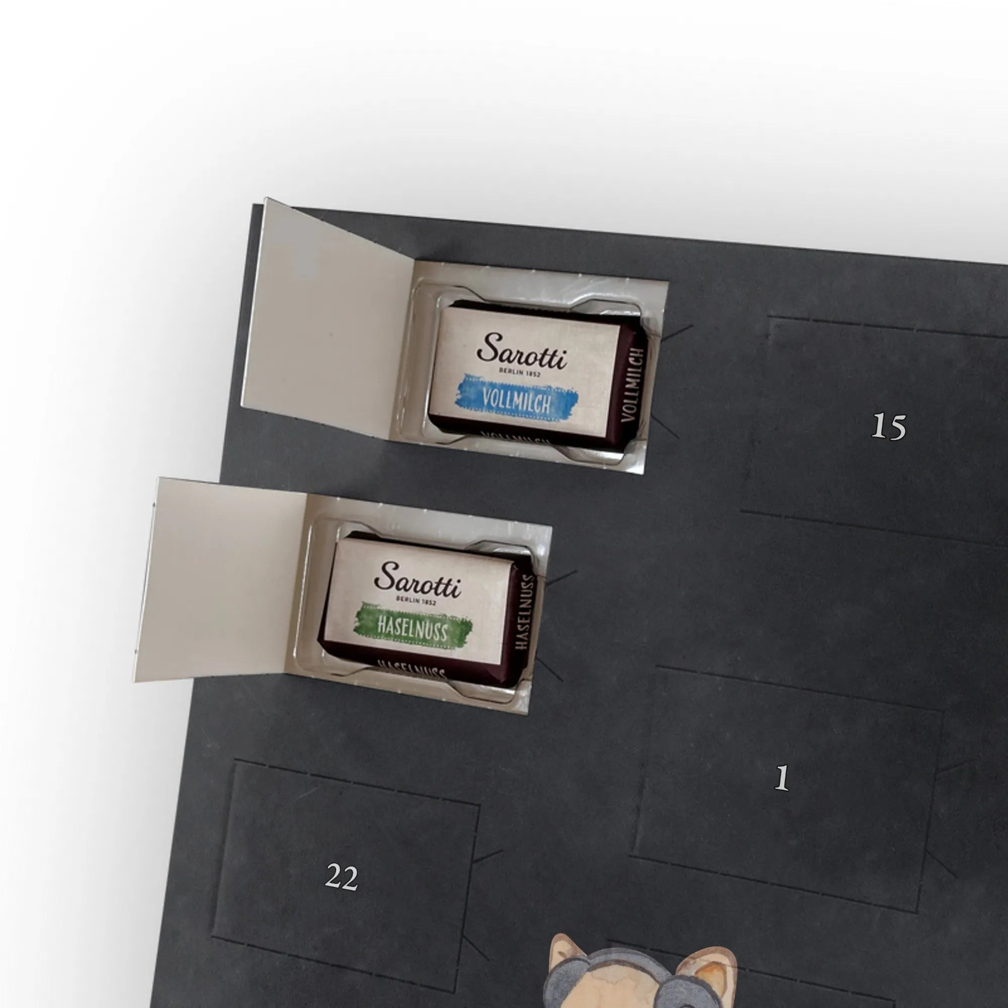 Personalisierter Schoko Foto Adventskalender – die süße, individuelle Adventsüberraschung von Mr. & Mrs. Panda! Jeder Kalender ist bedruckt mit unseren liebevollen Motiven und Sprüchen und kann mit deinem persönlichen Foto gestaltet werden. Für ein perfektes Druckergebnis achte bitte auf eine hohe Auflösung des Fotos und auf einen passenden Bildausschnitt; lade nur Bilder hoch, für die du die Rechte besitzt. Der Kalender überzeugt durch brillante Druckqualität, seidenmatte Oberflächenveredelung und bedruckte Seitenflächen. Maße: 355 mm x 245 mm x 11 mm – ideal zum Hinstellen oder Aufhängen. Hinweis: Die Fotos werden weder aufbereitet noch zugeschnitten; personalisierte Foto Artikel sind vom Rückgaberecht ausgeschlossen. Gefüllt mit einer hochwertigen Auswahl: 24 einzeln verpackte Schokoladentäfelchen in den Geschmacksrichtungen Vollmilch, Nougat, Zartbitter und Haselnuss von Sarotti® und Confiserie Heidel®. Insgesamt 107 g Markenschokolade sorgen für köstliche Adventsmomente. Verschenke Erinnerungen und Schokolade – ein persönliches Statement unter dem Weihnachtsbaum, mit ganz viel Mr. & Mrs. Panda Herz.