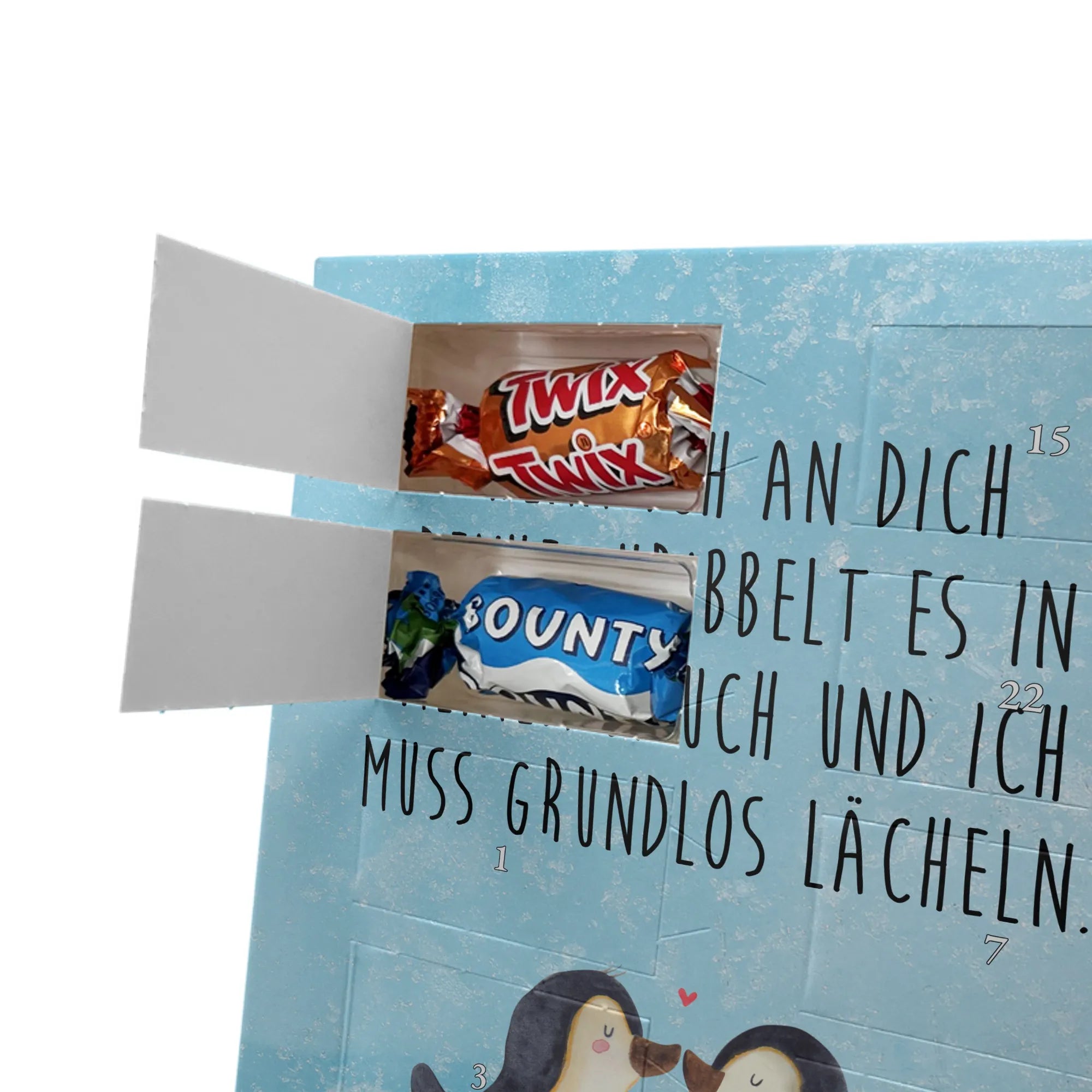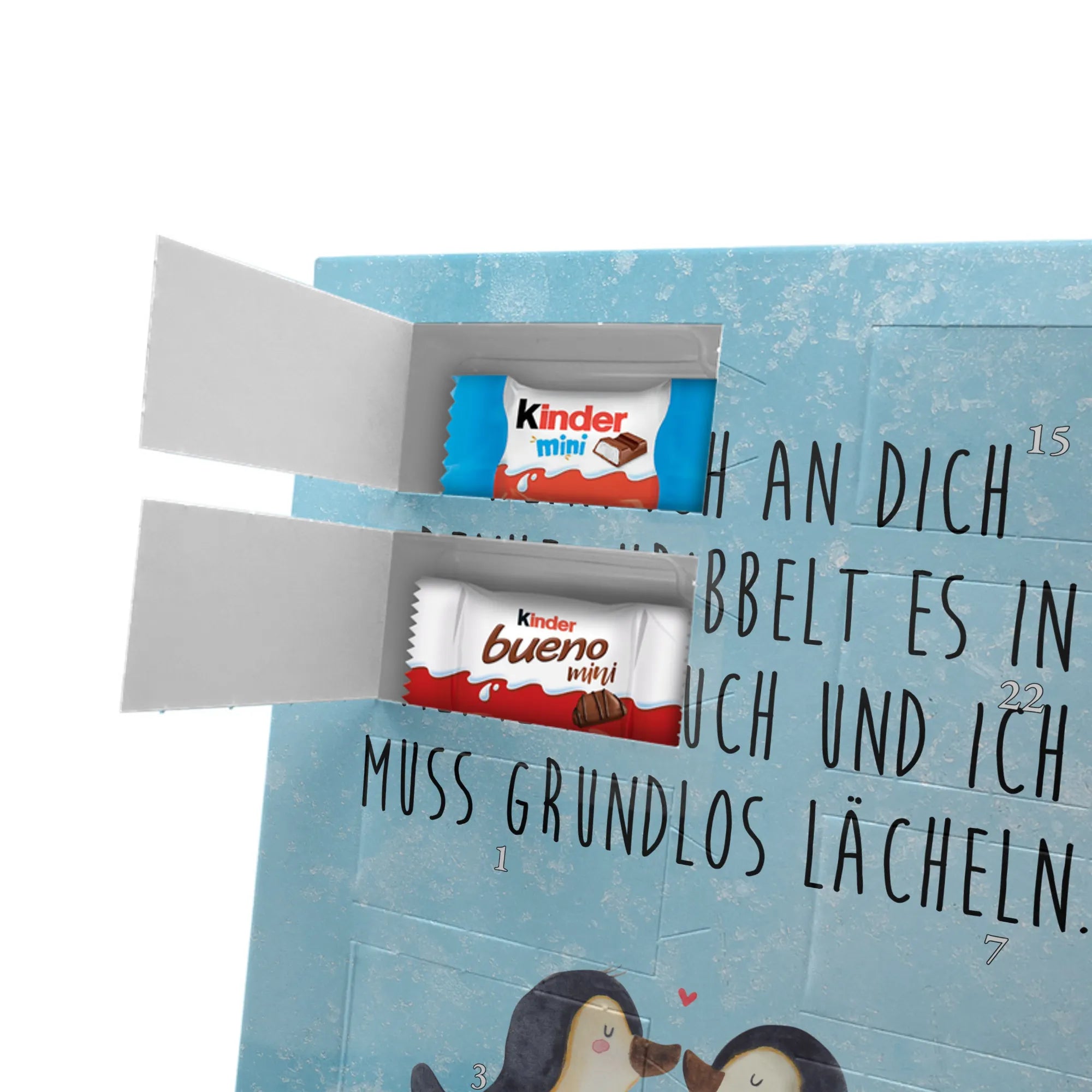 Personalisierter Schoko Foto Adventskalender Pinguine Kuss - Classic - Eisblau
