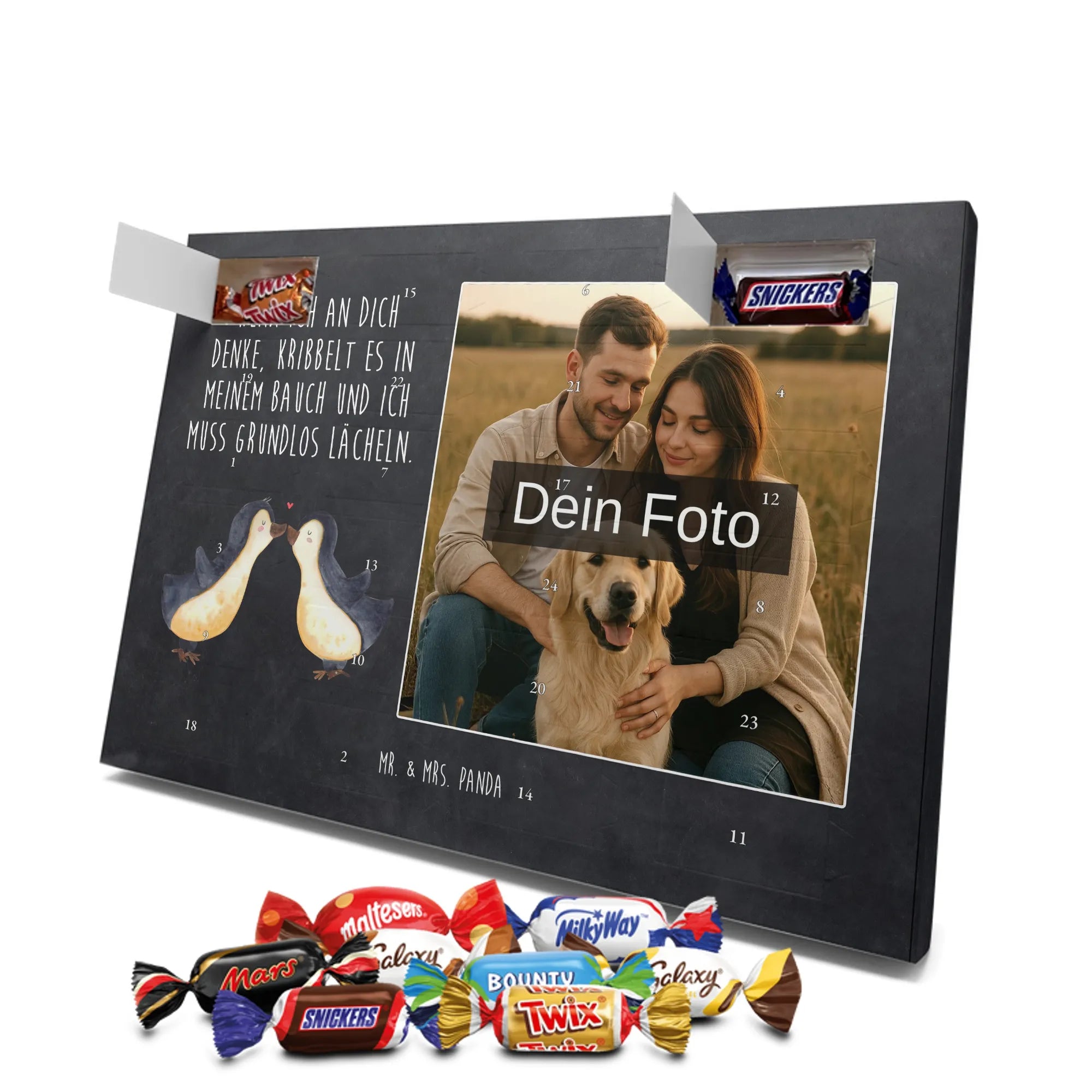 🐼 Ideales Foto-Geschenk: Personalisierter Schoko Foto Adventskalender mit Mr. & Mrs. Panda Sprüchen und deinem Bild.