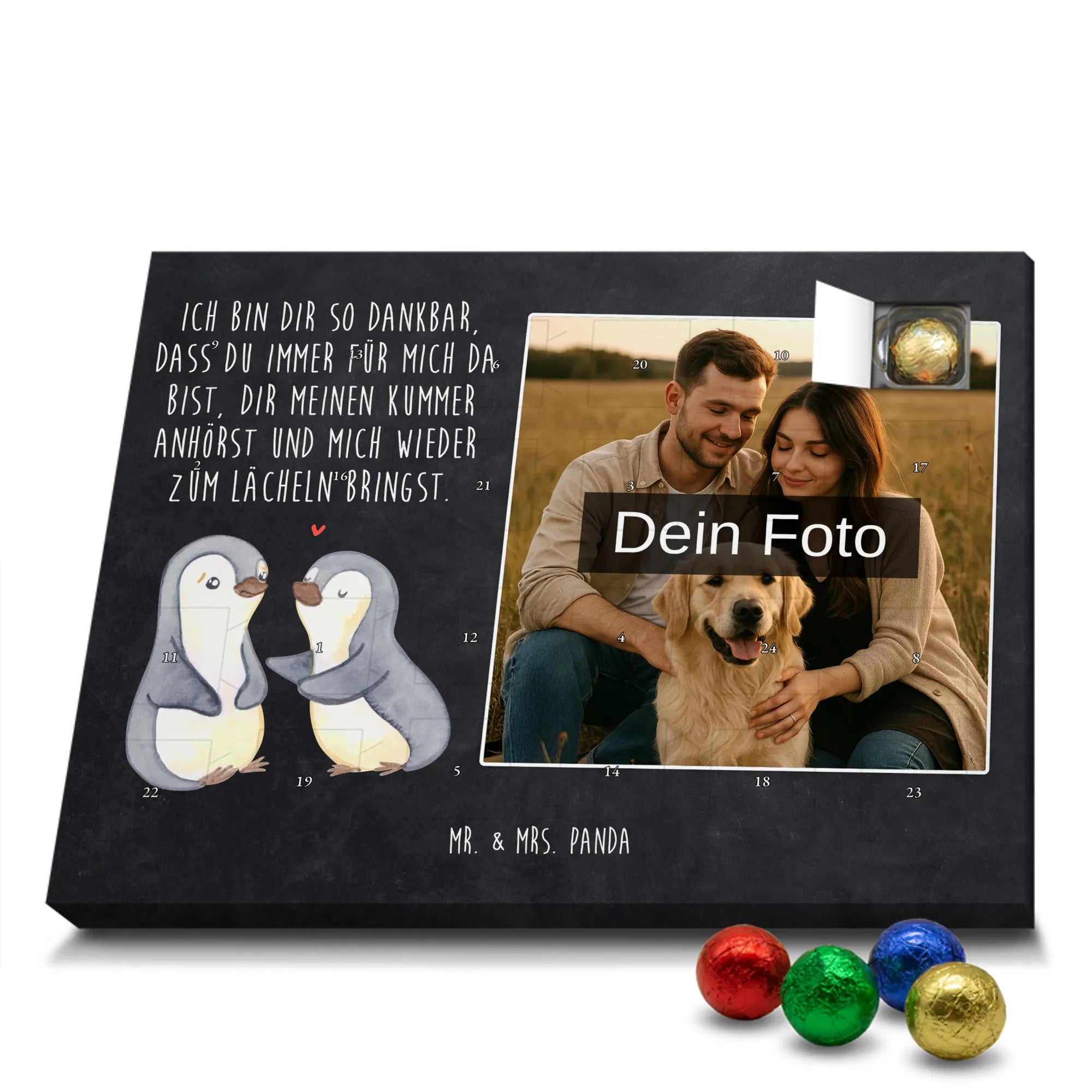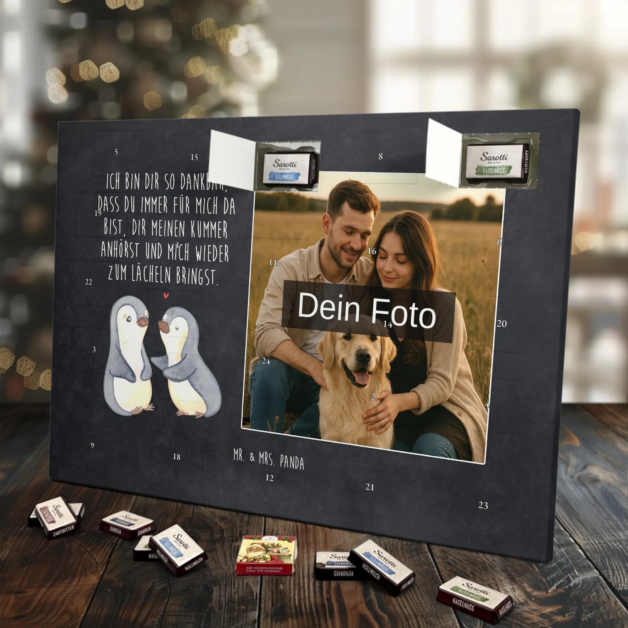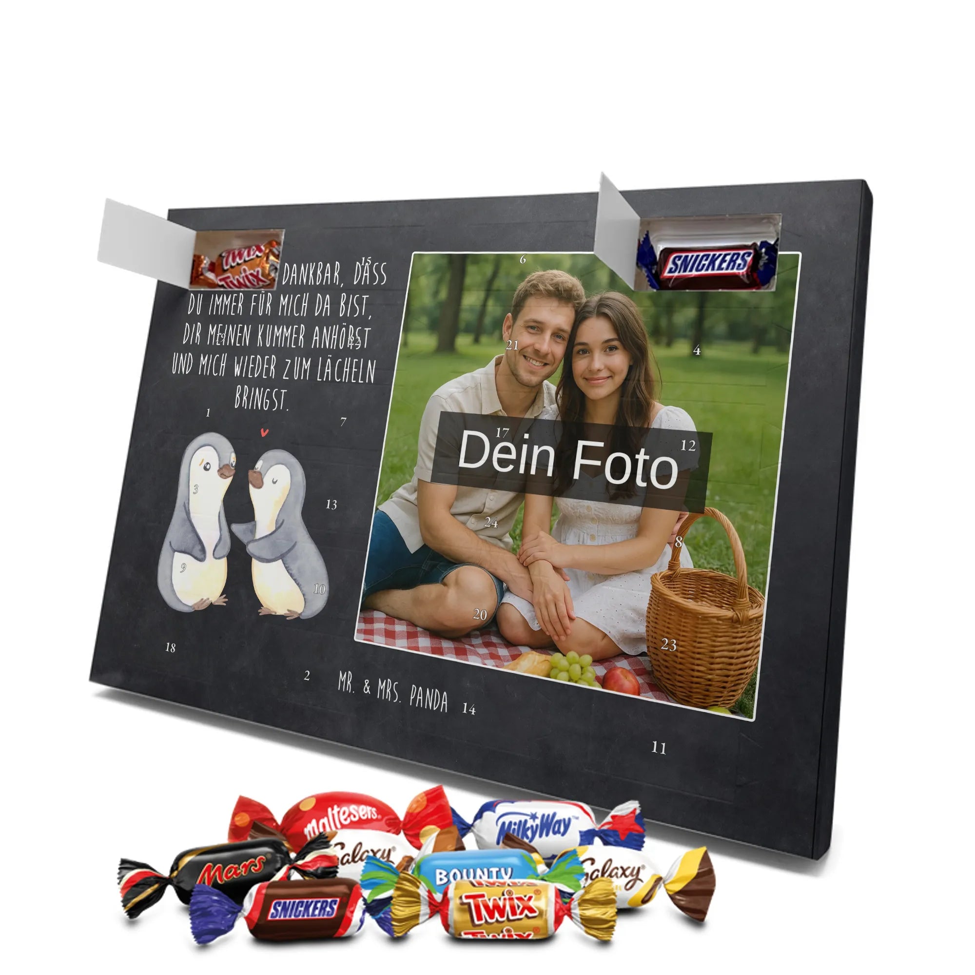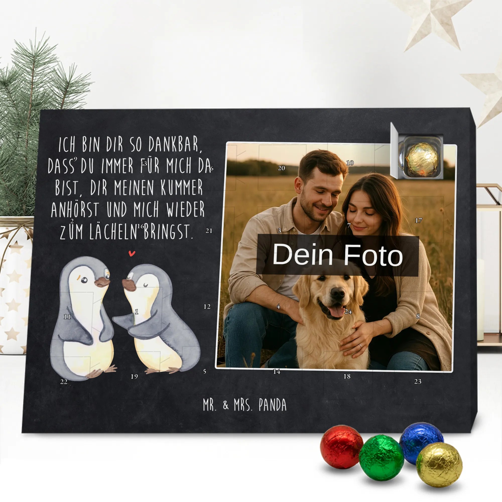 Verschenke Vorfreude: Gestalte jetzt deinen personalisierten Schoko Foto Adventskalender und überrasche mit süßen, persönlichen Momenten von Mr. & Mrs. Panda.