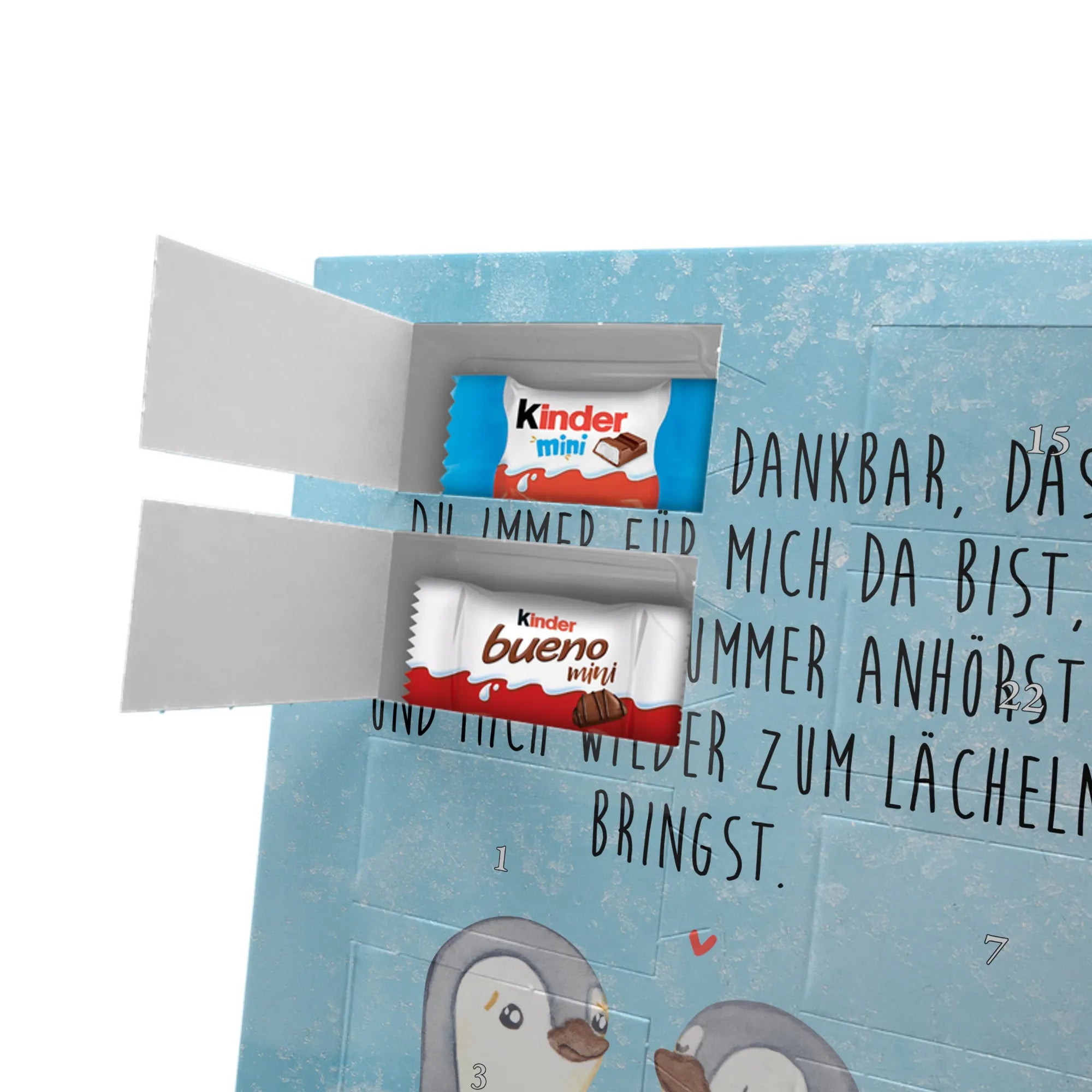 Personalisierter Schoko Foto Adventskalender Pinguine trösten - Classic - Eisblau