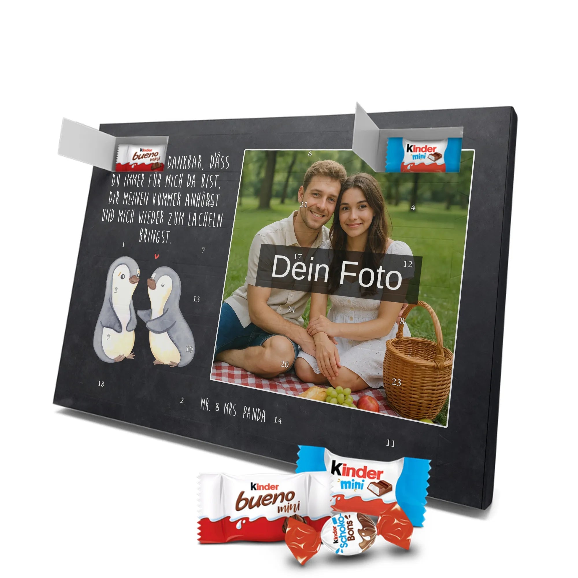 🐼 Personalisierter Schoko Foto Adventskalender mit deinem Foto, Mr. & Mrs. Panda Sprüchen und kinder® Schokolade.