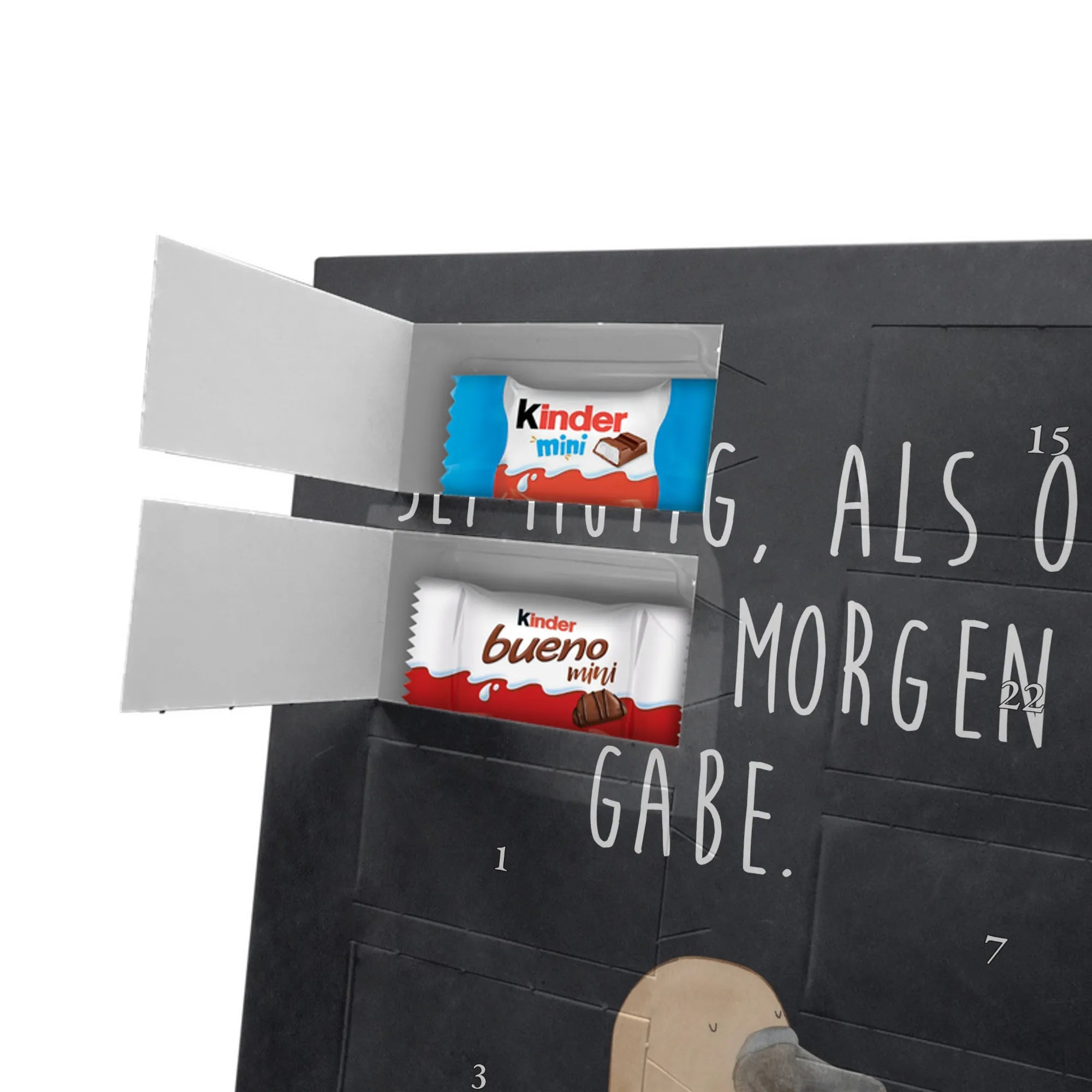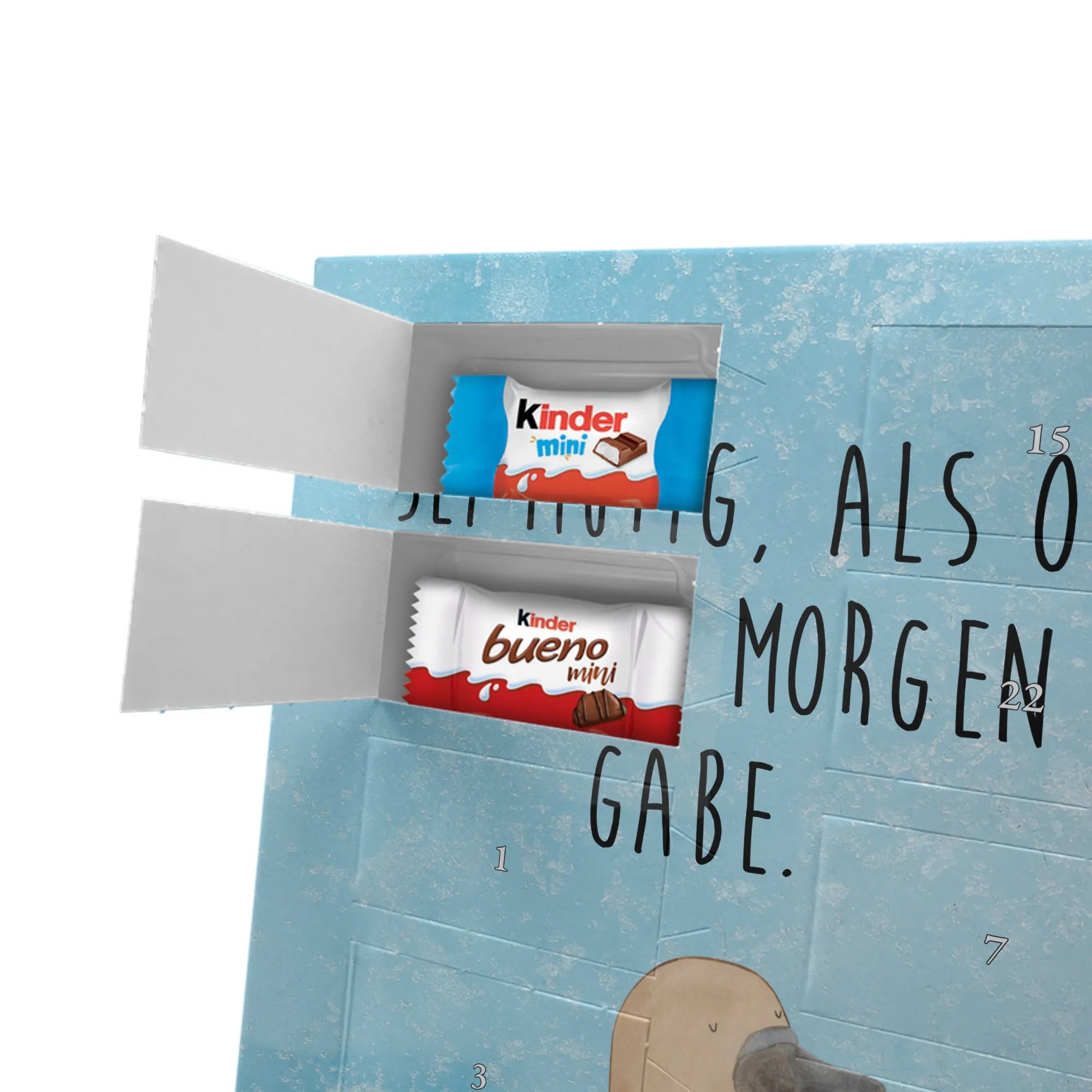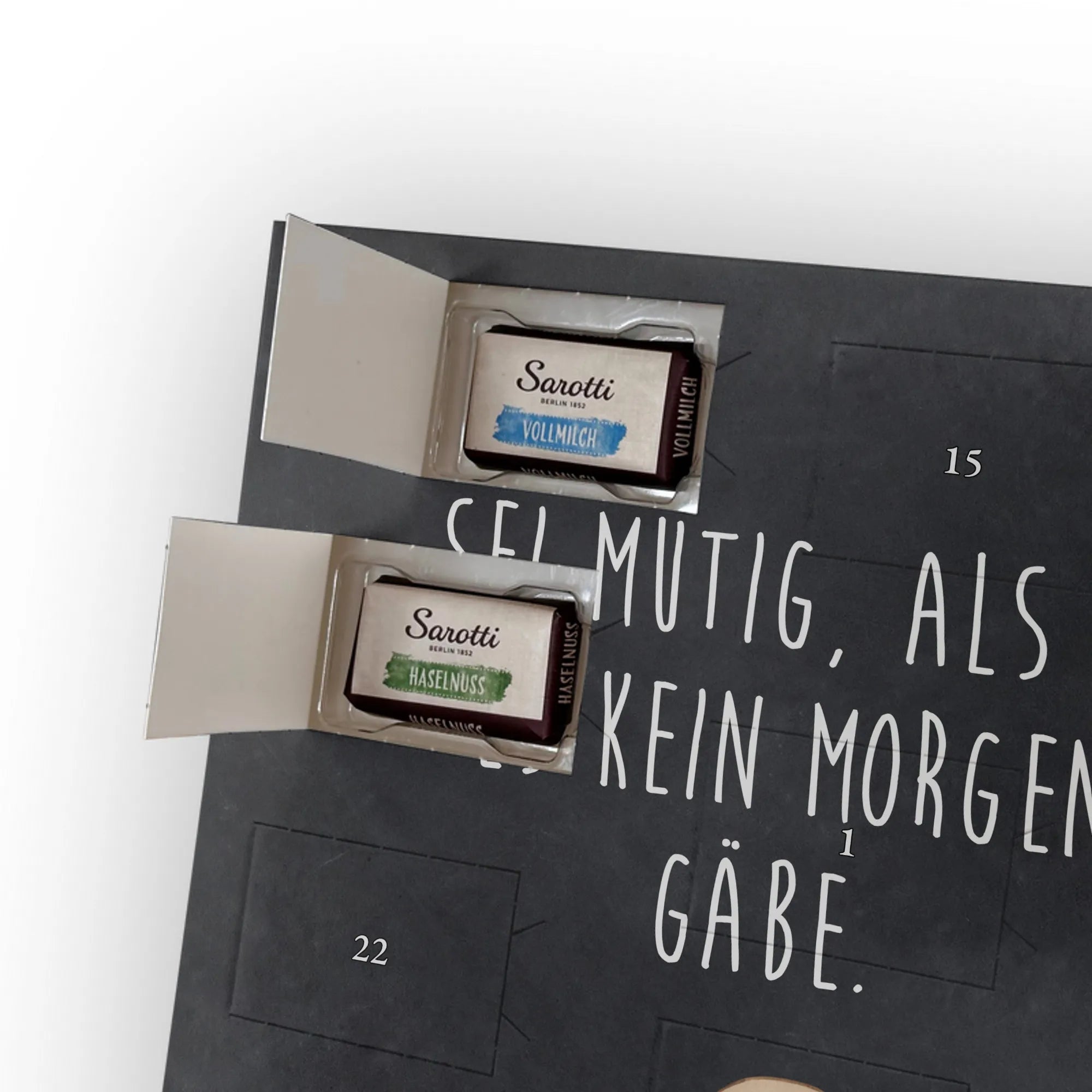Personalisierter Schoko-Adventskalender mit Foto – das kleine Weihnachtswunder von Mr. & Mrs. Panda! Verschenke jeden Tag Vorfreude: Der Kalender ist liebevoll gestaltet mit unseren herzlichen Illustrationen und Sprüchen, während dein Foto die persönliche Mitte bildet. Bitte lade ein hochauflösendes Foto hoch und prüfe den Bildausschnitt, damit nichts Wichtiges verloren geht. Nutze nur Bilder, für die du die Rechte hast. Die hochwertige, seidenmatte Veredelung und die bedruckten Seitenflächen garantieren ein edles Erscheinungsbild. Maße: 355 mm x 245 mm x 11 mm; lässt sich sowohl aufhängen als auch aufstellen. Achtung: Fotos werden nicht nachbearbeitet oder zugeschnitten; personalisierte Artikel sind vom Rückgaberecht ausgeschlossen. Gefüllt mit 24 einzeln verpackten Schokoladentäfelchen aus den vier Geschmacksrichtungen Vollmilch, Nougat, Zartbitter und Haselnuss – von Sarotti® und Confiserie Heidel®. Insgesamt enthält der Kalender 107 g Markenschokolade. Ein persönliches Geschenk mit süßem Inhalt, ideal für Partner, Familie und Freunde, verpackt mit der typischen Mr. & Mrs. Panda Liebe zum Detail.