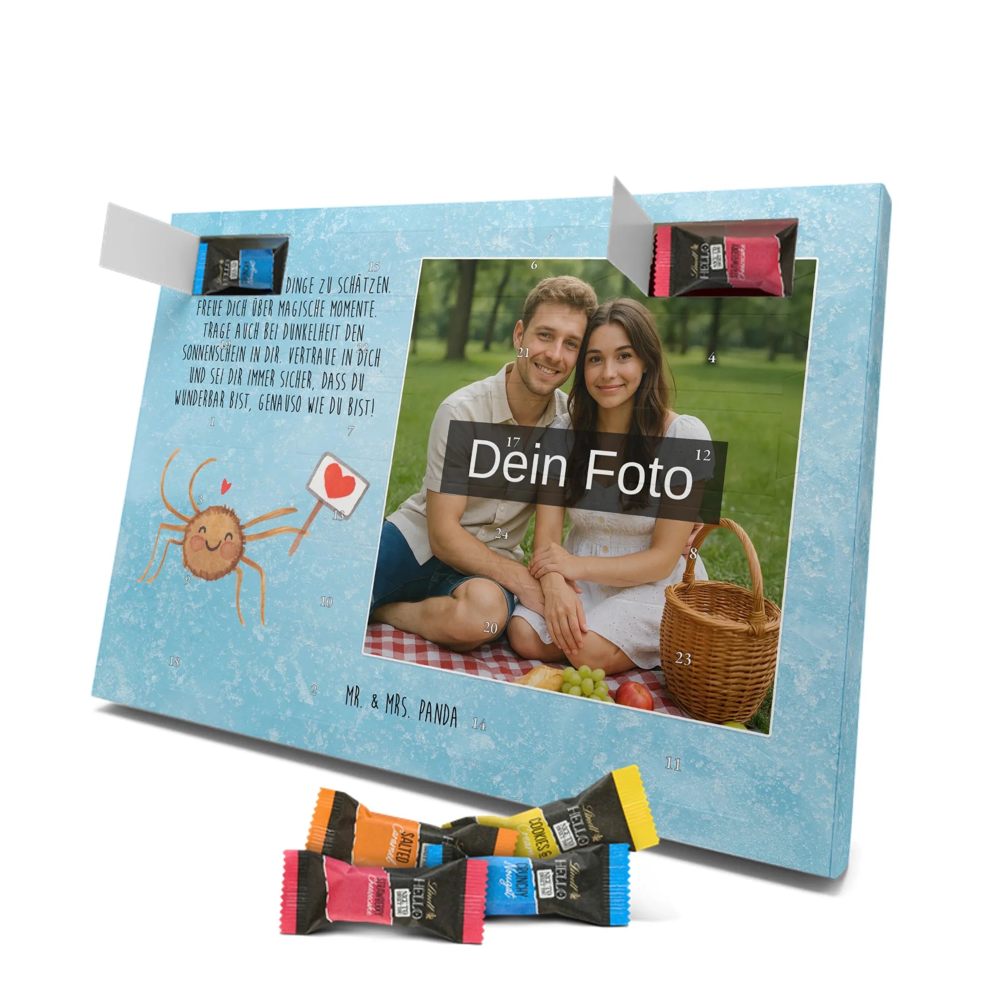 Personalisierter Schoko Foto Adventskalender Spinne Agathe Motivation - Lindt HELLO - Eisblau