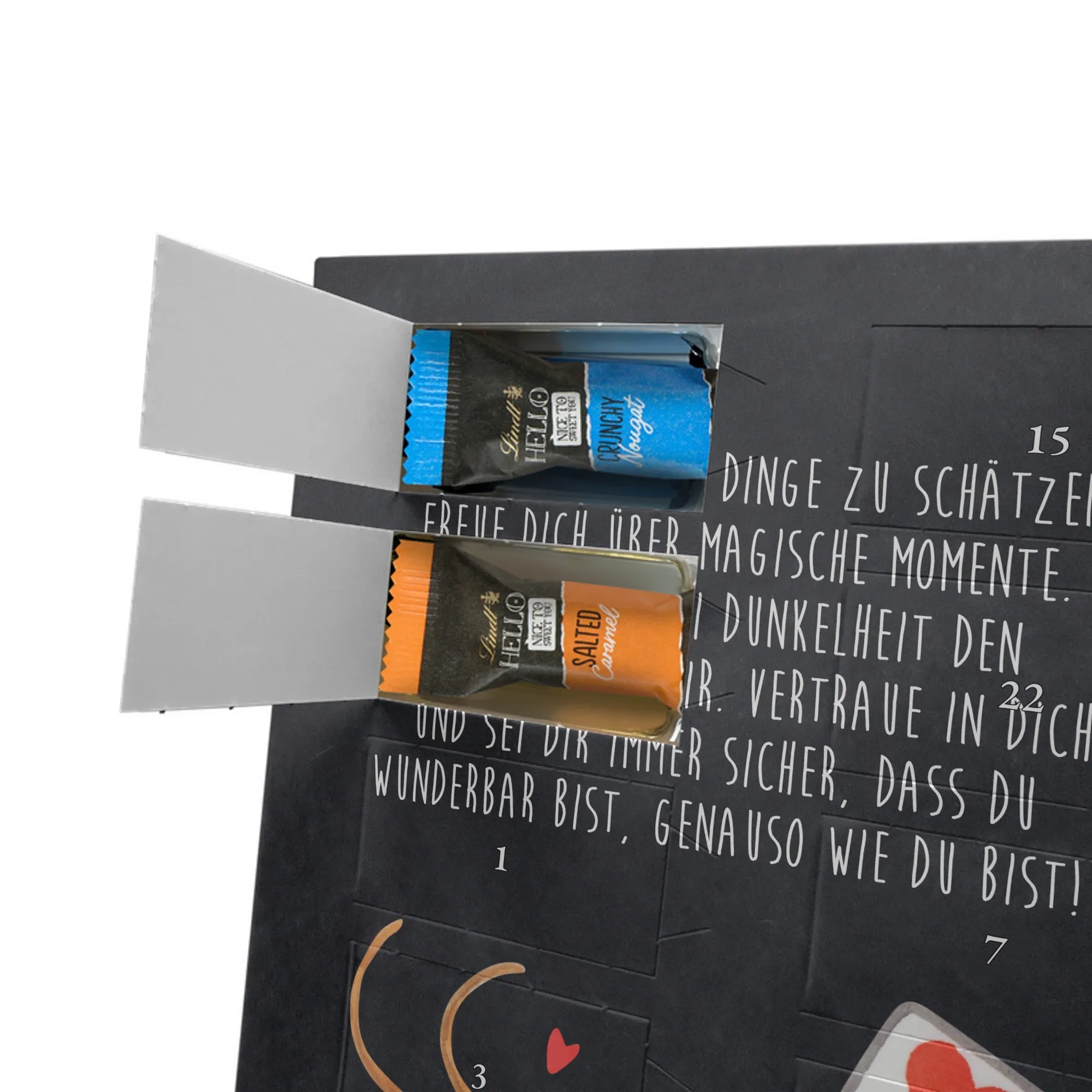 Wunderschöner Personalisierter Schoko Foto Adventskalender von Mr. & Mrs. Panda – perfekt zum Verschenken oder zum Verwöhnen. Dieser Adventskalender verbindet liebevolle Mr. & Mrs. Panda-Motive und Sprüche mit deinem persönlichen Foto auf der Vorderseite. Die hochwertige Verarbeitung mit seidenmatter Oberflächenveredelung sorgt für brillante Farben und eine edle Haptik, die man gerne anfasst. Bedruckte Seitenflächen und die stabile Ausführung machen den Kalender zum echten Hingucker in der Adventszeit. Bitte achte auf eine hohe Auflösung deines Fotos, damit das Druckergebnis klar und scharf wird, und wähle einen passenden Bildausschnitt, damit keine wichtigen Details abgeschnitten werden. Lade nur Bilder hoch, bei denen du die Rechte besitzt oder die Erlaubnis hast, besonders bei Fotos mit Personen. Wichtig: Die Fotos werden weder aufbereitet noch zugeschnitten – eine Rücknahme bei personalisierten Foto-Artikeln ist ausgeschlossen. Der Kalender kann aufgehängt oder aufgestellt werden, so wie es dir gefällt. Maße: 233 mm x 178 mm x 24 mm. Gefüllt mit Lindt Lindor Markenschokolade: 24 einzeln verpackte Markenschokoladen Kugeln in drei Sorten (Vollmilch, Feinherb, Weiße Schokolade). Zutatenhinweis: Kann Haselnüsse und Mandeln enthalten. Ein liebevoller, personalisierter Adventsmoment von Mr. & Mrs. Panda.