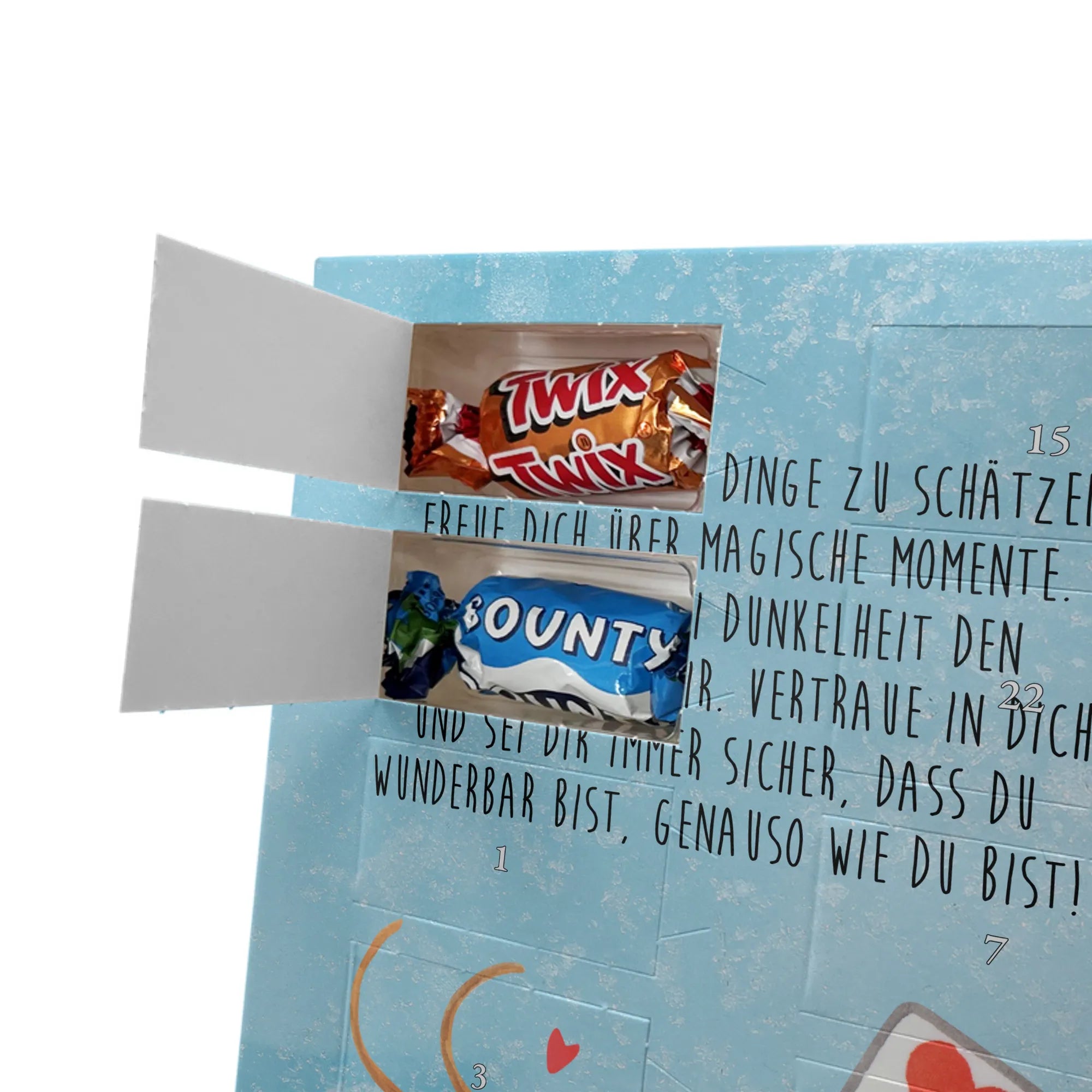 Liebevoller Foto Adventskalender personalisiert von Mr. & Mrs. Panda – der perfekte Begleiter durch die Adventszeit. Bedruckt mit unseren beliebten Motiven & Sprüchen, kannst du den Kalender mit einem persönlichen Foto versehen. Achte auf hohe Auflösung und einen passenden Bildausschnitt, damit das Motiv optimal zur Geltung kommt. Verwende nur Bilder, für die du die Rechte besitzt, um rechtliche Probleme zu vermeiden. Der Kalender bietet brillante Druckqualität, eine seidenmatte Oberflächenveredelung und bedruckte Seitenflächen. Maße: 233 mm x 178 mm x 24 mm. Besonderheit: Er lässt sich sowohl aufstellen als auch aufhängen. Bitte beachte: Die Fotos werden weder aufbereitet noch zugeschnitten, daher ist eine Rücknahme bei personalisierten Foto-Artikeln ausgeschlossen. Gefüllt mit MARKENNAMEN Schokolade und leckeren Schokoladenkugeln. Hinweis: Kann Spuren von Haselnüssen, Mandeln, Gluten und Soja enthalten. Kühl und trocken lagern. Schenke persönliche Vorfreude – jeden Tag ein kleines Highlight mit Schokolade und Erinnerungen.
