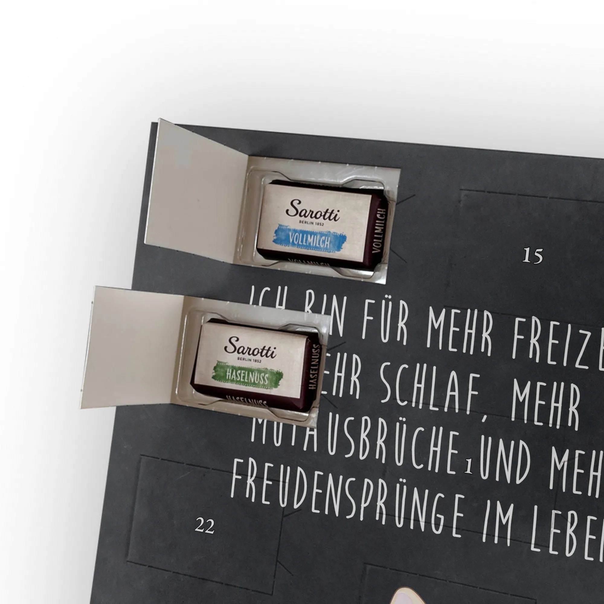 Schoko Foto Adventskalender personalisiert – ein zauberhaftes Geschenk, das Erinnerungen und Geschmack vereint. Mr. & Mrs. Panda haben liebevolle Motive und Sprüche gestaltet, die den Kalender umrahmen; dein Foto setzt die persönliche Note. Für ein optimales Druckbild lade bitte ein Foto mit hoher Auflösung hoch und achte auf einen passenden Bildausschnitt, damit wichtige Details nicht abgeschnitten werden. Bitte nur Bilder verwenden, für die du die Rechte besitzt. Die seidenmatte Oberflächenveredelung sorgt für edle Haptik und die bedruckten Seitenflächen für ein rundum gelungenes Design. Maße: 355 mm x 245 mm x 11 mm – kann aufgehängt oder aufgestellt werden. Wichtiger Hinweis: Wir bearbeiten oder schneiden die Fotos nicht nach; eine Rücknahme personalisierter Foto Artikel ist ausgeschlossen. Gefüllt mit 24 einzeln verpackten Schokoladentäfelchen in den Geschmacksrichtungen Vollmilch, Nougat, Zartbitter und Haselnuss von Sarotti® und Confiserie Heidel®. Insgesamt enthält der Kalender 107 g Markenschokolade. Ideal als Geschenk für Partner, Familie oder Freunde – persönlich, süß und liebevoll verpackt von Mr. & Mrs. Panda.