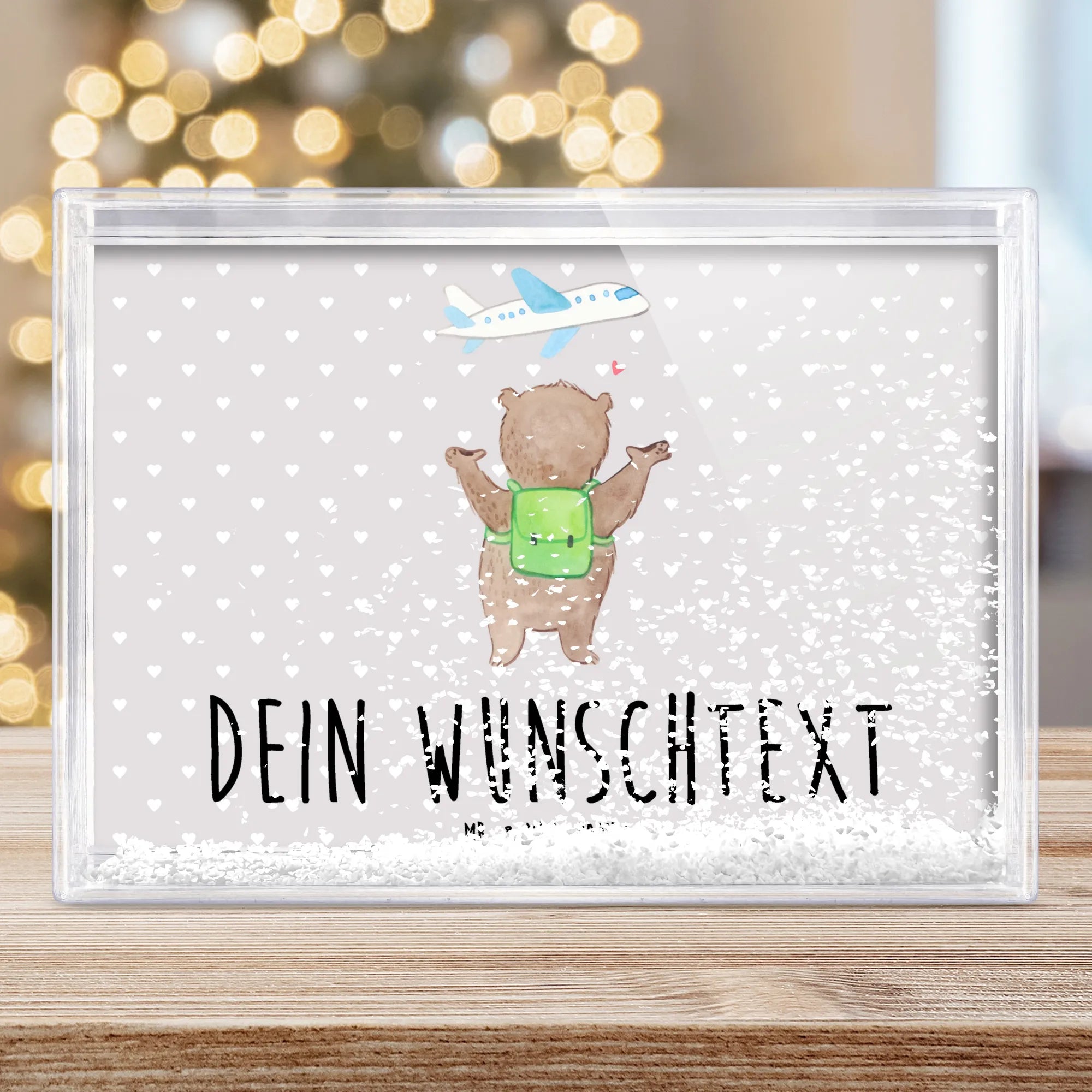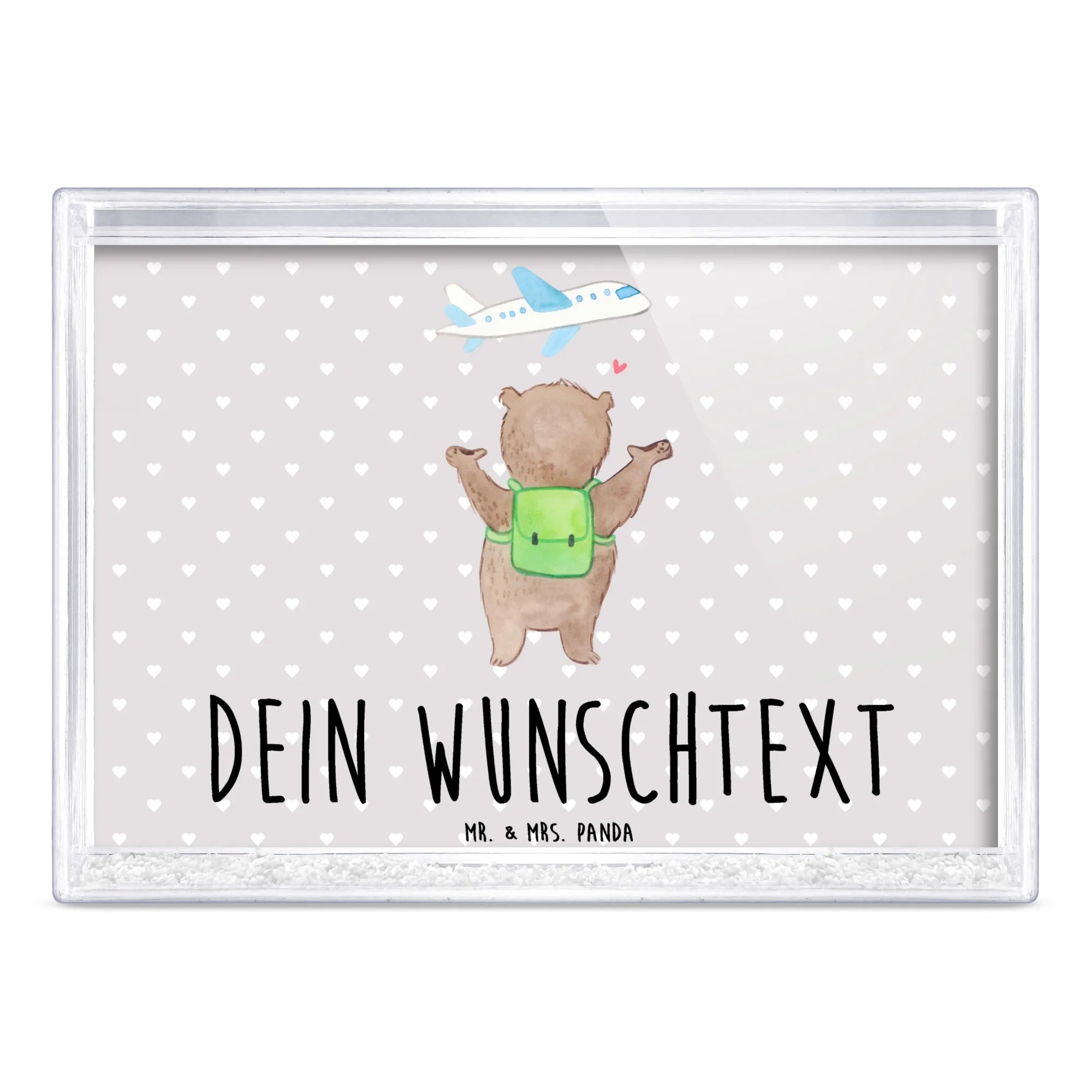 Der personalisierte Schüttelrahmen mit dem bezaubernden Motiv des Bären im Flugzeug von Mr. & Mrs. Panda ist mehr als nur ein dekoratives Accessoire - er ist ein Liebesbeweis für ganz besondere Anlässe! Dieser einzigartige Rahmen bringt nicht nur charmante Farben und einen wunderbaren Aquarell-Look mit sich, sondern auch eine tiefere Botschaft. Das Bild zeigt einen süßen Bären mit einer grünen Umhängetasche, der mit weit ausgebreiteten Armen in den Himmel schaut, während ein stilisiertes Flugzeug über ihn schwebt. Zwischen diesen beiden schwebt ein rotes Herz, das die Verbundenheit und die Freude am Reisen symbolisiert.
