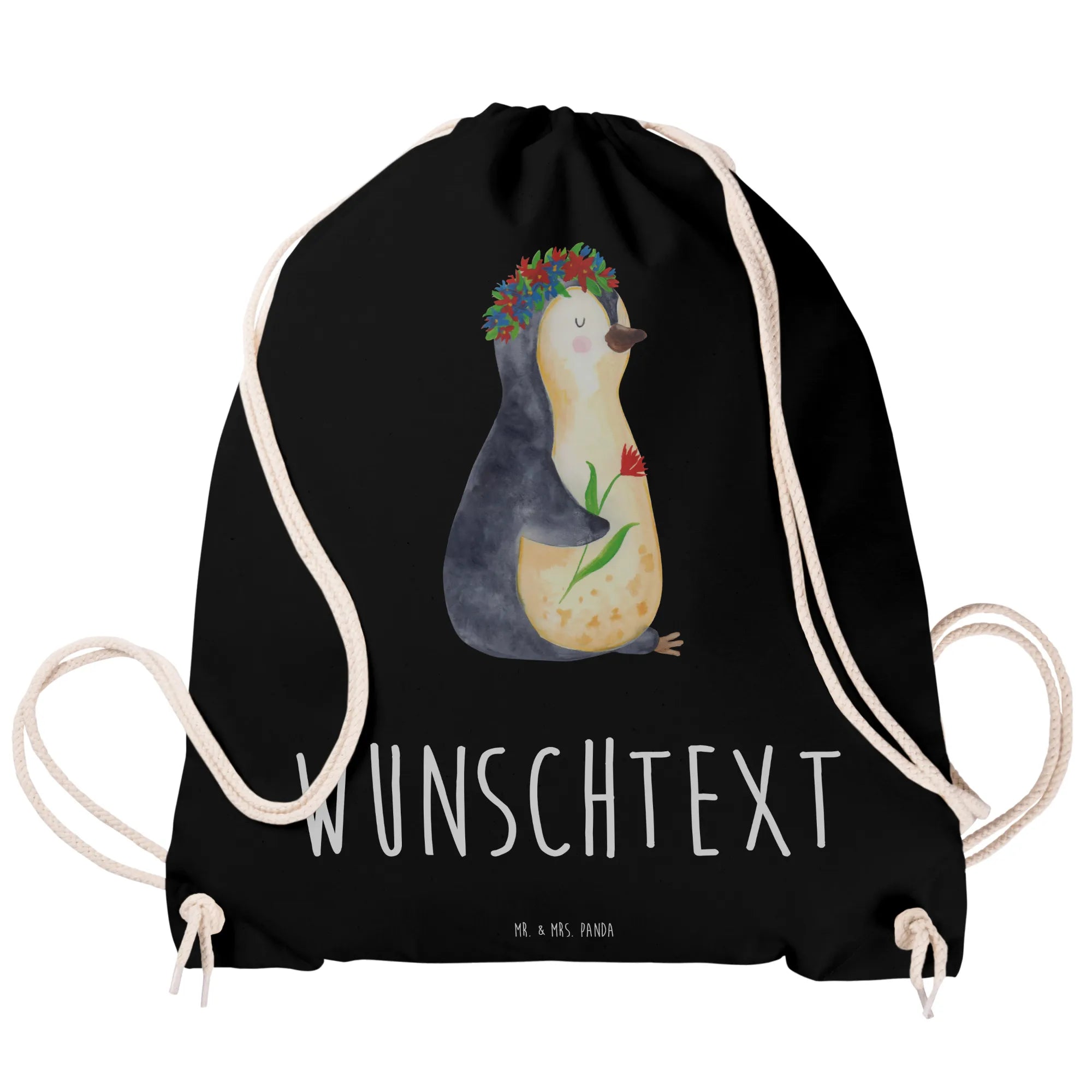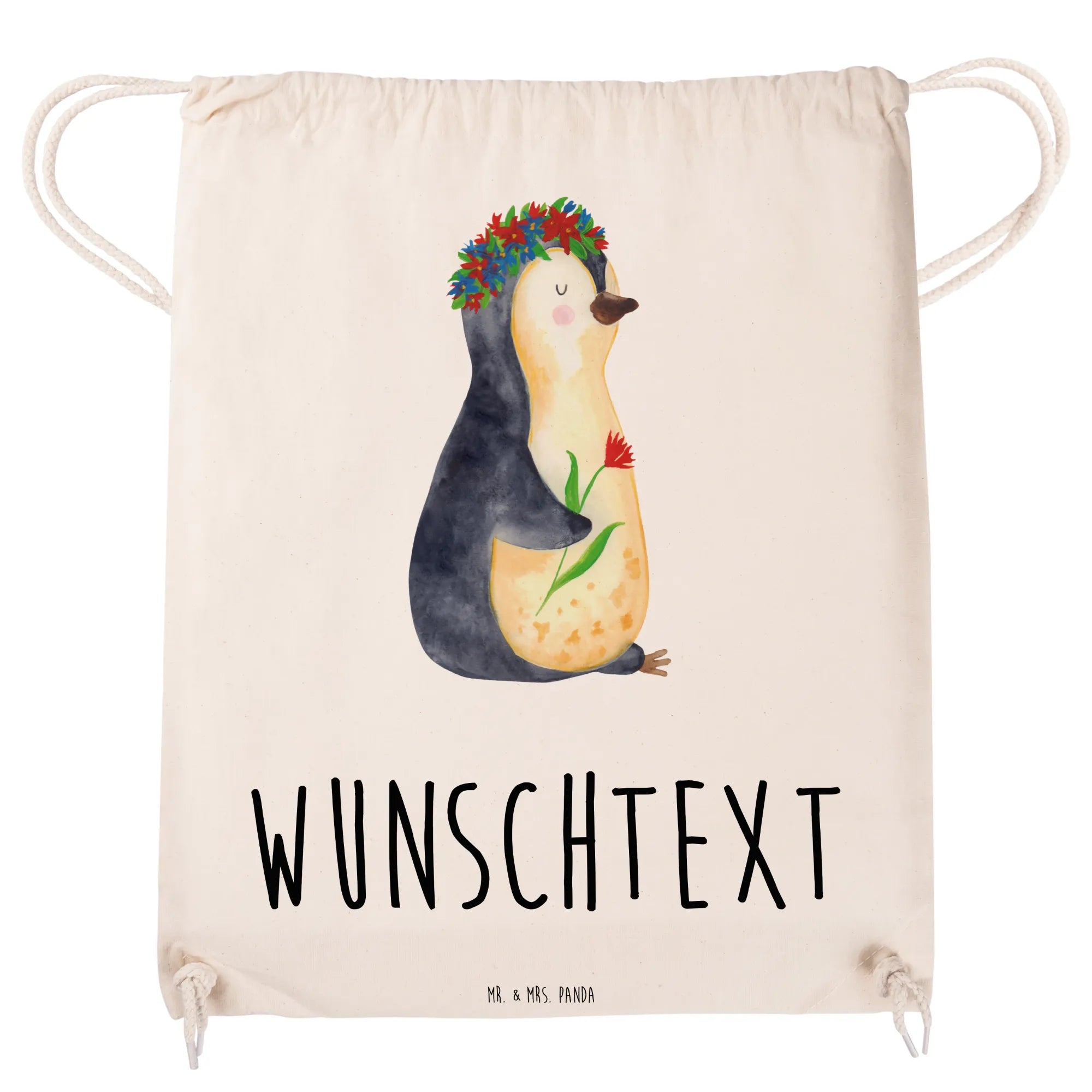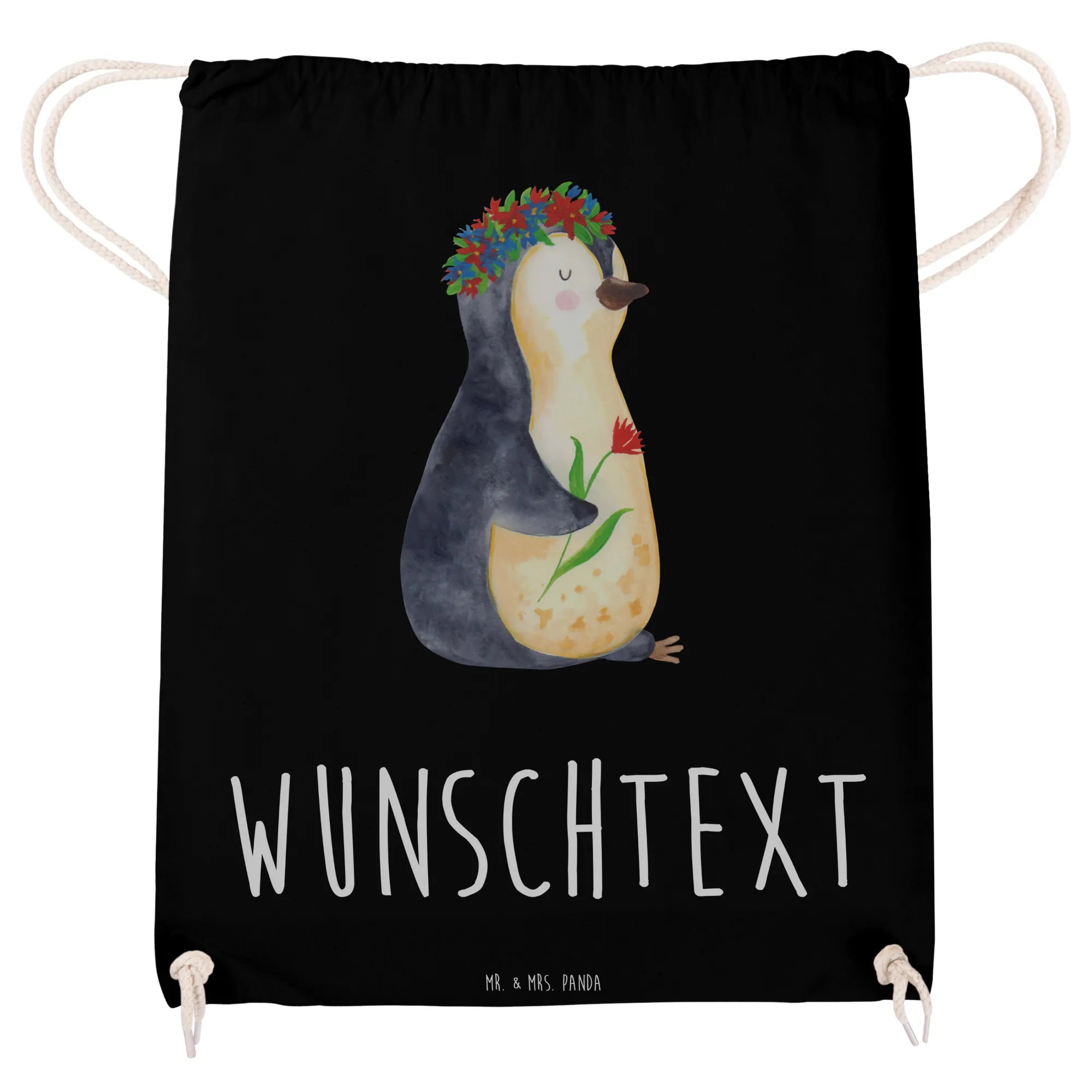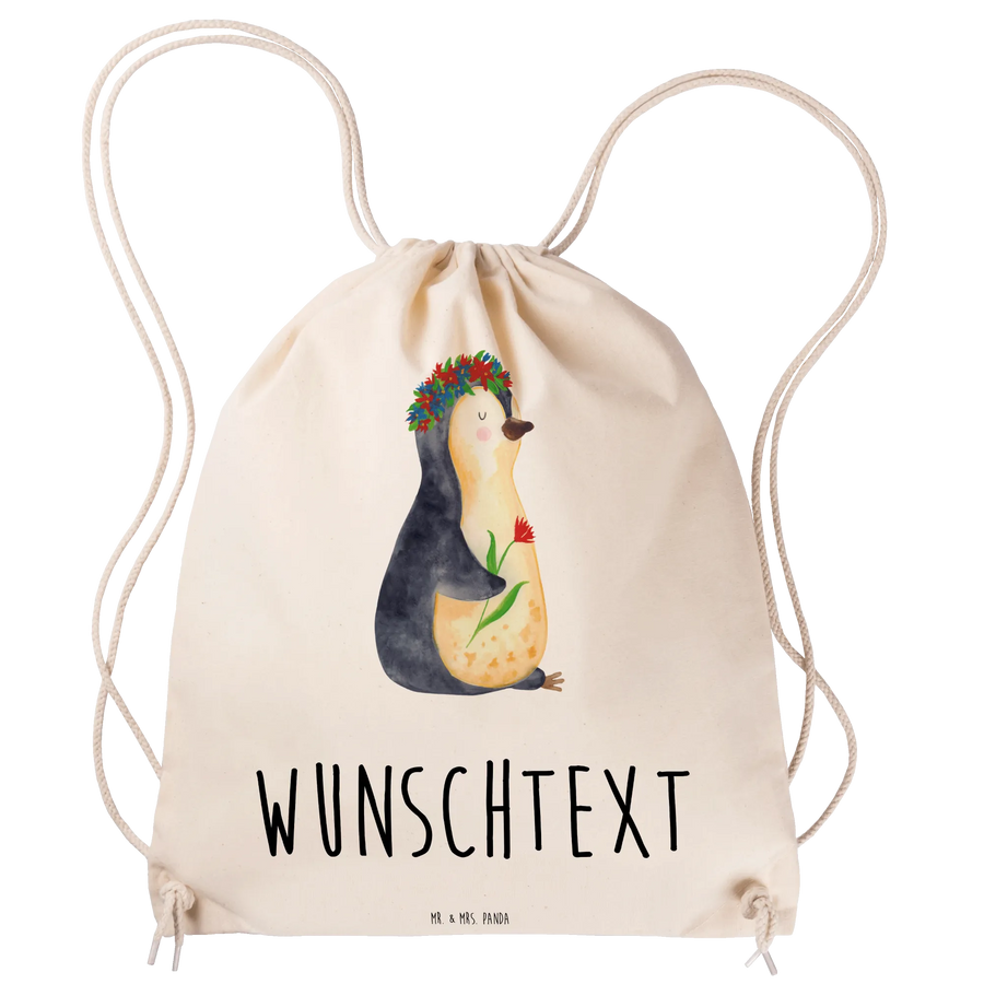 Der personalisierte Sportbeutel mit dem süßen Pinguin Blumenkranz Motiv von Mr. & Mrs. Panda ist mehr als nur eine Tasche. Er ist ein treuer Begleiter für Kinder und Erwachsene! Mit einem liebevollen Design, das einen charmanten Pinguin zeigt, der mit einem Blumenkranz geschmückt ist, bringt dieser Sportbeutel Freude und Farbe in den Alltag.
