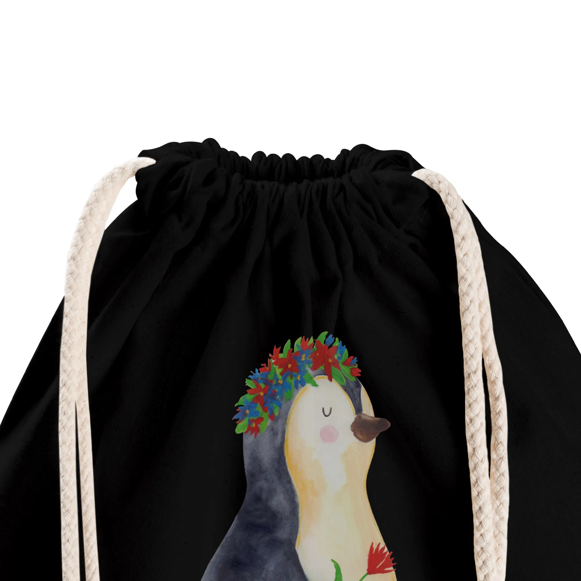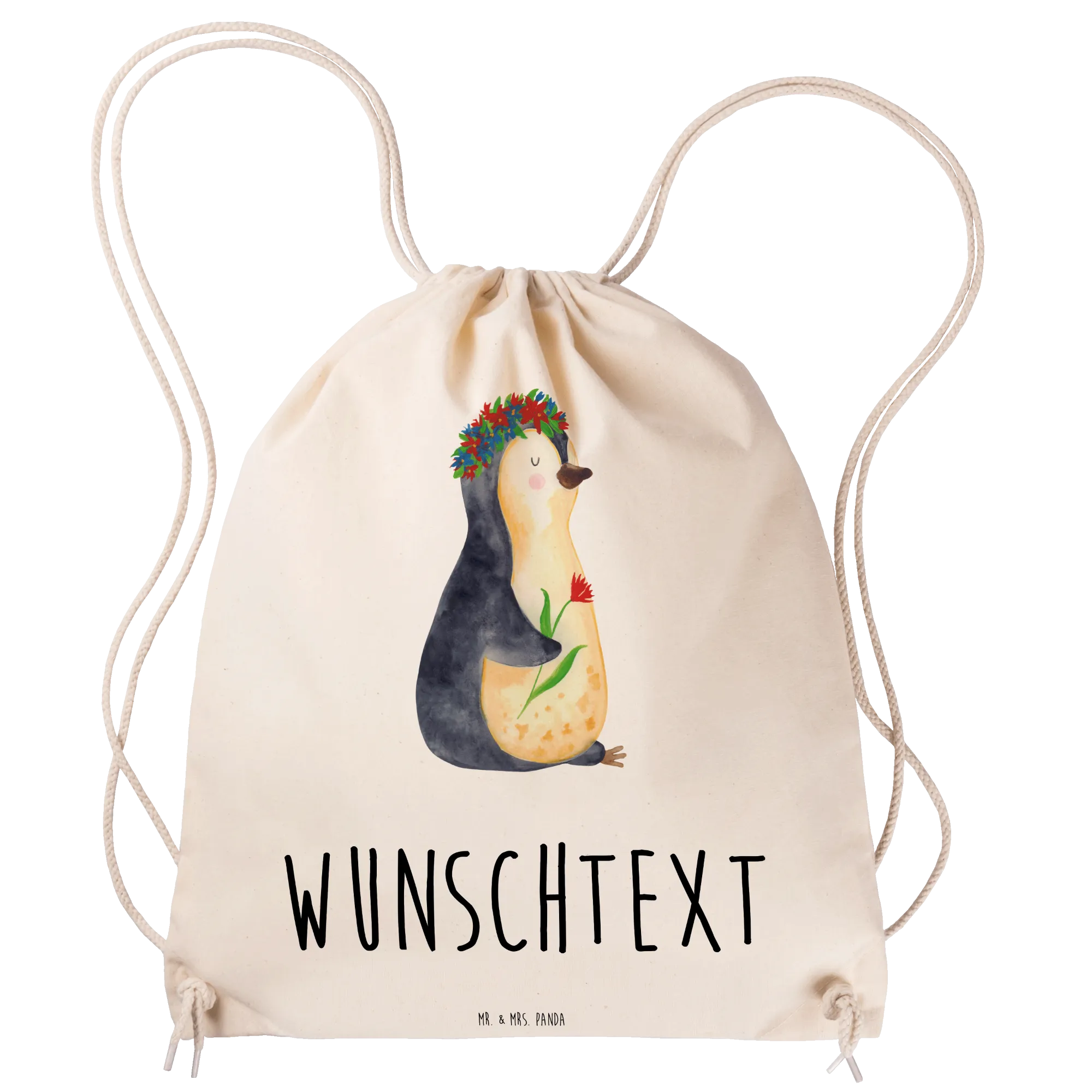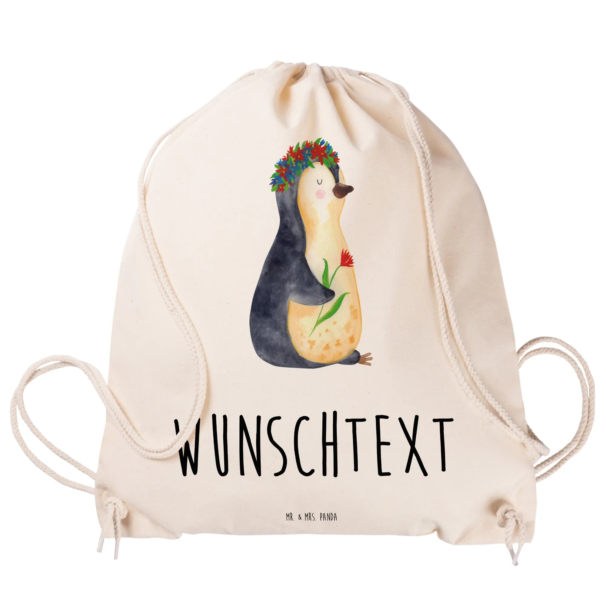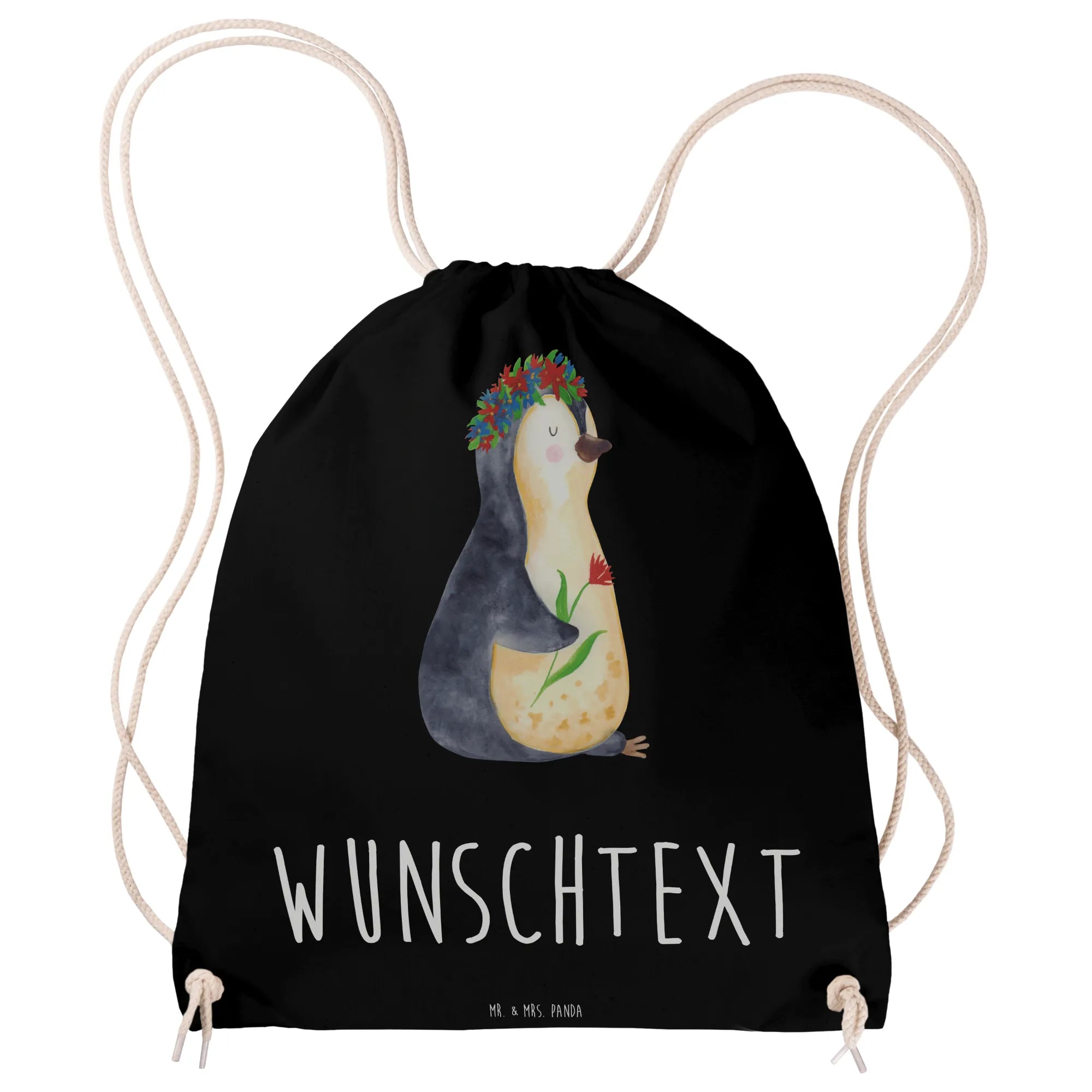 Der personalisierte Sportbeutel mit dem süßen Pinguin Blumenkranz Motiv von Mr. & Mrs. Panda ist mehr als nur eine Tasche. Er ist ein treuer Begleiter für Kinder und Erwachsene! Mit einem liebevollen Design, das einen charmanten Pinguin zeigt, der mit einem Blumenkranz geschmückt ist, bringt dieser Sportbeutel Freude und Farbe in den Alltag.
