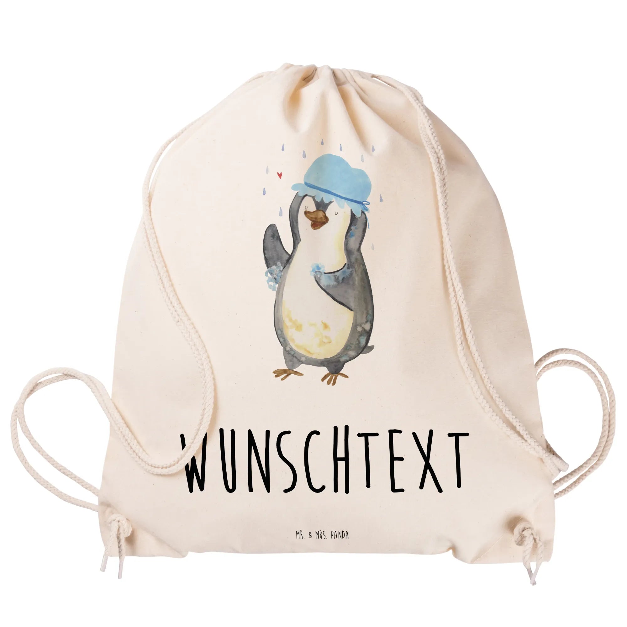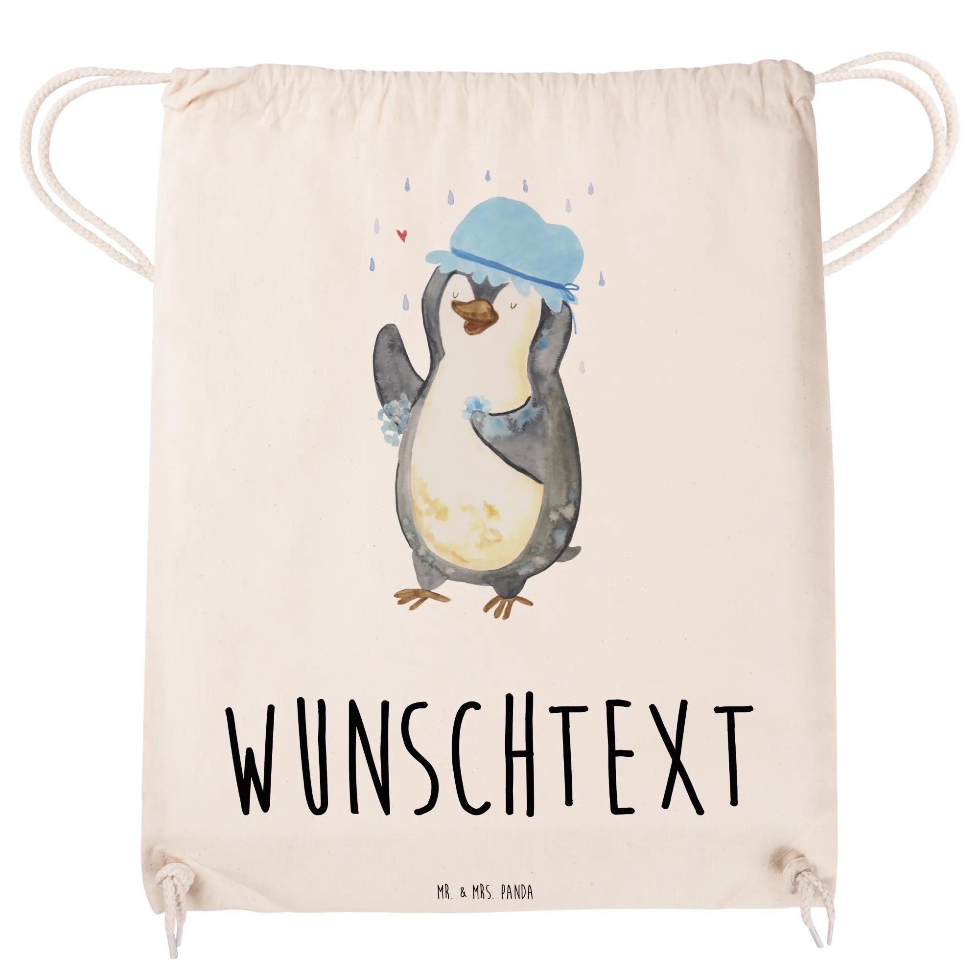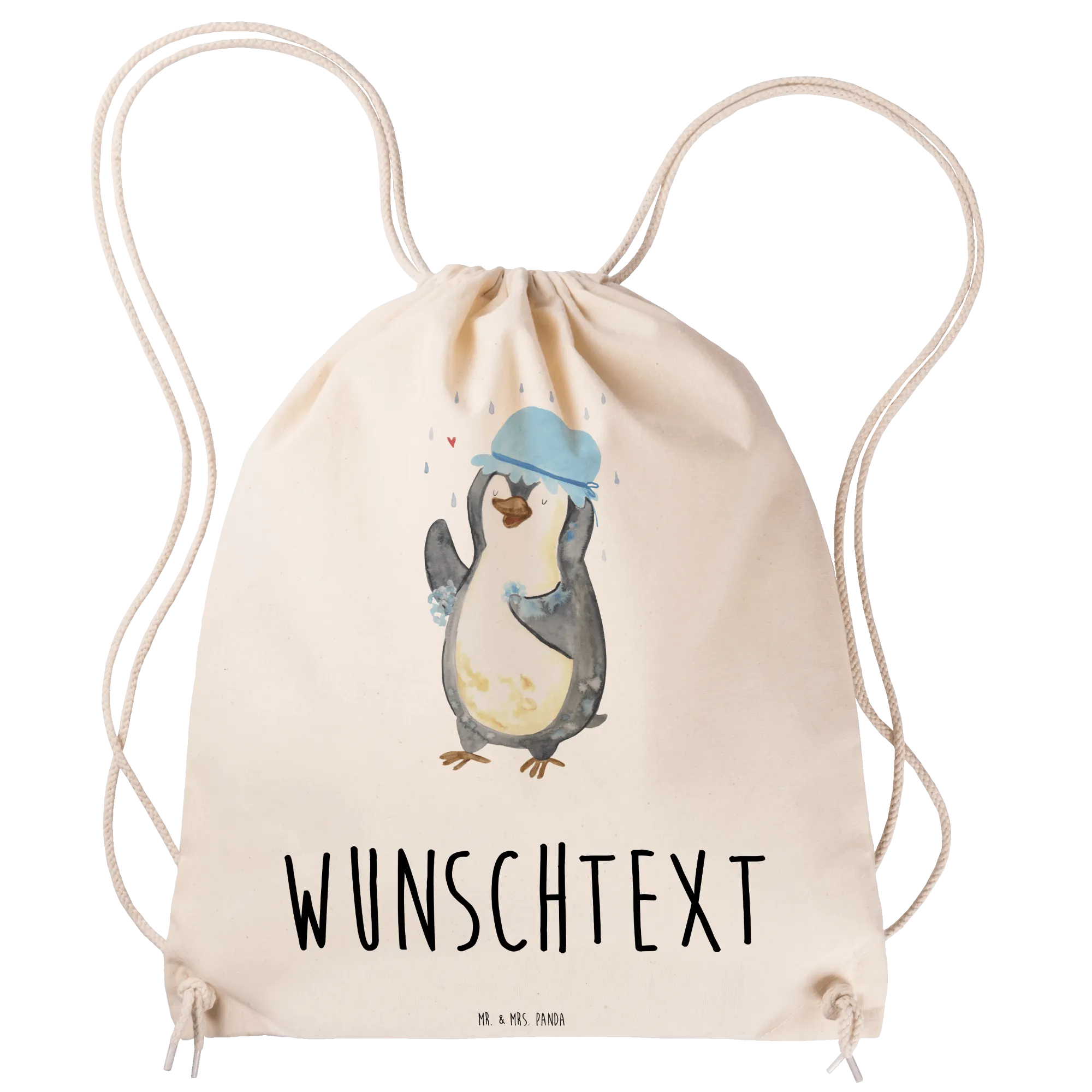 Der personalisierte Sportbeutel mit dem bezaubernden Pinguin-Motiv "Pinguin duscht" von Mr. & Mrs. Panda ist der ideale Begleiter für jeden, der seinen Alltag mit einem Hauch von Freude und Kreativität bereichern möchte. Egal, ob für die Schule, das Fitnessstudio oder ein Wochenende im Freien – dieser Sportbeutel bringt nicht nur dein persönliches Flair zum Ausdruck, sondern sorgt auch dafür, dass du immer genug Platz für all deine Sachen hast.