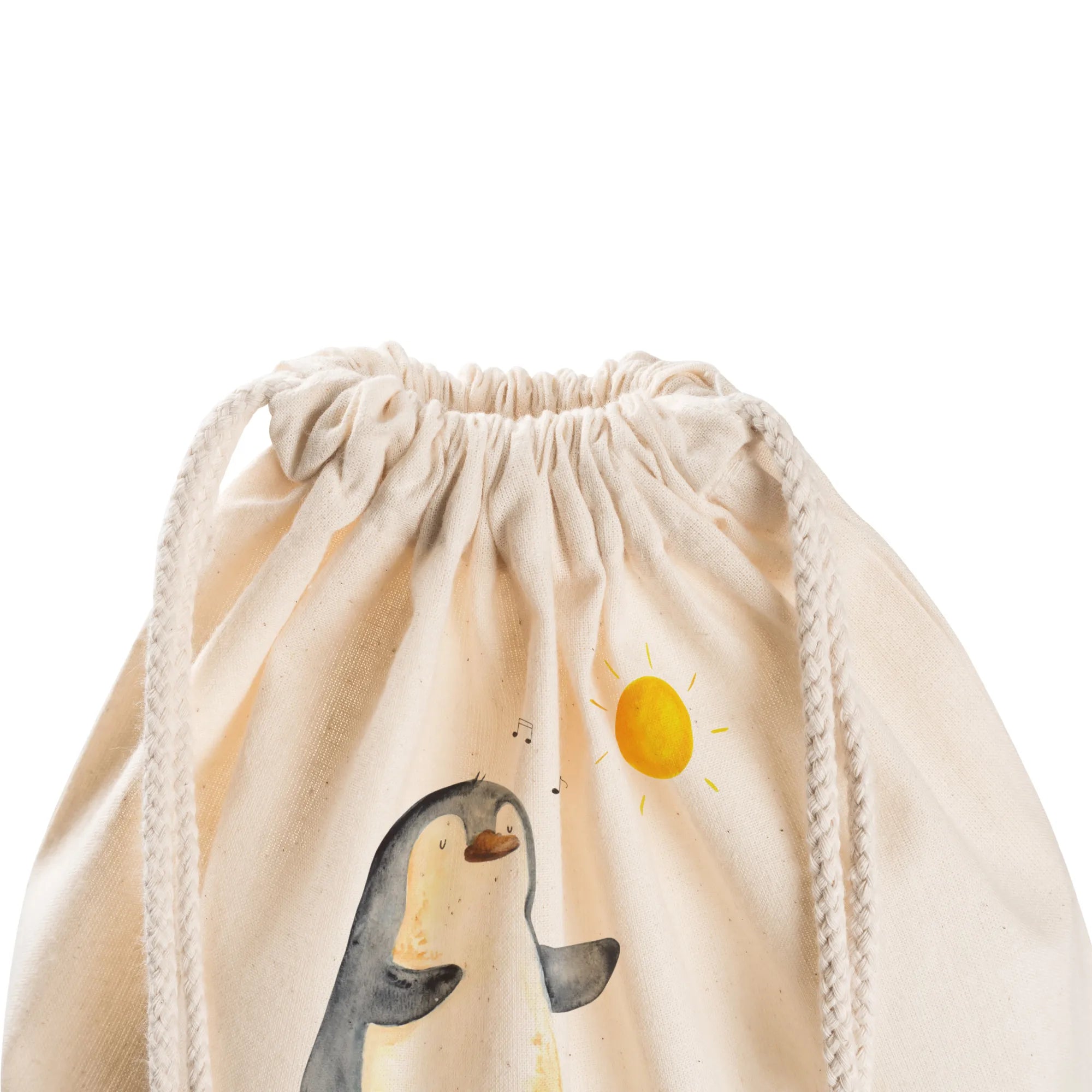 Der Sportbeutel bietet nicht nur ausreichend Platz für Deine Sportkleidung oder Deine Lieblingsspielzeuge, sondern bringt auch eine Portion Freude in Deinen Alltag. Das zarte Design unseres Pinguin Surfer mit dem Spruch "Du kannst das stürmische Leben nicht stoppen, aber du kannst lernen, wie man surft." inspiriert Dich, Herausforderungen mit einem Lächeln zu begegnen.