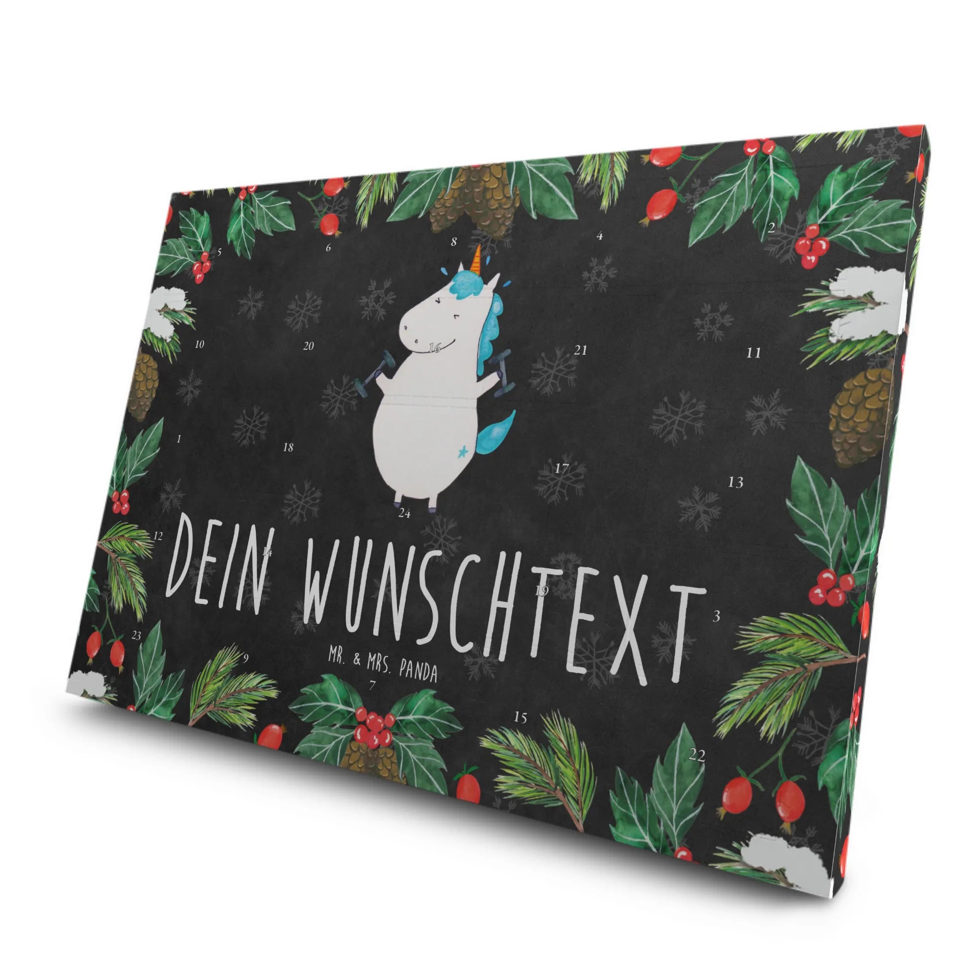 Entdecke den perfekten Begleiter für die kalte Jahreszeit mit unserem personalisierten Tee Adventskalender im zauberhaften Einhorn Fitness Design von Mr. & Mrs. Panda!