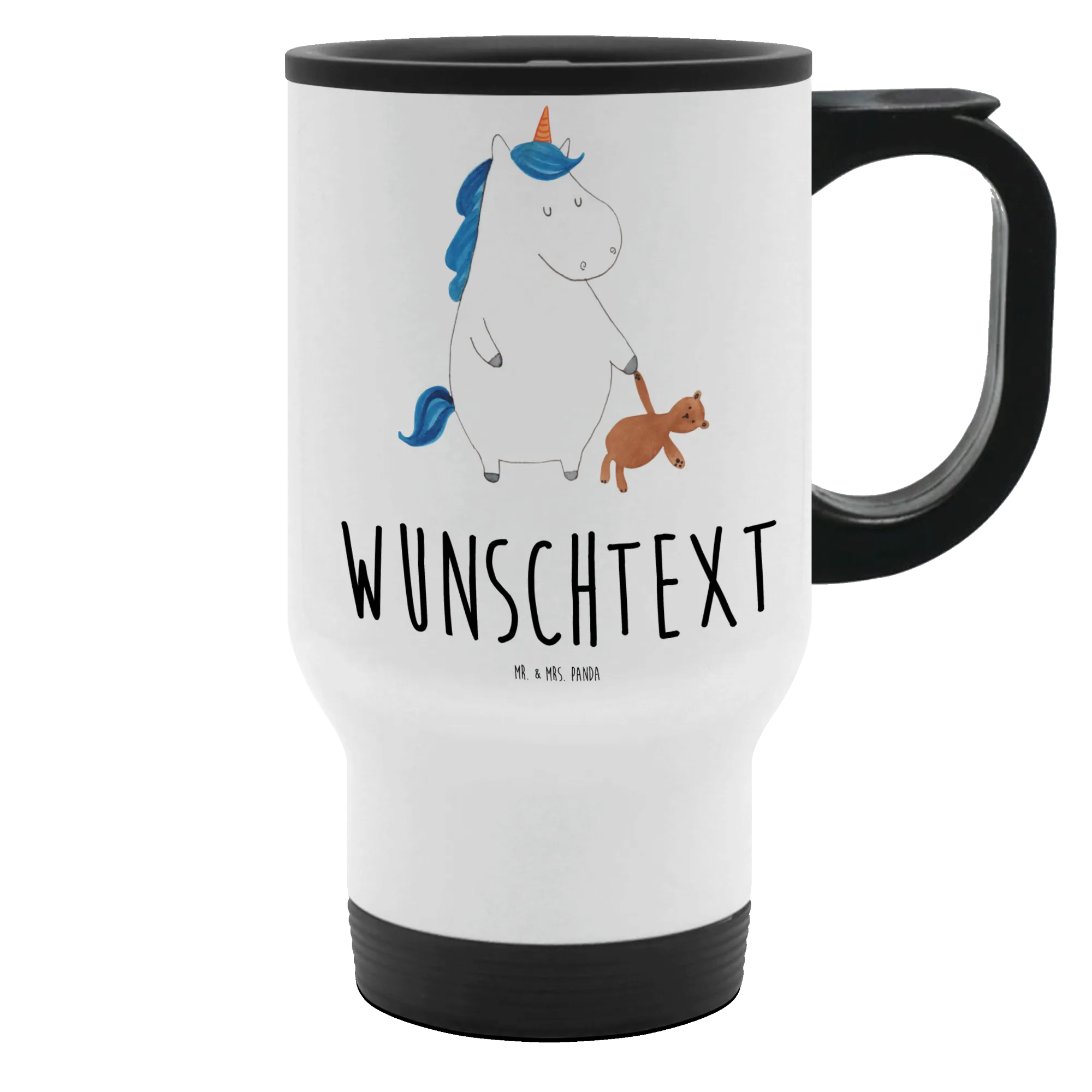 Entdecke den zauberhaften und praktischen personalisierten Thermobecher mit dem süßen Einhorn Teddy Design aus der Einhorn-Kollektion von Mr. & Mrs. Panda!