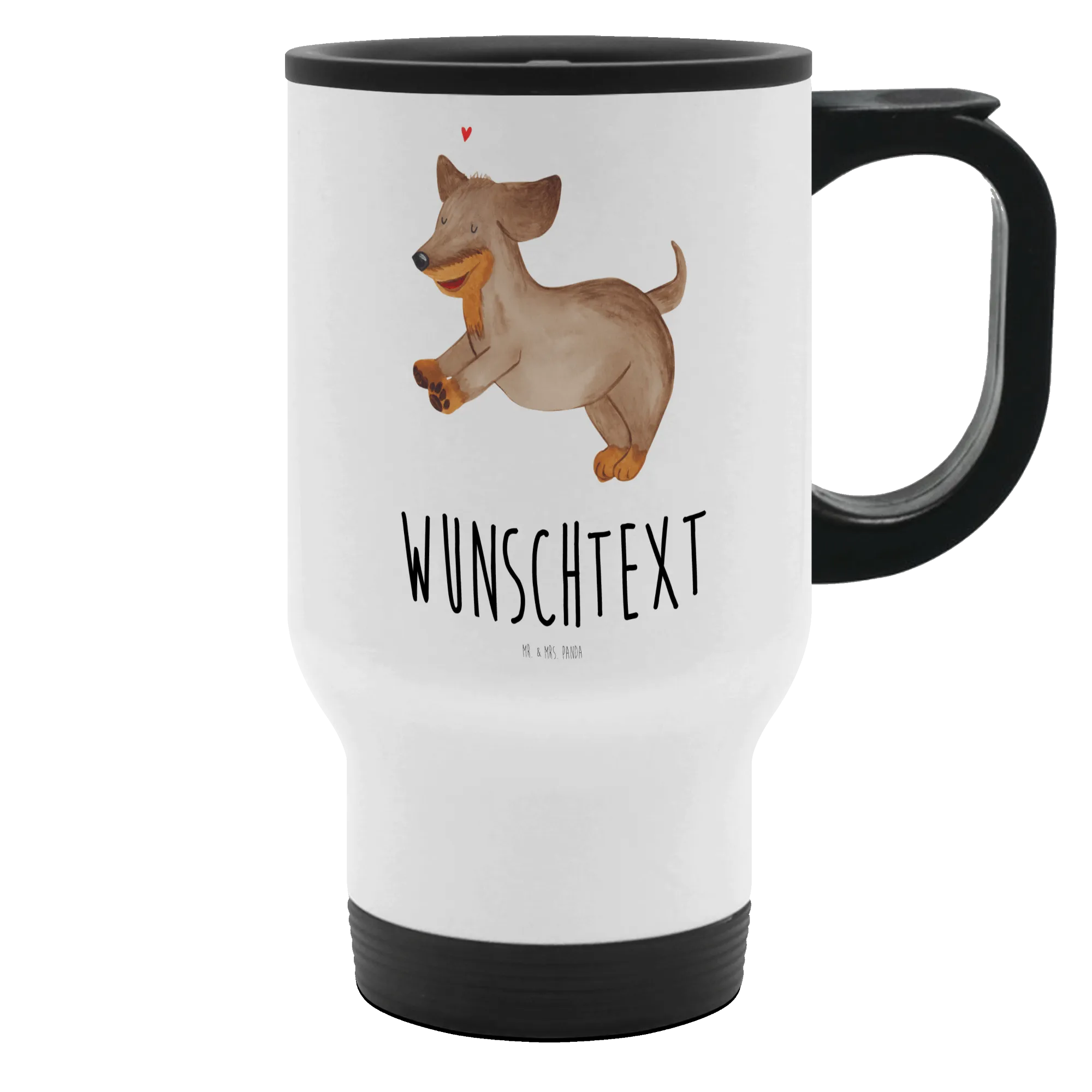 Entdecke unseren personalisierten Thermobecher mit dem fröhlichen Dackel-Motiv von Mr. & Mrs. Panda! Dieser einzigartige To-Go Becher ist nicht nur praktisch, sondern auch eine liebevolle Hommage an deinen vierbeinigen Freund. Mit einem Wunschnamen personalisiert, wird dieser Isolierbecher zum perfekten Geschenk für jeden Hundeliebhaber.
