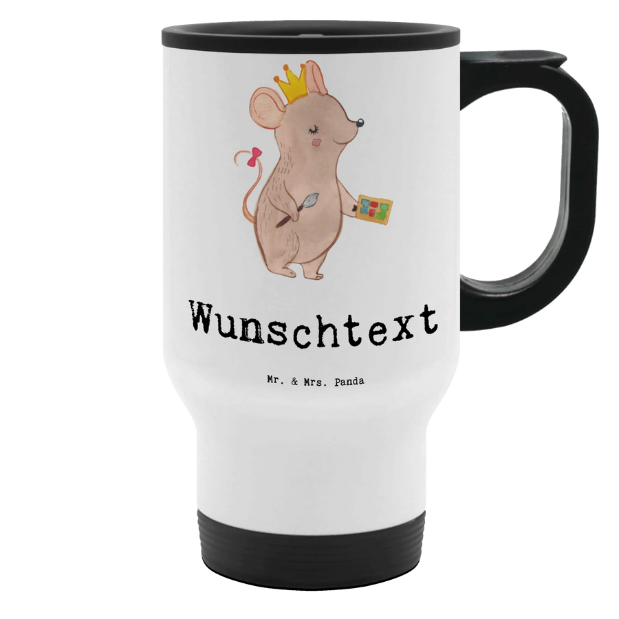 Die süße Maus mit der Krone und einem Schminkpinsel in der Hand bringt das nötige Lächeln in den Arbeitsalltag einer Maskenbildnerin. Durch den liebevollen Spruch "Du bist nur ein halber Mensch, wenn du keine Maskenbildnerin bist", wird jede Kaffeepause zu einem besonderen Moment.