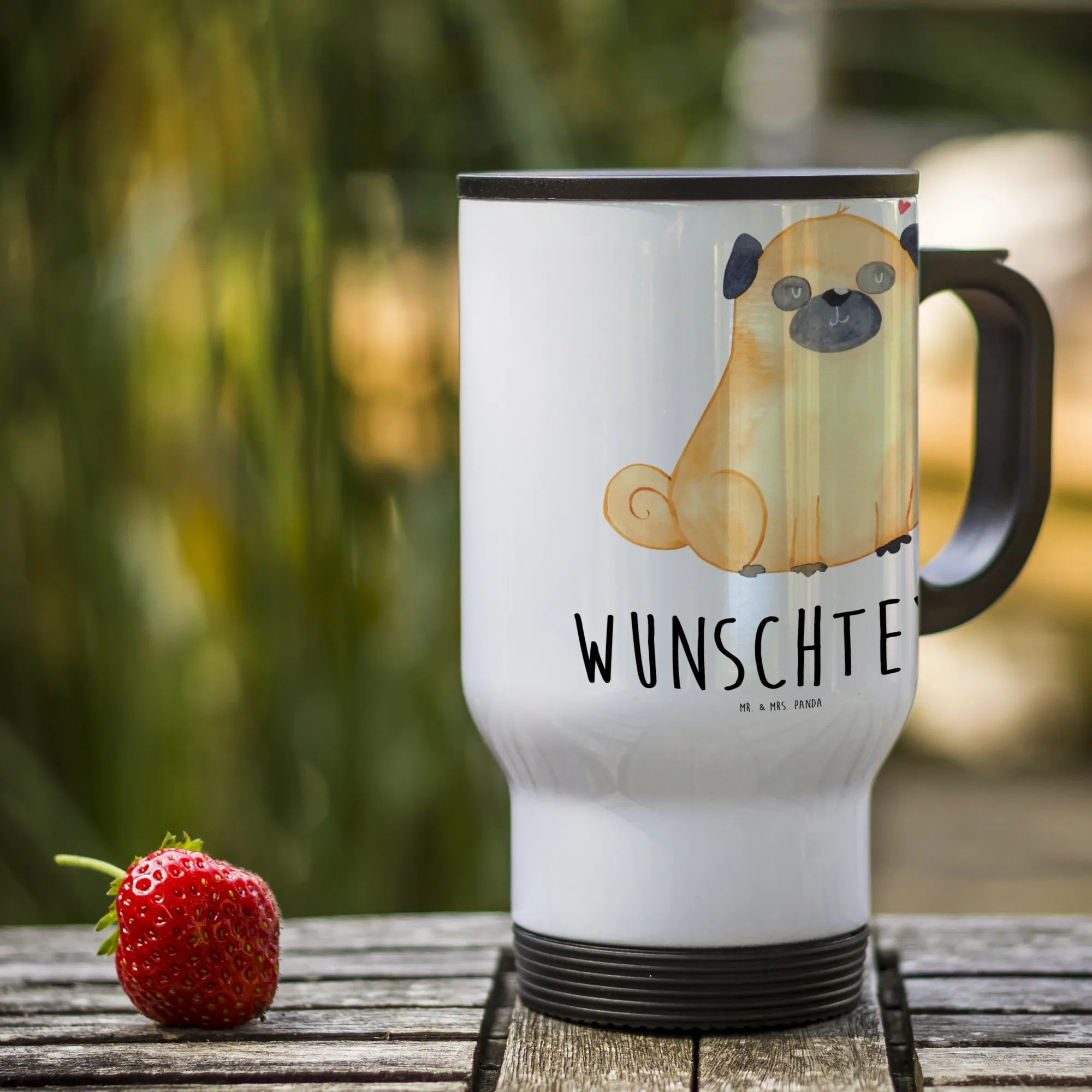 Du suchst nach dem perfekten Geschenk für einen Tierliebhaber? Dann ist der personalisierte Thermobecher mit dem niedlichen Mops-Motiv aus unserer Hunde Kollektion genau das richtige! Stell dir vor, wie der Beschenkte bei jedem Schluck aus diesem einzigartigen Kaffeebecher an seine geliebte Fellnase denken wird.