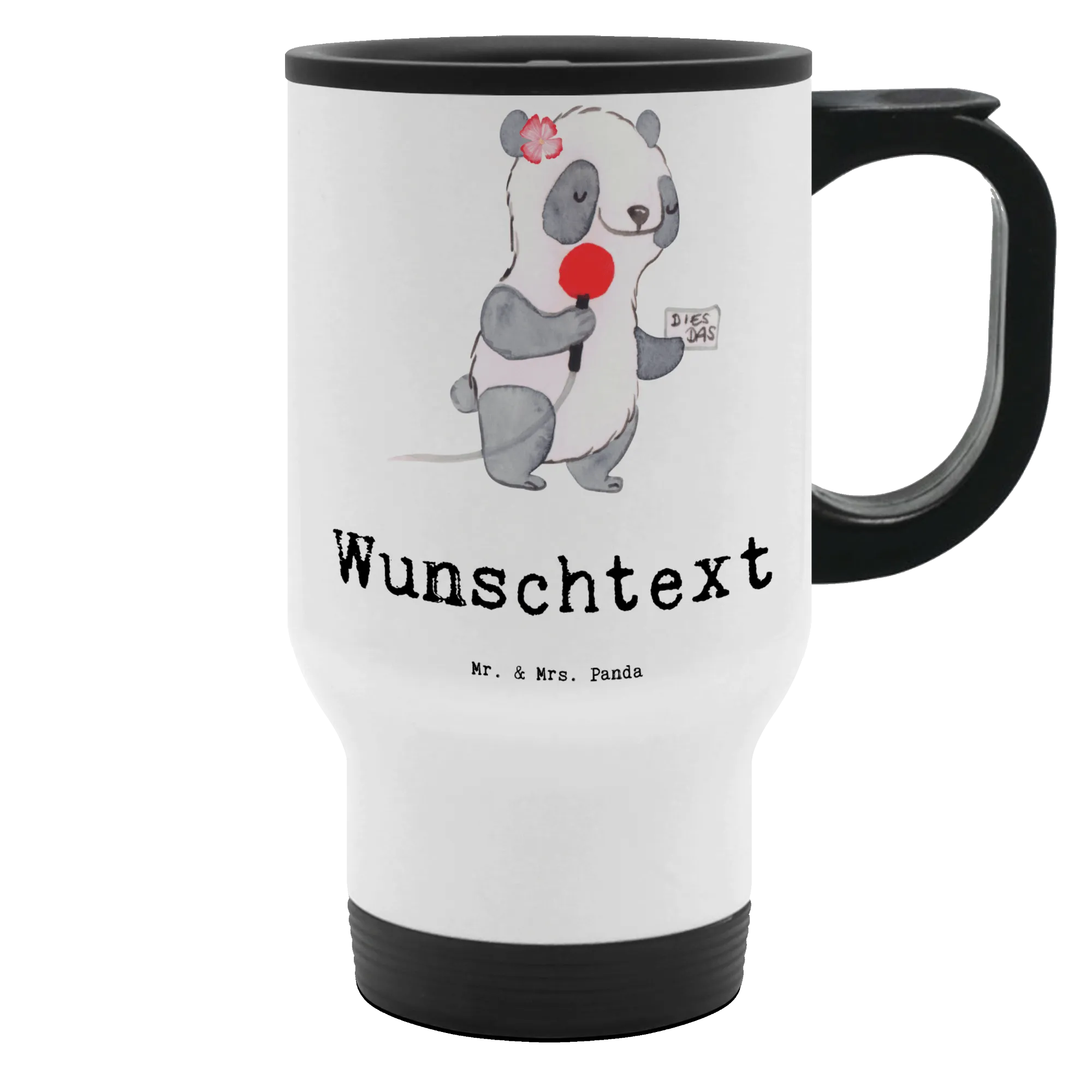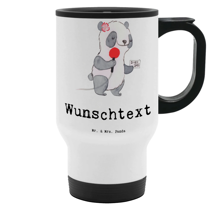 Mit einer liebevollen Aquarellzeichnung eines süßen Pandas, der mit einem Mikrofon in der Hand bereit ist, spannende Interviews zu führen, wird dieser Thermobecher zu einem unverzichtbaren Begleiter bei jedem Bürojob. Egal ob für den ersten Arbeitstag, zur Beförderung, zum Jubiläum oder als Abschiedsgeschenk - dieser Becher zaubert jedem ein Lächeln ins Gesicht.