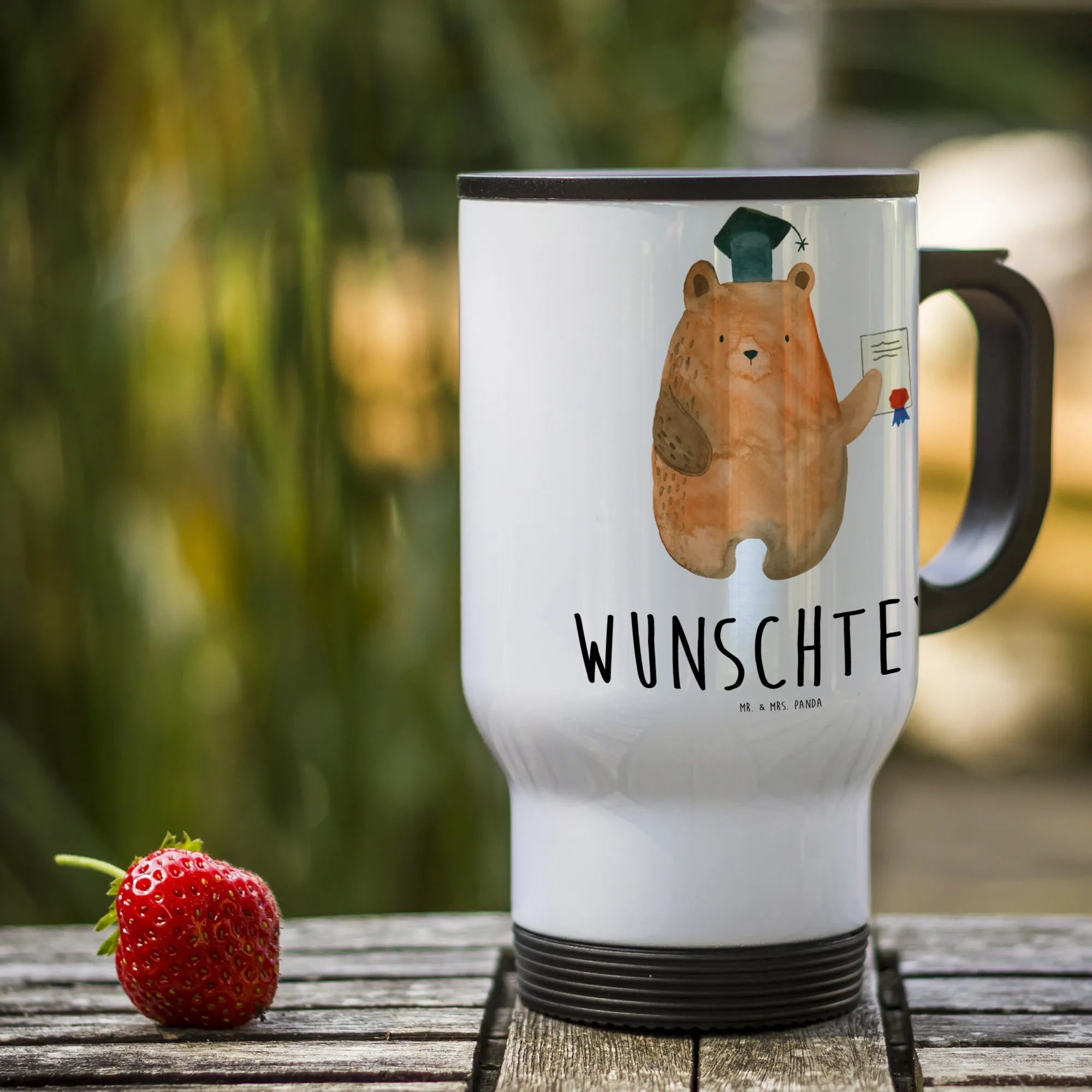 Hol dir diesen einzigartigen Thermobecher Prüfungsbär von Mr. & Mrs. Panda und sorge für glänzende Augen und gute Laune! Er ist das ideale Geschenk für Schulkameraden, Geschwister oder Freunde. Mache jetzt das Beste aus deinem Erfolg und lass dich von diesem süßen Bärchen begleiten, während du deinen nächsten Lebensweg beschreitest. Dieser personalisierte Kaffeebecher ist nicht nur ein tolles Geschenk, sondern auch ein super Begleiter in der neuen Lebensphase nach der Schule.