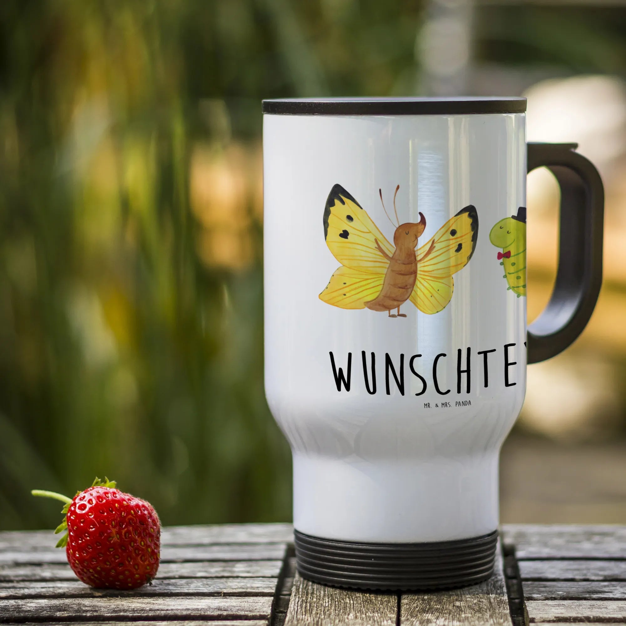 Stell dir vor, jeden Morgen deinen Kaffee oder Tee aus einem personalisierten Thermobecher zu genießen, der ganz auf dich abgestimmt ist. Unser Thermobecher mit dem bezaubernden Motiv der Raupe und des Schmetterlings ist nicht nur ein praktischer Begleiter, sondern auch eine wundervolle Inspiration. Die süße kleine Raupe, die sich in einen prachtvollen Schmetterling verwandelt, symbolisiert das Wachstum und die Veränderung, die in jedem von uns steckt.