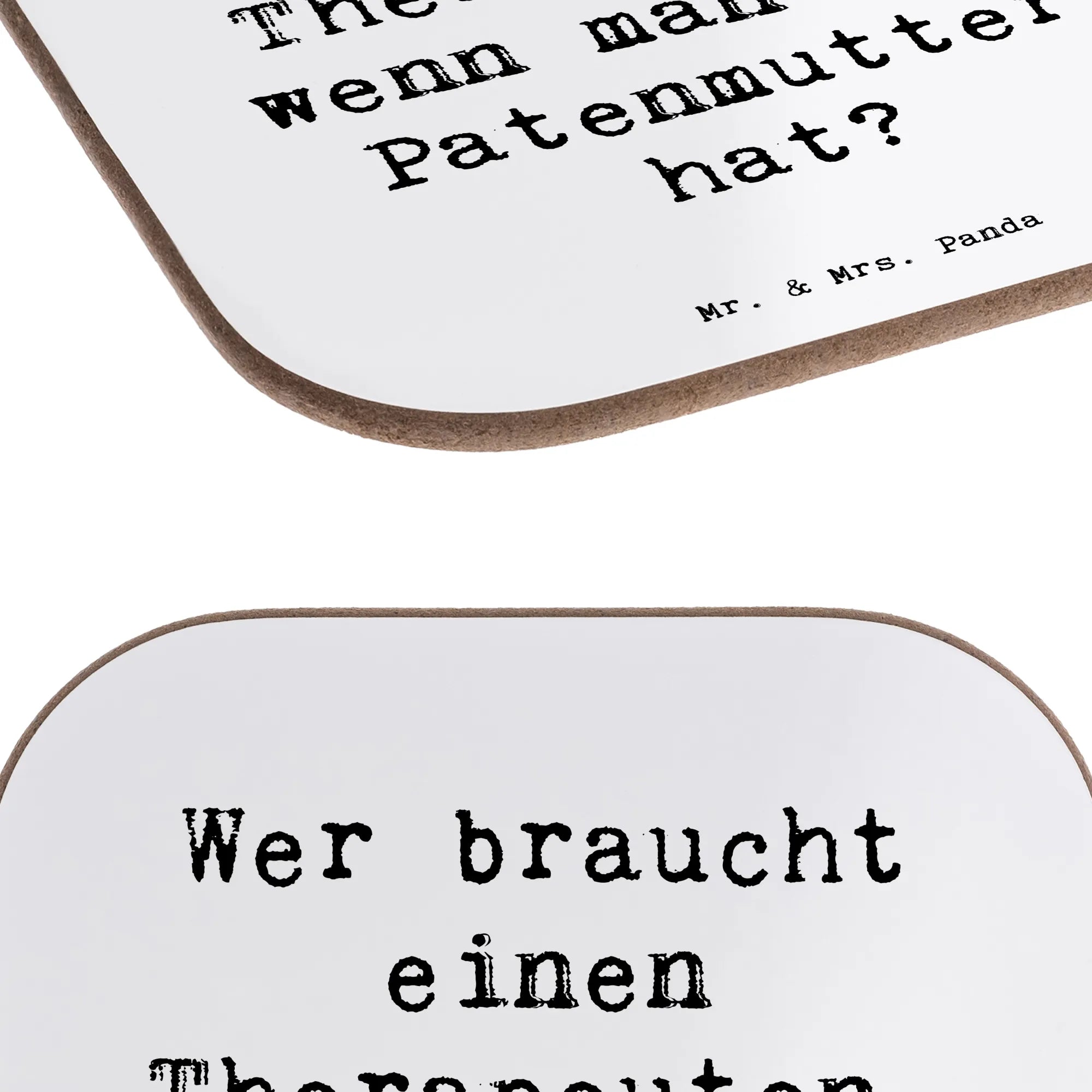 Mit einem Maß von 100 mm x 100 mm und einer Dicke von 5 mm passt er perfekt in jedes Zuhause und schützt deinen Tisch vor Abdrücken, Kratzern und extremen Temperaturen. Der Untersetzer wird individuell bedruckt mit dem liebevollen Motiv 'Wer braucht einen Therapeuten, wenn man eine Patenmutter hat?'. Das macht ihn zum idealen Geschenk für alle Anlässe, sei es zur Taufe, zur Familienfeier oder einfach so, um Danke zu sagen.