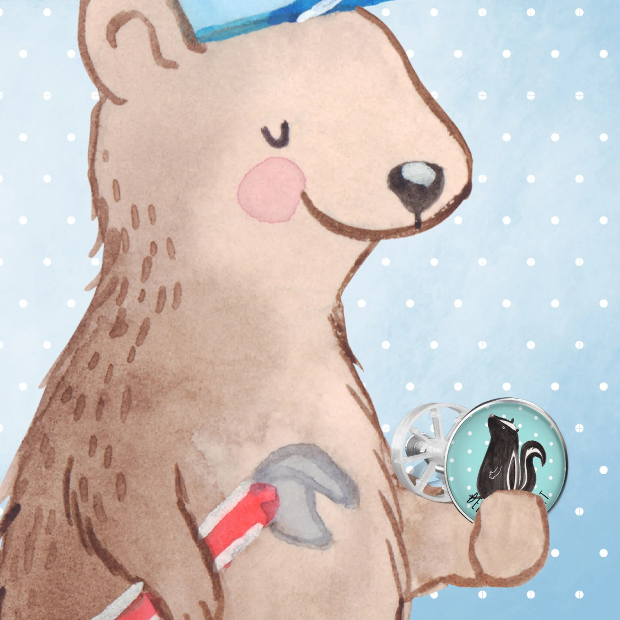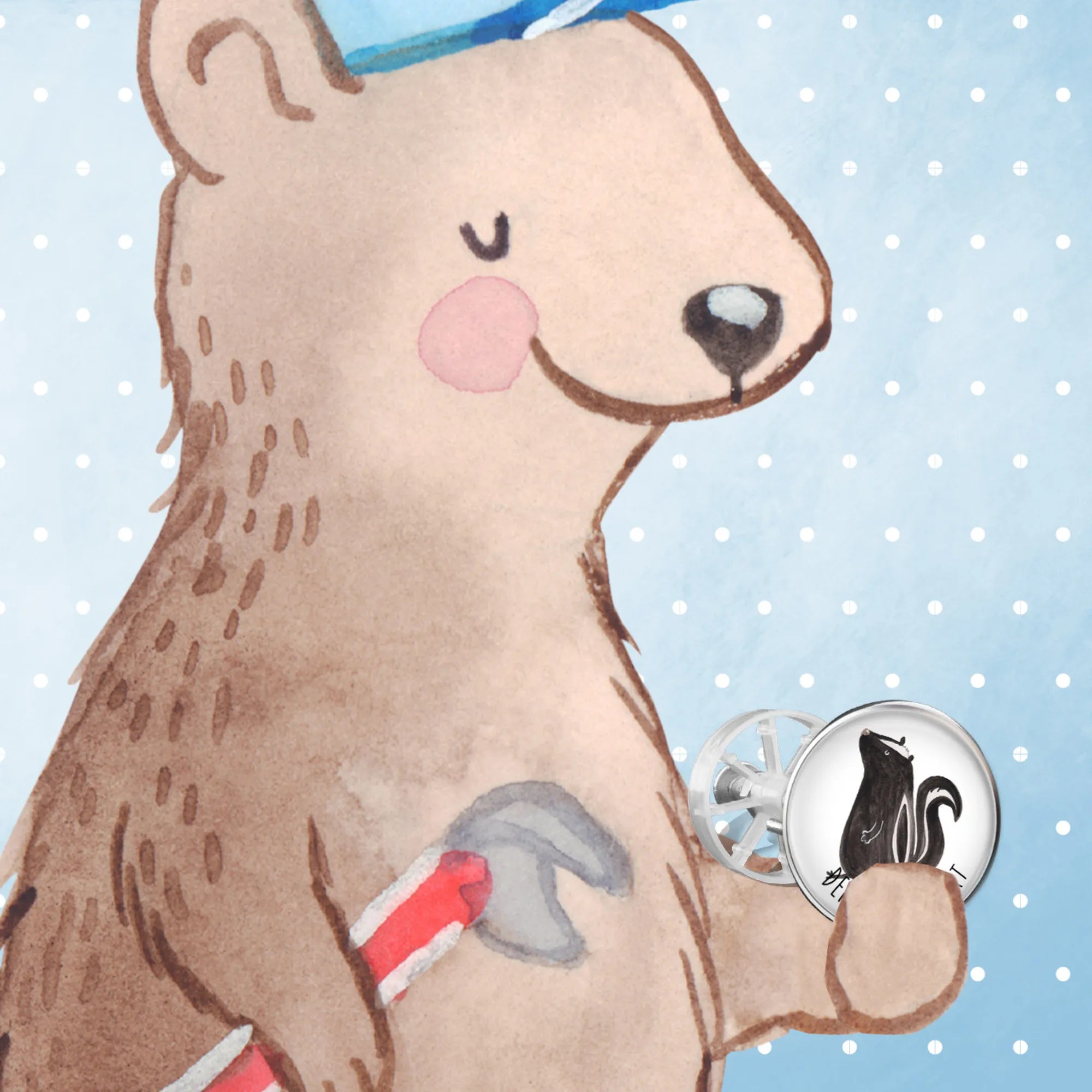 Jedes Motiv ist von Mrs. Panda liebevoll in Aquarell-Design gestaltet und zeigt ein niedliches sitzendes Stinktier, das Ruhe und Freude ausstrahlt. Die Stinktier-Kollektion von Mr. & Mrs. Panda ist nicht nur dekorativ, sondern auch funktional. Der Waschbeckenstöpsel hat einen stabilen Oberflächenschutz und passt in jedes handelsübliche Waschbecken, dabei sorgt er mit einem integrierten Haarfangsieb dafür, dass der Abfluss immer frei bleibt.
